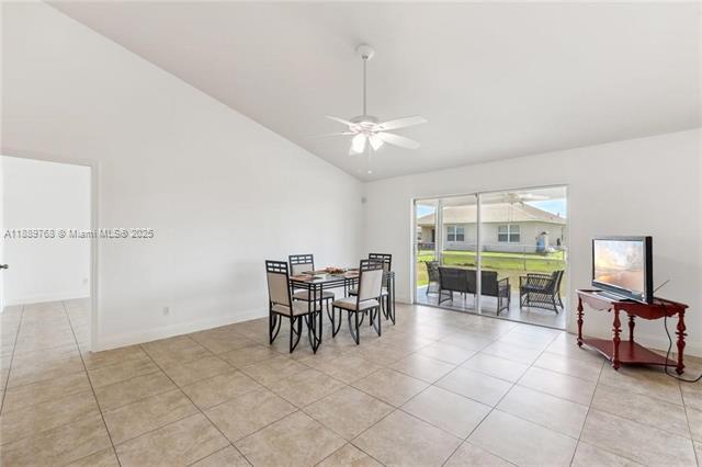 Welcome to this beautifully maintained home in the growing NW Cape Coral area! This spacious residence offers 1783 to 2410 total sg ft, 3 bedrooms, 2 bathrooms, and a well-thought-out layout featuring both a formal dining and formal living room can be converted to office/bedroom. The large kitchen includes a walk-in pantry and opens up to a cozy family room, creating a warm and inviting atmosphere. Enjoy indoor-outdoor living with a screened lanai, perfect for enjoying the Florida lifestyle. The master suite boasts a soaking tub and separate shower for your comfort. Freshly painted inside and out. The entire home is tiled throughout for easy maintenance and a clean, modern look. Located in a quiet neighborhood with no water assessments. Don’t miss out on this fantastic opportunity!