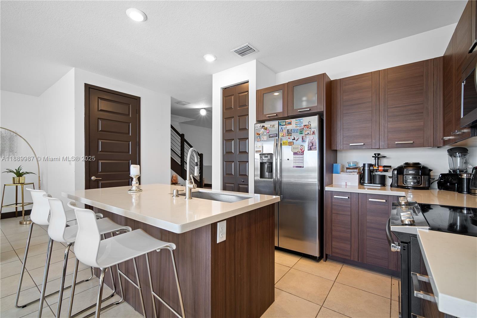 Immaculate 3 bed/3 Full Bathroom Townhouse. This unit is bigger than the standard model. Located in exclusive community of Satori, Miami Lakes. This townhome offers tranquil lake views, porcelain floor throughout the entire ground level & quartz countertops in kitchen. Enjoy beautiful morning views over the lake from your paved patio or right from your kitchen. Full size Washer/Dryer. Community amenities offer a secure community with a Lavish Clubhouse, Modern Gym, Playground, Pool and kids water park. Newer construction will mean peace of mind for the new owners and the amenities offered will provide a safe place near home for family and friends to unwind. A Must See! Near food and shopping outlets.