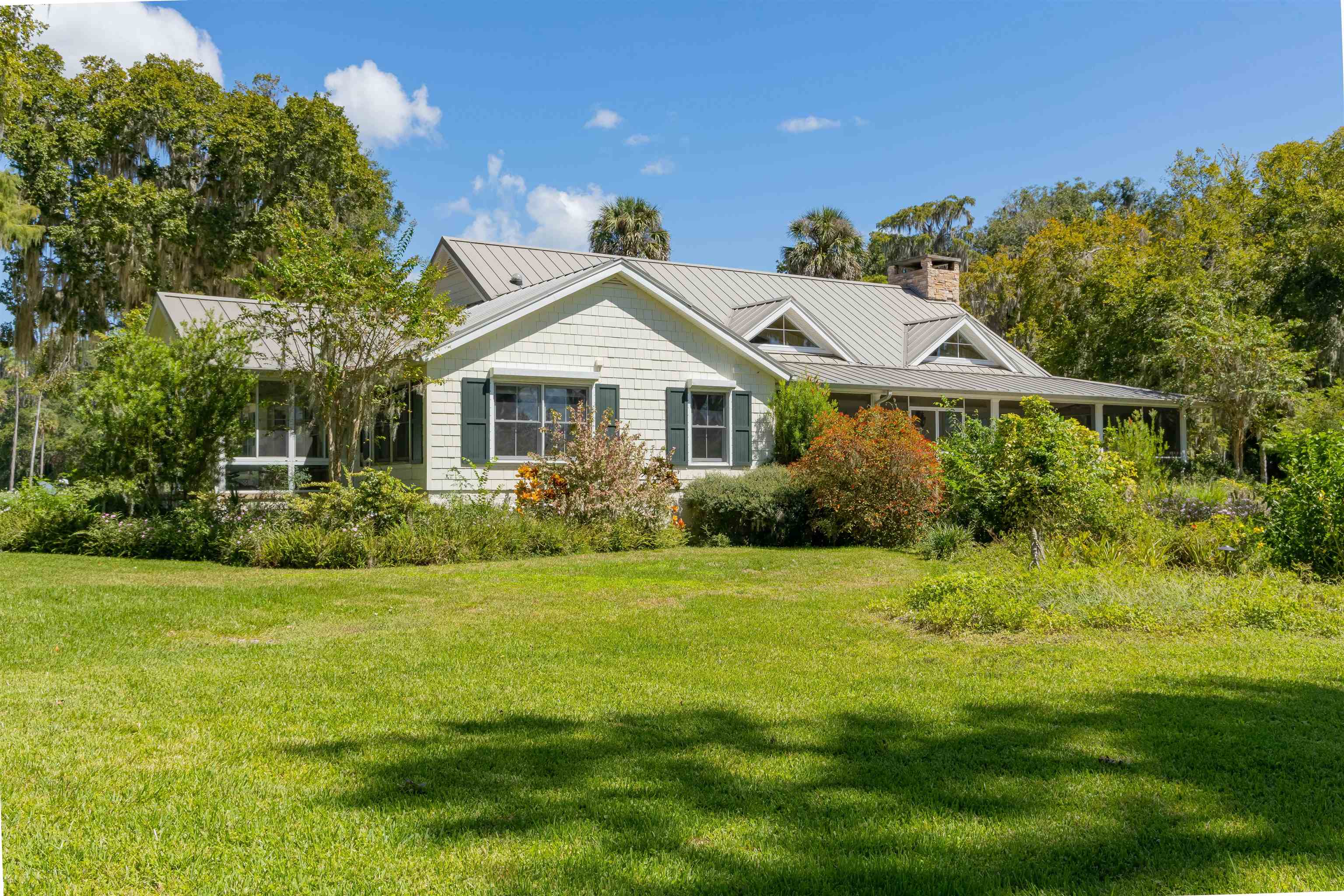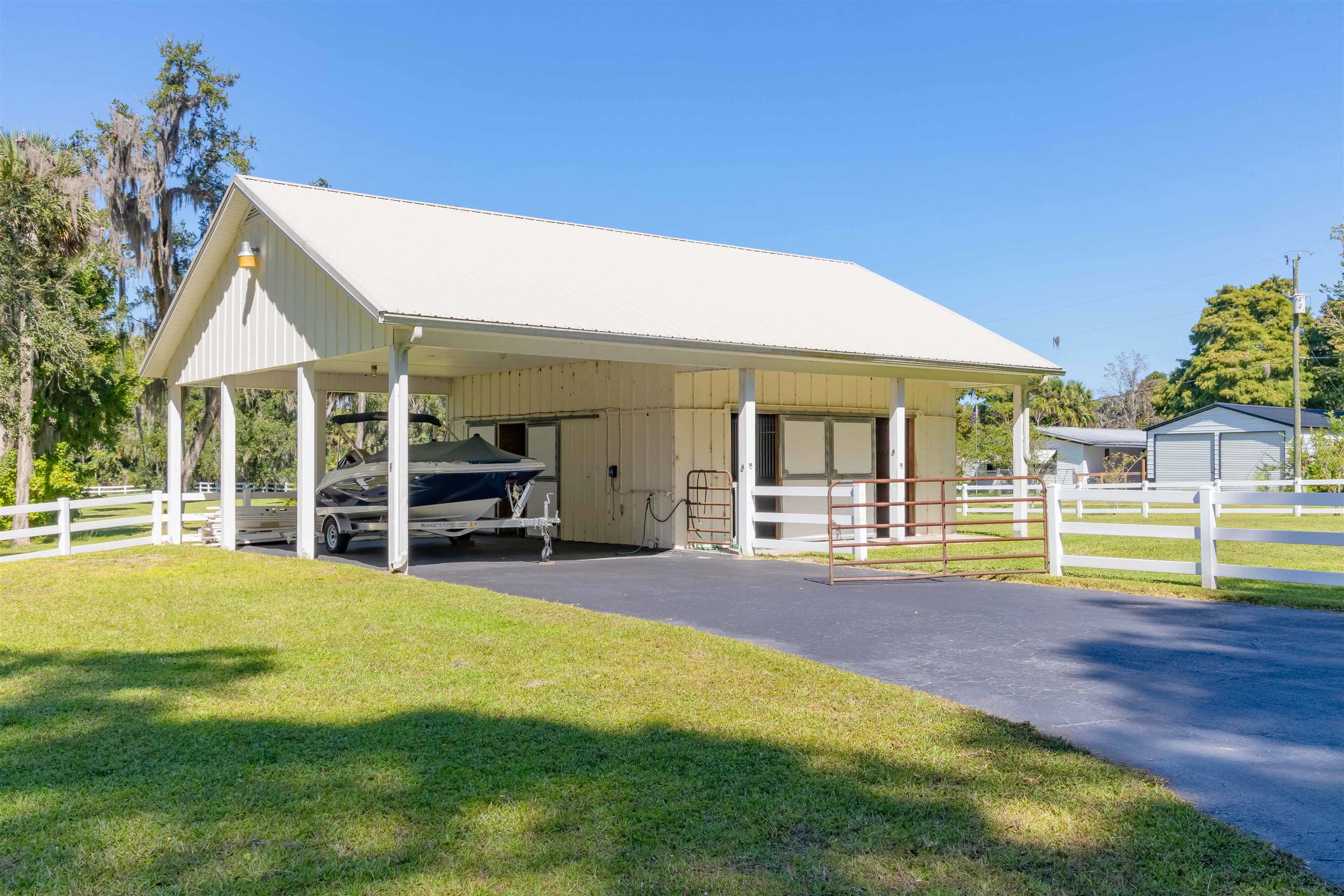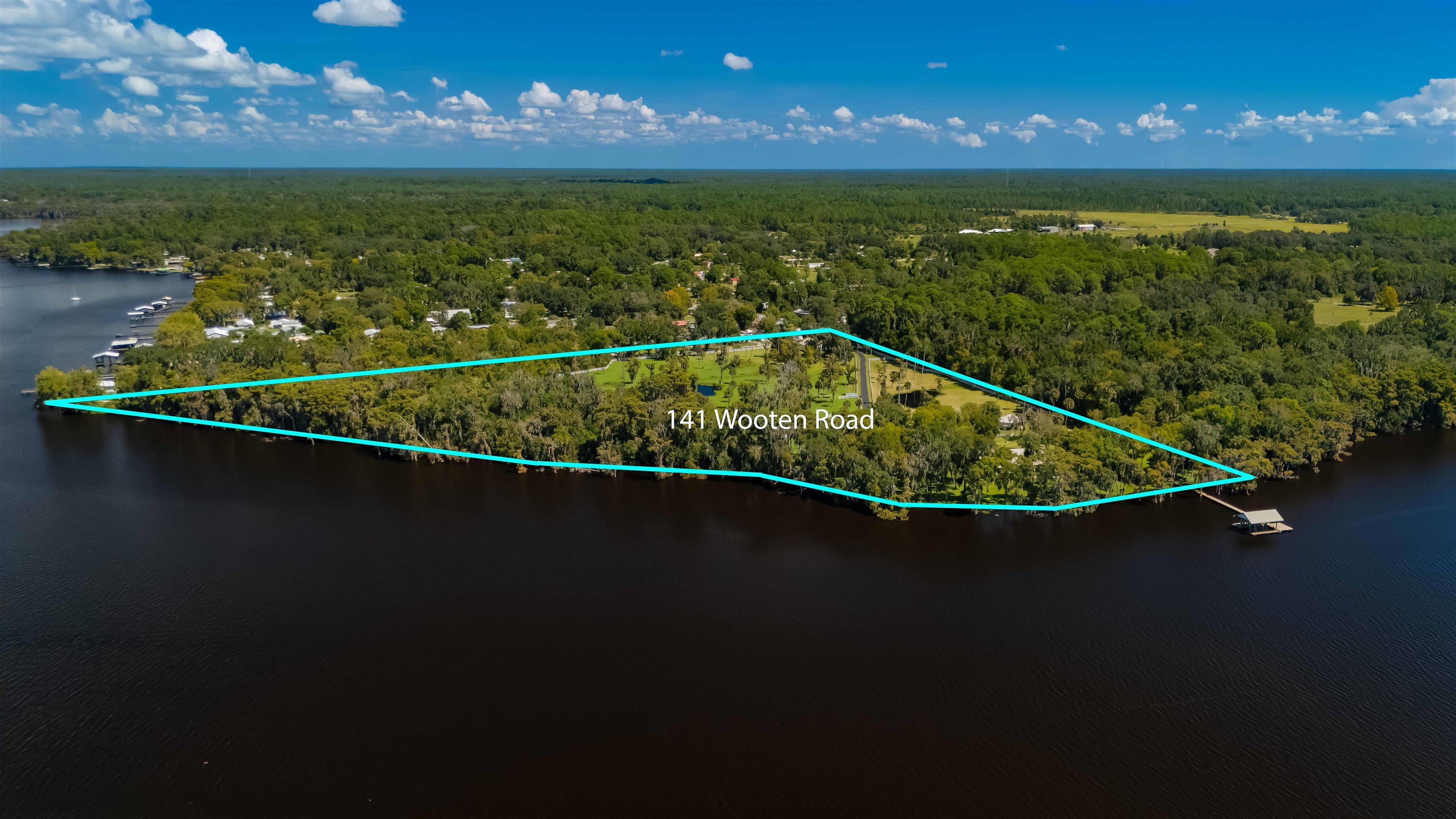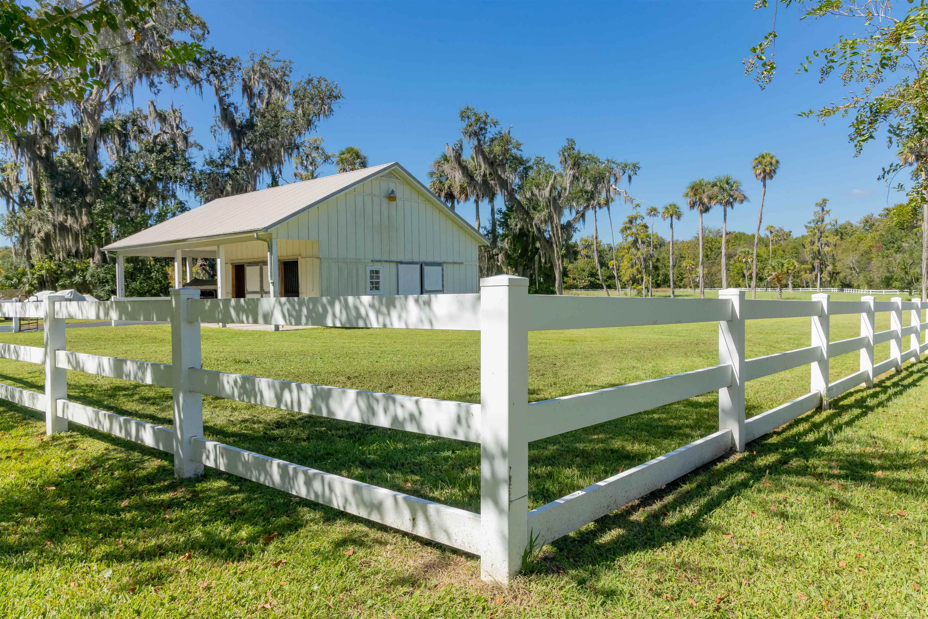 GORGEOUS RIVERFRONT CUSTOM HOME ON 22 ACRES WITH 1, 729 FEET ON THE ST JOHNS RIVER LESS THAN 2 MILES TO WORLD CLASS BASS FISHING AT BASS PRO'S FLORIDIAN SPORTS CLUB. Gated entry with long winding driveway where you will pass 2 barns (a 2 stall & a 3 stall), 3 gated fully fenced pastures leading to a spectacular 2BR/2BA with den, 2402 SF home on the river with a boat dock that includes a boat lift & 2 jet ski lifts to store your Hurricane boat & your 2 Honda jet skis that come with the home! This home is being offered fully furnished & includes all furnishings. Not only do you get a boat & 2 jet skis, you'll also get an electric golf cart, Kubota Tractor riding mower, shed full of tools, a chicken coop & much more. Circular driveway leads to wrap around porch with teak wood deck & a summer kitchen. Enter into the Great Room to beautiful high wood ceilings with wood beams, clerestory windows, magnificent stone fireplace & 4 sets of French Doors leading to the wraparound porches. Owners wanted a "glorified cabin" with views from every room. Rich wood parquet flooring throughout. Spacious kitchen with lots of cabinets & counters, breakfast bar, gas stove & views of the river. 2 hallways with wood molding. 1 hallway leads to pantry & huge 12x12 laundry rm with lots of cabinets & counters, large sink & door to the front wraparound porch. Other hallway leads to double French doors to owner suite with many windows for tranquil river views, huge bathroom with river view & walk in closet with 2 gun safes, plus a private sun porch filled with more tranquil river views. The 2 stall horsebarn is in a gated fenced pasture with a pond & a chicken coop. The 3 stall horsebarn also has a carport for your own Hurricane boat. Views are breathtaking!! Across the river you will see Ocala National Forest, Hog Island and Drayton Island. This is truly PARADISE!