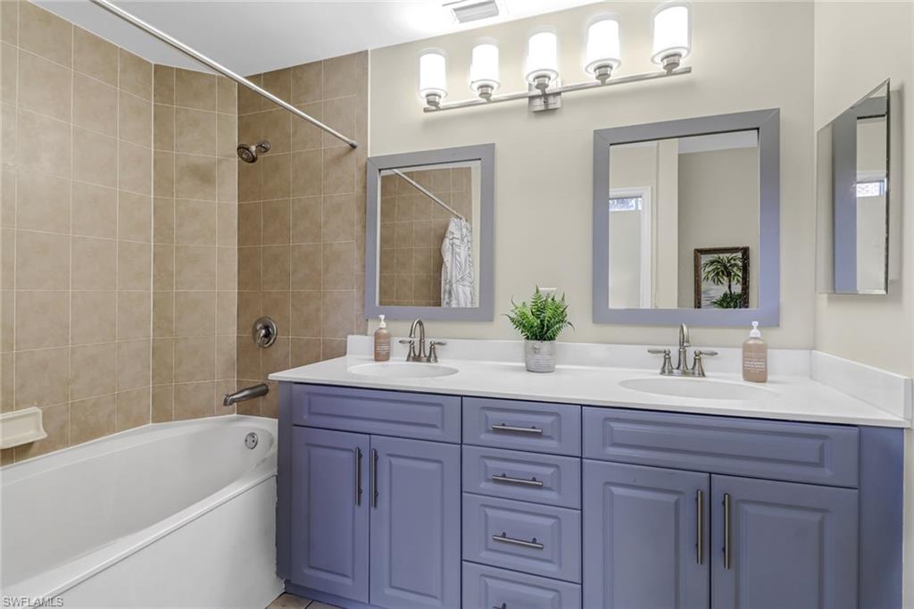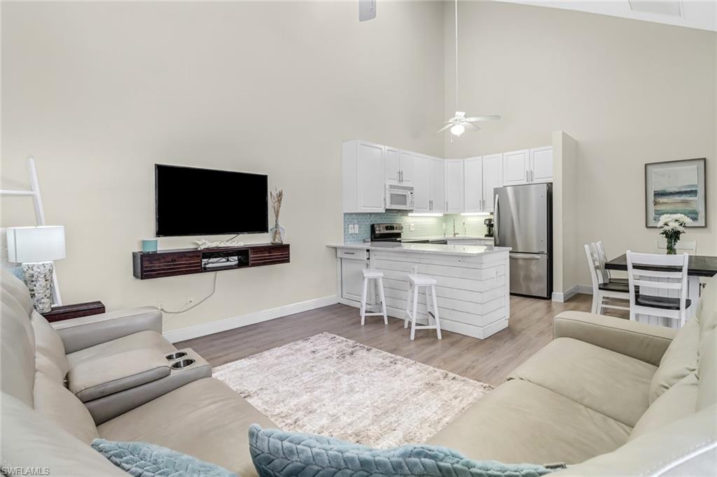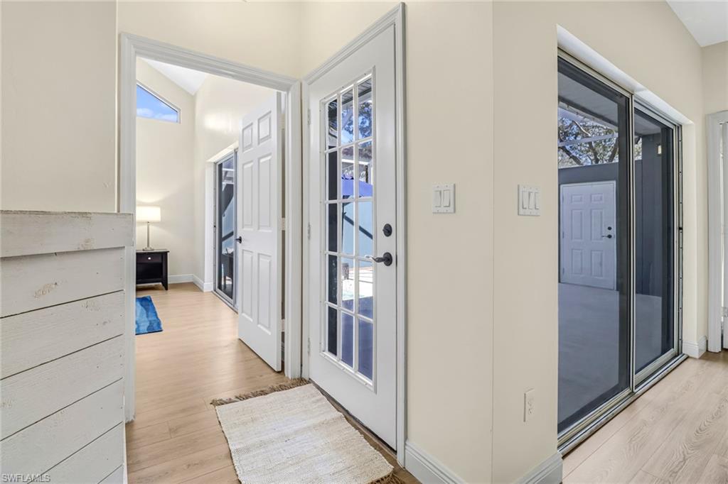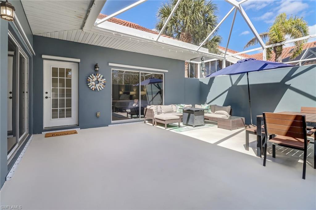 Unbeatable value in the heart of Naples! This exceptional villa offers one of the most unique and spacious floor plans in the area—priced well below comparable properties. Featuring two bedrooms plus a den, two bathrooms, and a private two-car attached garage, this home perfectly blends comfort, functionality, and outdoor living. Enjoy two expansive outdoor spaces, including a private screened courtyard designed for entertaining and a tranquil upper patio ideal for relaxing under the stars. Inside, the open-concept layout showcases vaulted ceilings, a remodeled kitchen, and brand-new 30-year laminate flooring with updated baseboards. The first-floor primary suite provides privacy and convenience with its own full bath, while the second bedroom and bath are also located on the main level. Upstairs, the versatile den with a private terrace can serve as a third bedroom, guest space, or home office. Major updates include new roofs (2018–2019) with a 30-year warranty, refinished deck (2020–2021), new A/C (2020), new hot water heater (2020–2021), and a freshly redone paver pool deck (2023). The Quail Woods community offers affordable HOA fees covering a temperature-controlled pool, two hard tennis courts, landscaping, lake maintenance, and water/sewer. Ideally located just minutes from shopping, dining, entertainment, medical facilities, and Southwest Florida International Airport—and only four miles from Naples’ world-class beaches—this property is a rare find. Offering an unbeatable combination of location, updates, and price, it’s the perfect opportunity for a year-round home, winter retreat, or investment.