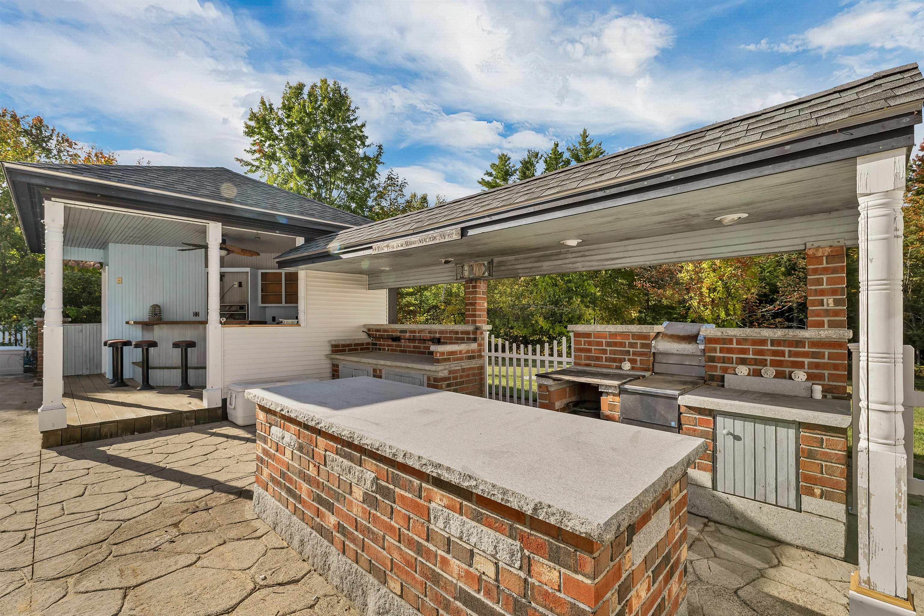 Custom Colonial home offering exceptional space and amenities. Step inside to extra-wide pine floors, NEW kitchen, fresh interior and exterior paint, refinished floors, and more. If you need extra space for car collection, potential in-law living, or office/business use, this home delivers, and includes attached 4-story structure of 3, 100SF. Natural light fills 1st floor featuring primary suite, open-concept kitchen and dining w/living and family rooms. 2nd level offers 4 generous bedrooms, full bath, and laundry room, while 3rd flr adds two additional bedrooms, office area, and full bath—ideal for guests, extended family, or expanded in-law options. Step outside from primary suite or living area to large screened-in mahogany porch leading to entertainer’s paradise w/heated in-ground pool, granite outdoor bar w/seating, TV/movie retreat, refrigerator, sink, grilling areas, cabana, and patio. Open floor plan allows multiple living setups, complemented by finished lower level w/large entertainment space, custom craftsmanship, warm gathering areas, billiard room, media/game area, cozy fireside retreat, and abundant storage. Main home offers up to 7 bedrooms (5-bedroom septic), or flexibility for office, craft, or guest spaces. Impressive 4-story barn/garage features unfinished space, radiant heat, fireplaced room, and room for up to 12 additional vehicles or toys—ideal for collectors, hobbyists, workshop or studio space. Rare opportunity in fantastic Bow location.