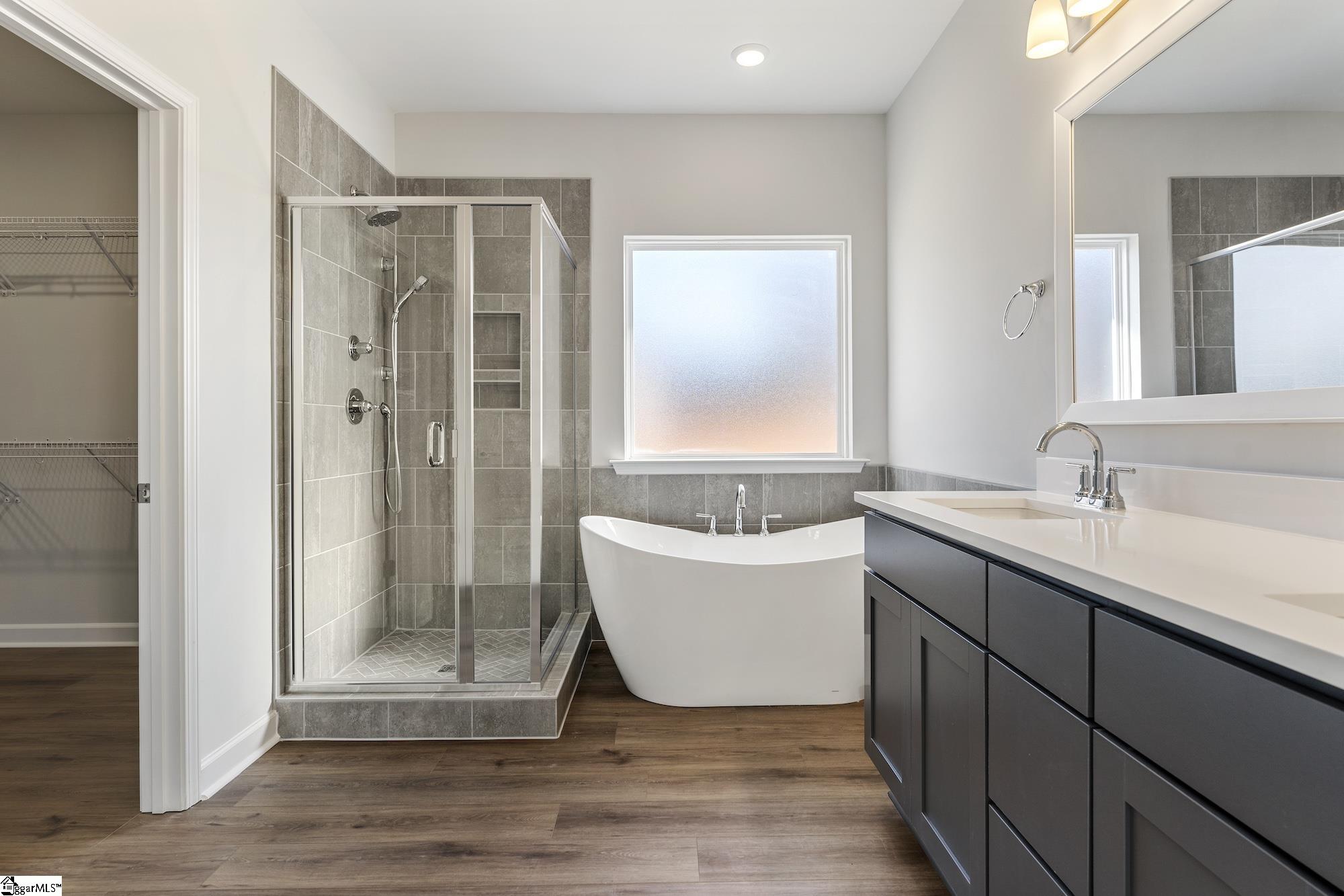The Cumberland is a one-story home with three bedrooms and two baths. Upon entering the home you are greeted by the open concept great room, eat-in and kitchen. The great room offers a boxed ceiling and ample space for entertainment. The primary suite features a private luxury bath with a separate tile shower and free-standing tub. Behind the kitchen, two secondary bedrooms share a full bath that could also be used for guests. There is also a spacious office with French glass entry doors. To top it all off, this home features a three-car garage!