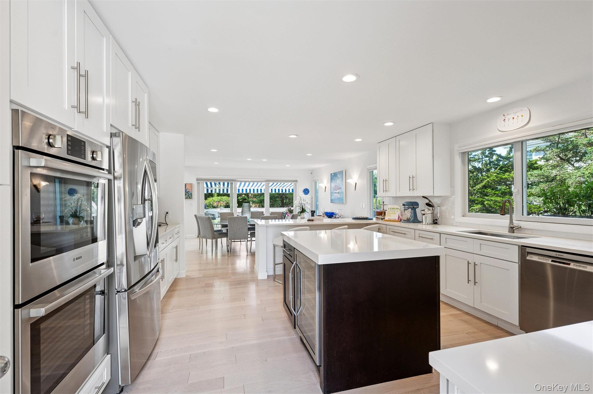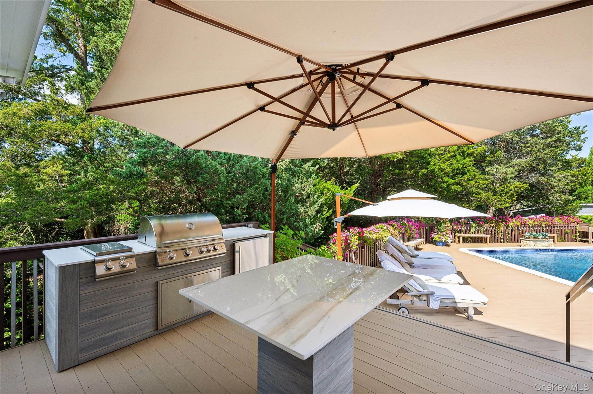 The ultimate summer property- in the heart of Westhampton Beach, is a four bed, four bath light filled contemporary with pool, tennis and hot tub in the prestigious estate district. This fully renovated home offers over 3000 square feet on two levels, with multiple decks, and a chef's kitchen . Enter to a light filled open living space with soaring ceilings, skylights and colorful art adorning the walls. Each room has access to the wraparound decks, with awnings creating shady outdoor rooms to bring the entertaining outdoors . Enjoy spaces for lounging, or cooking, and a fire pit for cozy evenings. Two bedrooms and a den complete the lower level, with two full baths, one featuring access to the pool deck. Upstairs are two bedrooms well as laundry facilities. The gracious primary features its own private sun deck (with an awning for those preferring shade) and a luxurious bath with soaking tub , enormous shower with dual rain shower heads, double vanity and private water closet. The expansive outdoor area includes a sparkling pool, with waterfalls and a hot tub, all surrounded by flowers, offering a serene escape for unwinding. Below the expansive raised deck is a Har-Tru tennis court for complete resort style living. You may not want to leave, but if you do the Village of Westhampton Beach , with the shops and restaurants of its vibrant new Main st is less than a mile away, and water views are just around the corner. Dune Road is less than 2 miles away. Available for a two-week vacation in July or August, , or for the US Open Golf tournament in June 2026, this property is designed for those seeking a luxurious getaway. Experience the best of Westhampton Beach living in this exceptional home.