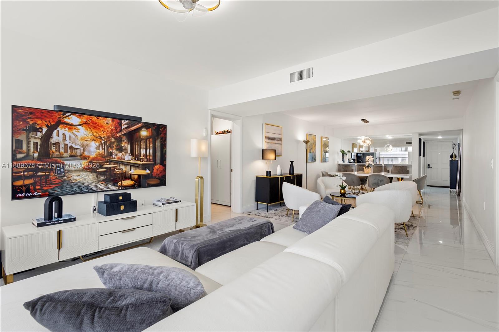 Beautiful 3 bed, 2 bath apt with 1, 437 Sqf. Renovated with high-end materials and luxury details. It offers a large living room with Tv room, conversation room, dinning room and a bar for 4 people. It has 2 large bedrooms, great loundry area (new washing and dryer machines) whose annex was converted into a 3rd bedroom and also can be used as an office. High quality designer finishes throughout. All impact windows, 48x48 italian porcelain tile flooring throughout the apt, including the kitchen and bathrooms, smooth ceelings and wall painted in white with high quality paint for an easy cleaning. Must see!
