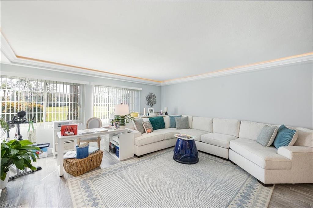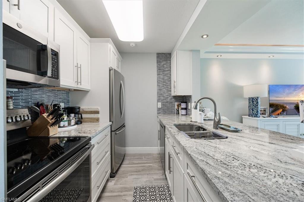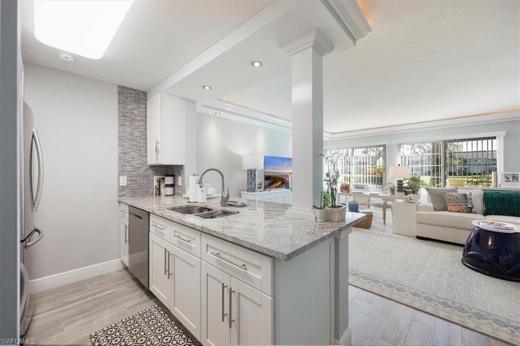 Welcome to your new home in paradise! This beautifully renovated, first floor condo is a serene retreat located in the heart of Naples, Florida, within a vibrant 55+ community. Boasting one spacious bedroom and a modern bathroom, this residence offers a perfect blend of comfort and coastal style. Step inside to discover a bright and airy open-concept living space, where newly updated features enhance both functionality and style. The nicely detailed living area opens into a contemporary kitchen with sleek appliances and stylish white cabinetry. The bedroom is a tranquil haven with ample closet space, and the renovated bathroom features a bath/shower with modern fixtures and lighting. The unit is steps away from the laundry facility and trash chute. The sparkling swimming pool is but a short walk to enjoy sunbathing and a dip in the water. Centrally located, this condo provides easy access to Naples’ finest dining, shopping, and cultural attractions, as well as pristine beaches and scenic parks. Experience the best of Southwest Florida living in this move-in ready gem. Welcome home!