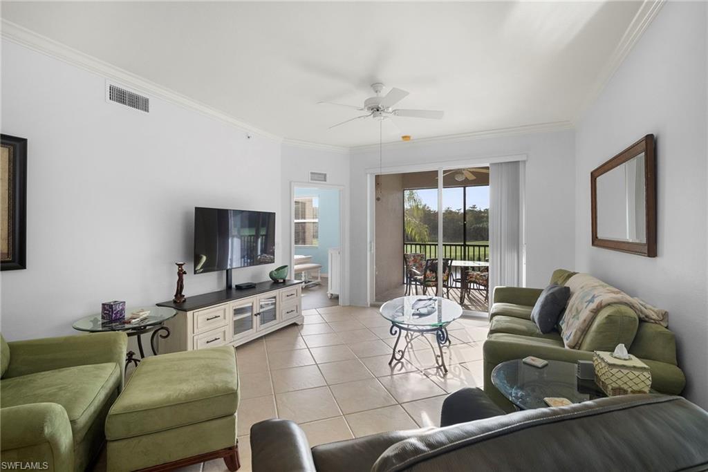 Nicely updated 2nd floor end unit "Colonade" Terrace condo with FULL golf membership included at Heritage Bay, Naples' premier bundled golf community! Plenty of space with 2 bedrooms, 2 full baths, an office/den with a queen sized Murphy bed, & a generously sized storage unit right outside the front door. This condo has been freshly painted, updated with high quality luxury vinyl flooring, and is being offered FULLY turnkey- move-in ready! Heritage Bay features a stunning 27-hole Lewis-Azinger designed golf course and aqua driving range. The grand clubhouse offers diverse dining options, elegant event spaces, and a lively social scene. Have a bite to eat in The Grille Room— a casual indoor/outdoor bar & dining area, with an incredible southern view of the 27th green. Members can also enjoy a resort-style pool area with heated spa & 'The Cabana' poolside bar & grille with a full service kitchen. The community also includes a top-notch tennis program with 7 har-tru clay courts, pickleball & bocce courts, and a state-of-the-art fitness center. With a calendar full of events and activities, Heritage Bay ensures a vibrant and luxurious lifestyle for its members. Whether you're a golf enthusiast or simply looking for serene views and luxury living, Heritage Bay offers it all. 2019 special assessment for amenities renovations paid in FULL