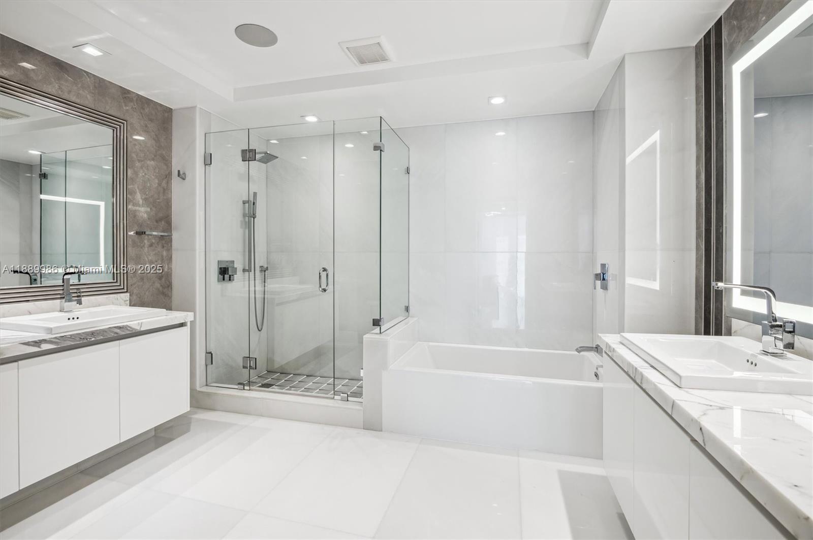 This stunning, state of the art Upper Penthouse is the epitome of turnkey luxury, w/4BR+Den & 5BA, spanning nearly 5, 000sf of living space (3, 877sf interior+1, 011sf wrap around balcony) just steps from the beach. Professionally designed by Intero Futuro to provide an unparalleled living experience. Open layout with stretch ceilings and ultra-modern, linear LED lighting. Floor to ceiling windows with breathtaking views of the ocean, intracoastal and city skyline. Customized closets and a curated collection of luxury Italian furniture. Top-tier chef’s kitchen, Wolf/Sub-Zero/Bosch appliances with marble+adamantium quartzite countertops. Spacious primary suite with stunning ocean views, designer walk-in closet and a spa-like bathroom that creates a serene and lavish escape.
