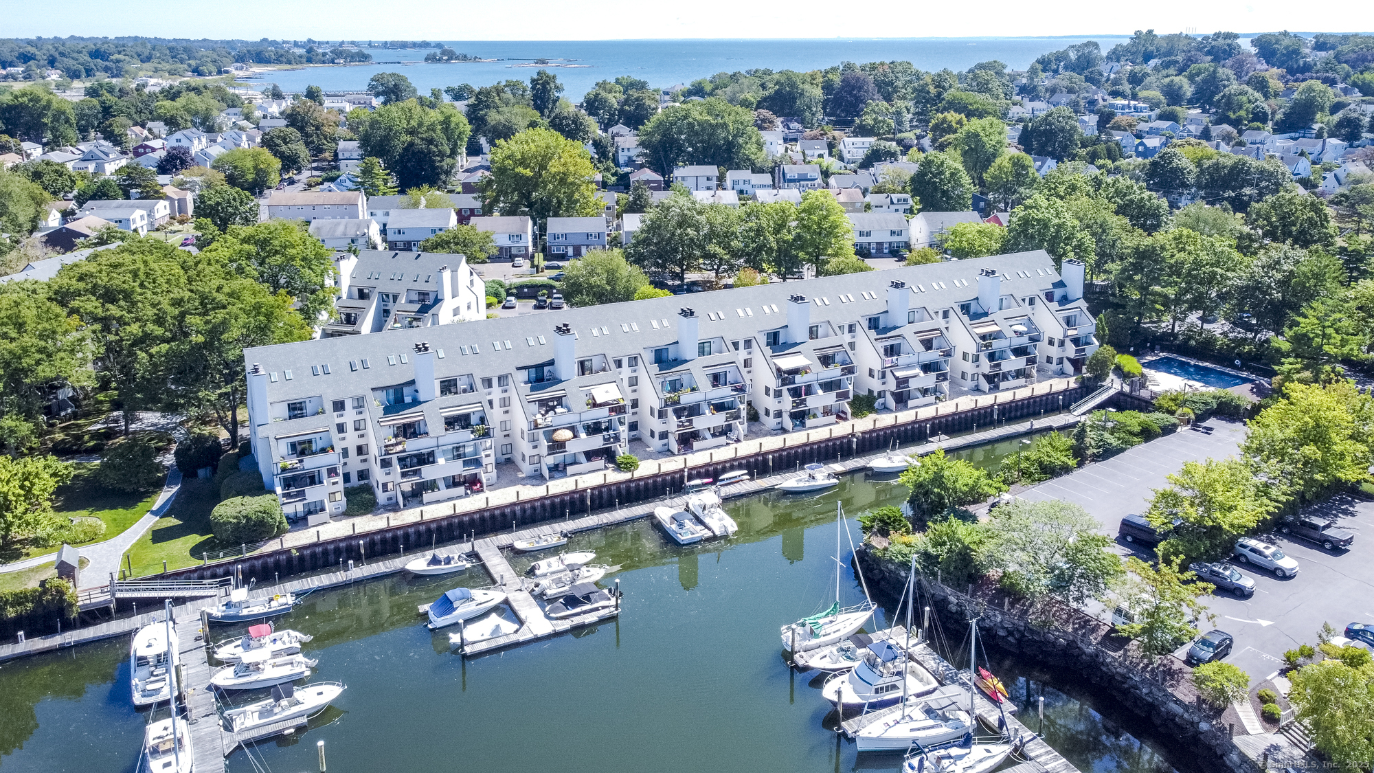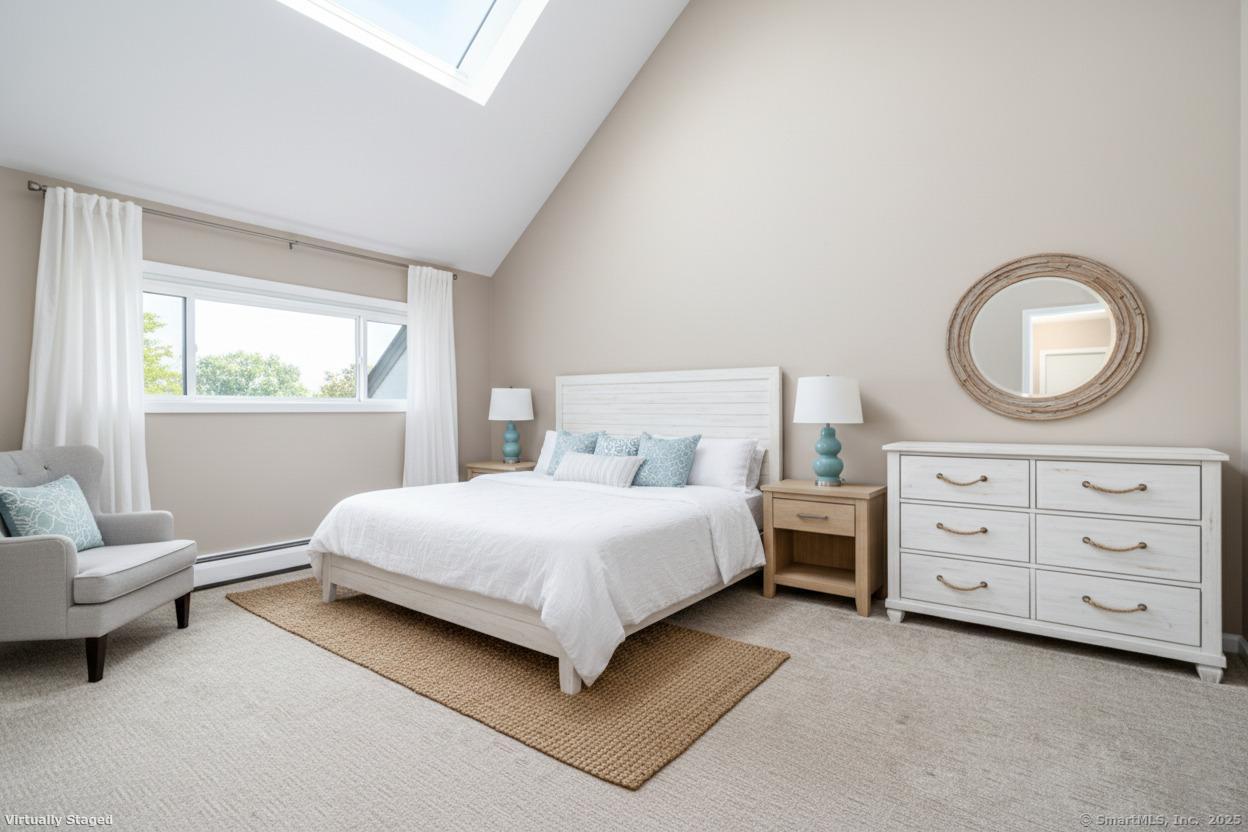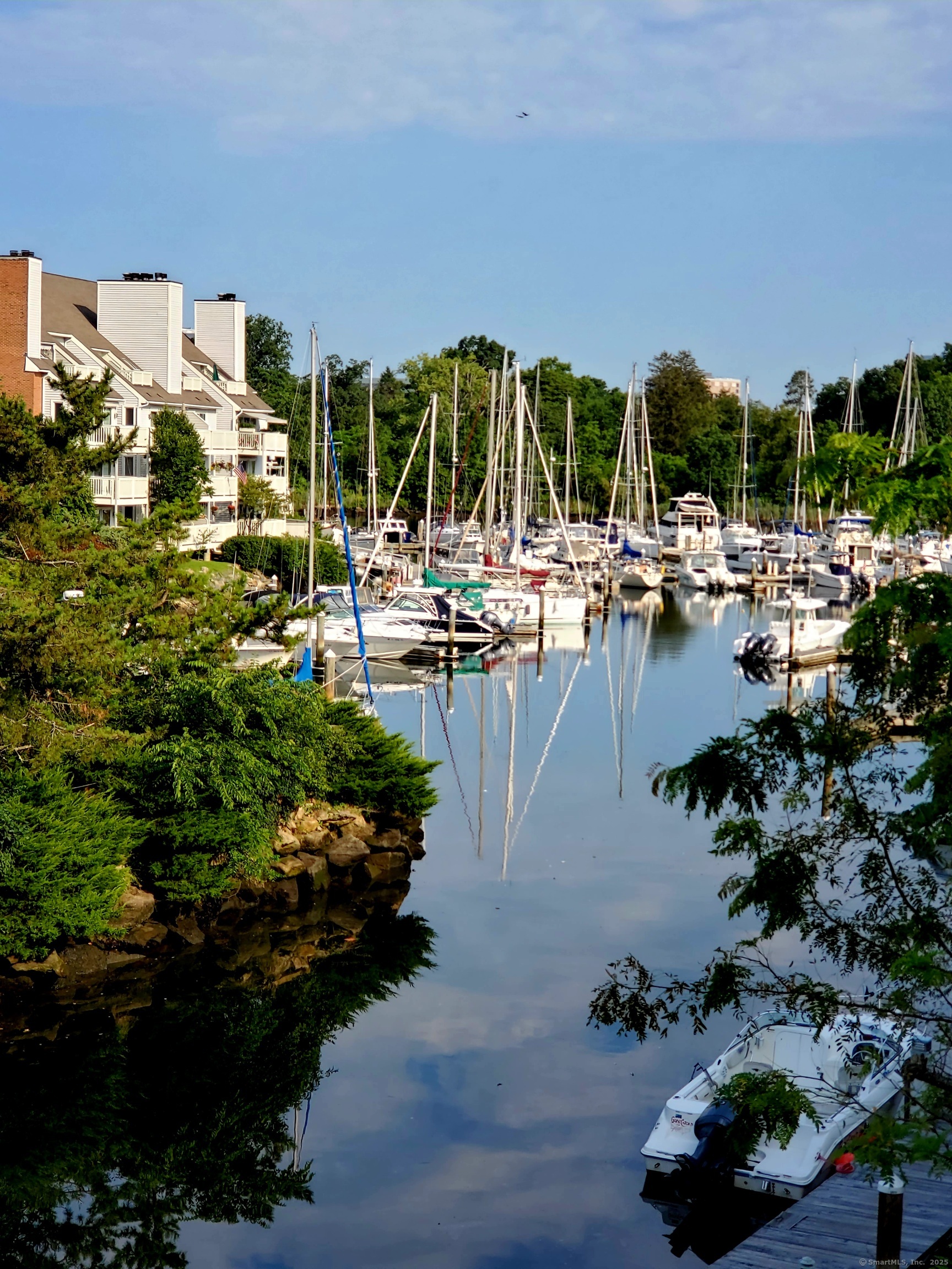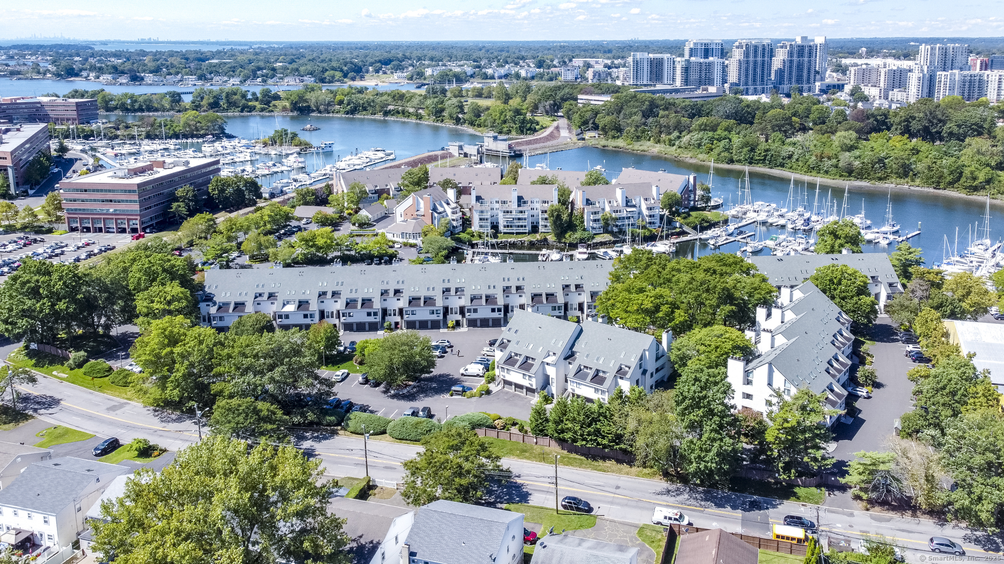 Experience elegant living at Schooner Cove, one of Stamford's most prestigious luxury waterfront communities. Nestled on coveted Shippan Point, Schooner Cove offers an unparalleled lifestyle, minutes from sandy beaches, boutique shopping & fine dining. This spacious 3-bedroom, 2. 5-bath townhouse blends refined style w/coastal charm & serene marina views. Living at Schooner Cove feels like a daily vacation-whether sipping coffee on your deck while watching the swans below, unwinding with some wine while watching the sunset, relaxing by the pool, or walking the charming grounds. The open main level flows to your large private deck off the living room directly overlooking the beautiful waterfront harbor. Inside, enjoy a cozy wood-burning fireplace, sleek modern kitchen w/stainless steel appliances, updated guest half bath, & convenient washer/dryer. The third level primary suite is a private retreat featuring vaulted ceilings, skylights, ceiling fan, walk-in closet & a 2nd private deck w/panoramic harbor views to enjoy day & night. The master spa-inspired bath features extra built-in storage space, walk-in marble shower, & updated high-end finishes for a truly luxurious feel. The additional bedroom on this level offers flexible living space, ideal for even a den or office w/large walk-in closet. The second level bedroom is a true en-suite with updated bath featuring sleek finishes & designer tile. Heat & Hot water are included in the HOA plus additional storage & amble parking.