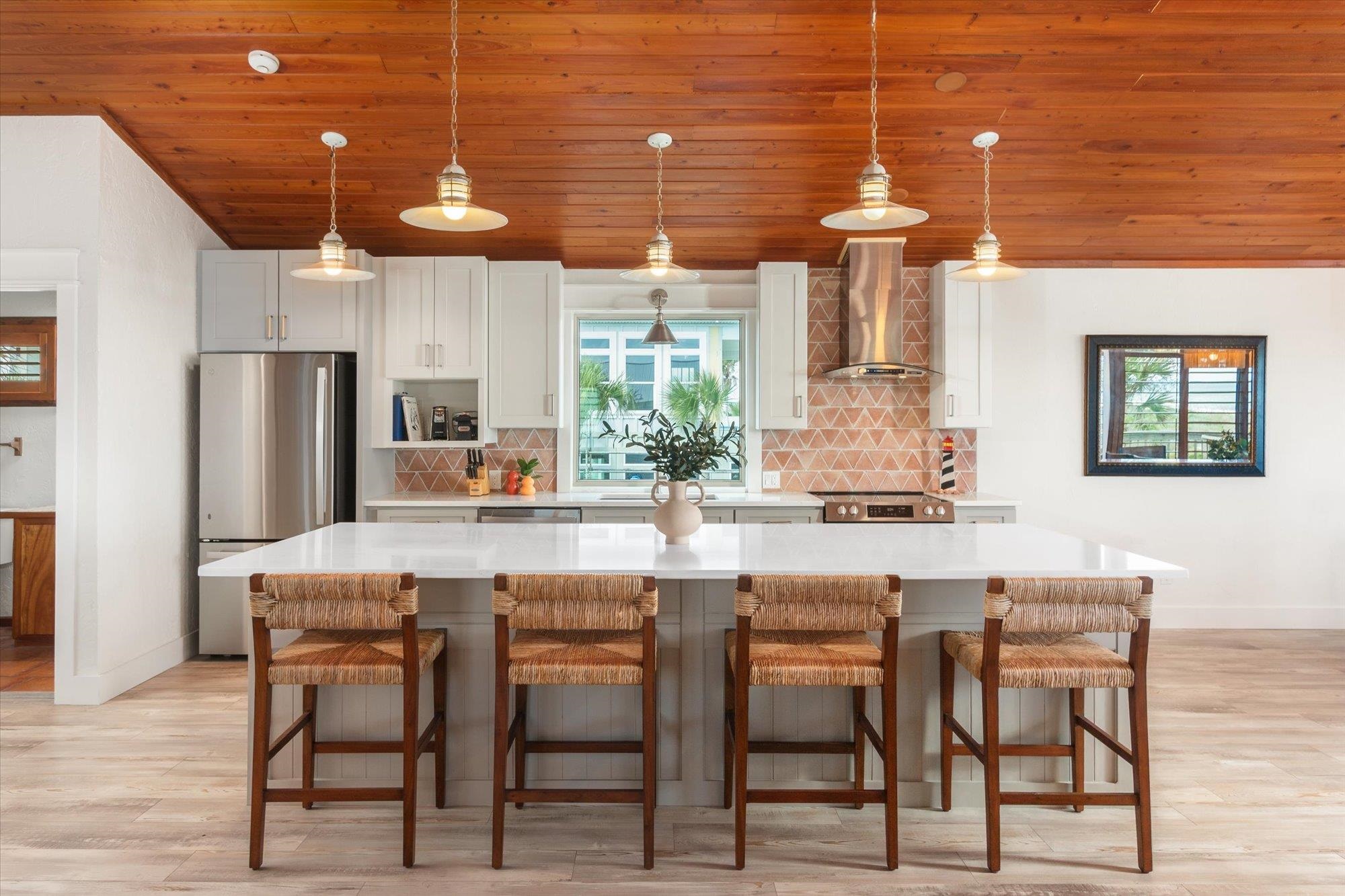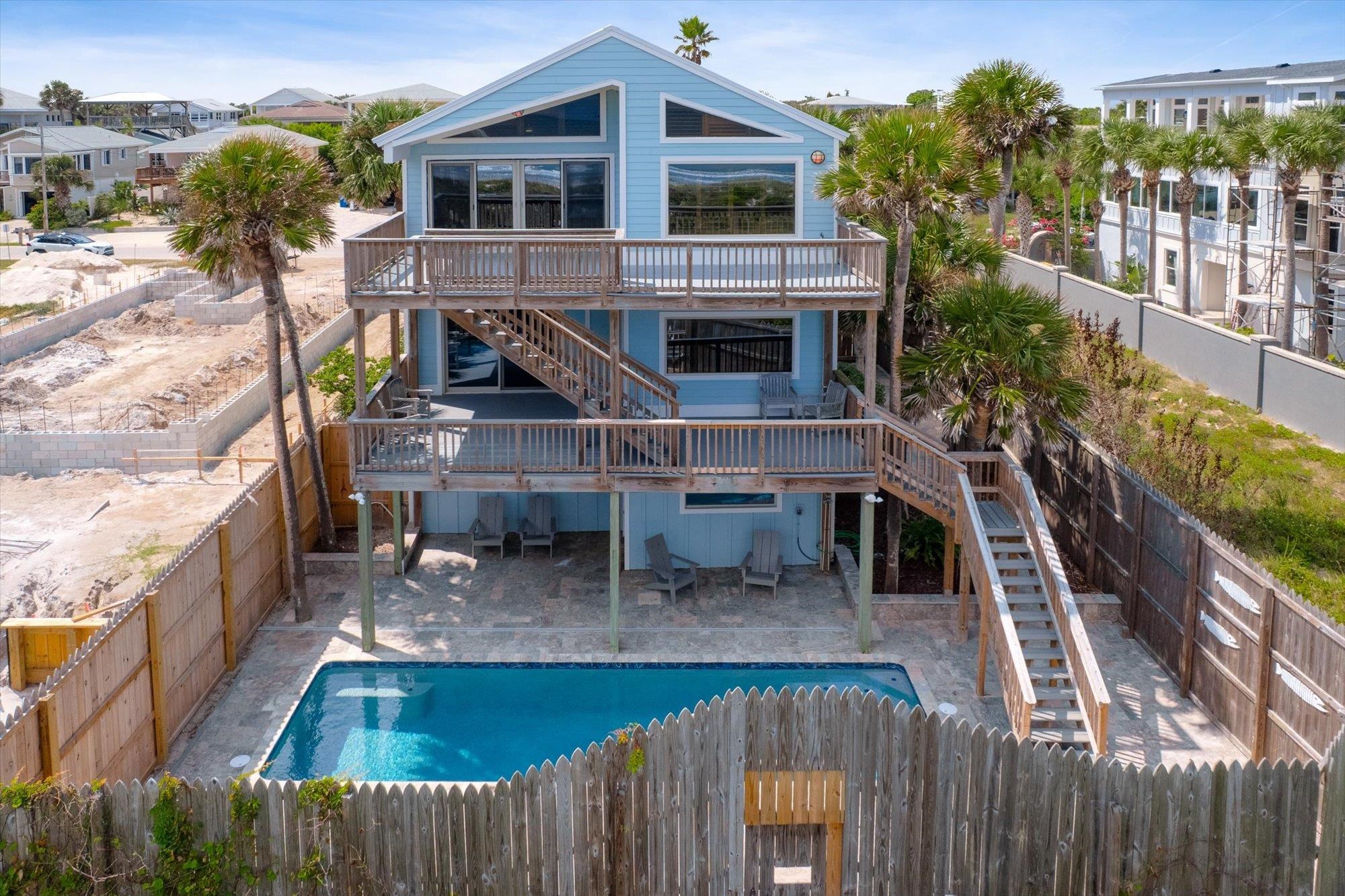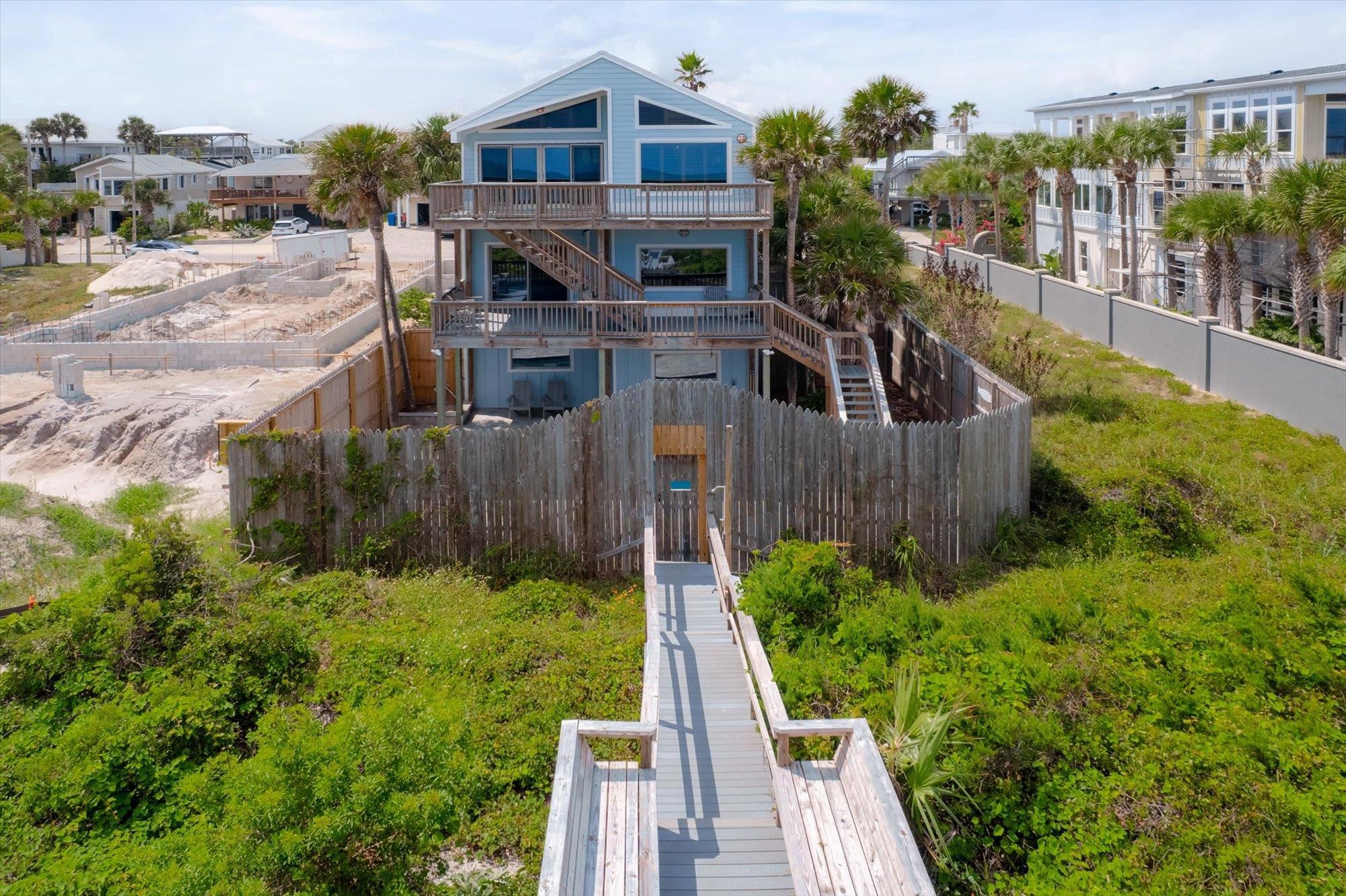 Once a retreat for legendary musician Tom Petty, this oceanfront home now offers a rare chance to enjoy a reimagined piece of coastal paradise on Anastasia Island. Perched high on the dunes, 5372 Atlantic View combines panoramic ocean views with modern design and a relaxed beachside lifestyle. This fully renovated 5-bedroom, 4-bath residence spans more than 3, 200 square feet and has been carefully updated inside and out. A new roof, upgraded plumbing and electrical, fresh flooring, and a redesigned pool are just a few of the improvements that make this home move-in ready. Every update was made with comfort and style in mind, creating a space that feels both timeless and modern. The third-floor main living area is the heart of the home, where walls of glass frame sweeping views of the Atlantic. An open-concept design connects the remodeled kitchen, dining, and living areas, allowing natural light and ocean breezes to fill the space. Multiple balconies extend the living area outdoors, creating the perfect setting for morning coffee, sunset gatherings, or quiet evenings listening to the waves. The owner’s suite, also on the top level, offers a private retreat with direct balcony access and unobstructed ocean vistas. Its spa-style bathroom features an oversized shower and contemporary finishes, designed for relaxation after a day on the sand. Guest bedrooms and additional living spaces on the lower levels provide comfort and flexibility for family and visitors. With four updated bathrooms and plenty of storage, the layout balances private escapes with gathering spaces. Outside, a newly designed resort-style pool and sun deck overlook the dunes, offering another vantage point to take in the views. A private beach walkover leads directly from the property to the shoreline, placing the sand and surf just steps away. Whether you’re entertaining friends, hosting family, or seeking a peaceful escape, this home is designed to deliver the ultimate coastal lifestyle. Set along one of St. Augustine’s most desirable stretches of oceanfront, this home offers both privacy and convenience. Anastasia Island’s shops, dining, and recreation are close at hand, while historic downtown St. Augustine is just minutes away. With its unique history, extensive renovations, and prime location, 5372 Atlantic View is more than just an oceanfront property—it’s a one-of-a-kind opportunity to own a home that blends modern coastal living with a storied past. Schedule your private showing today and experience it for yourself.
