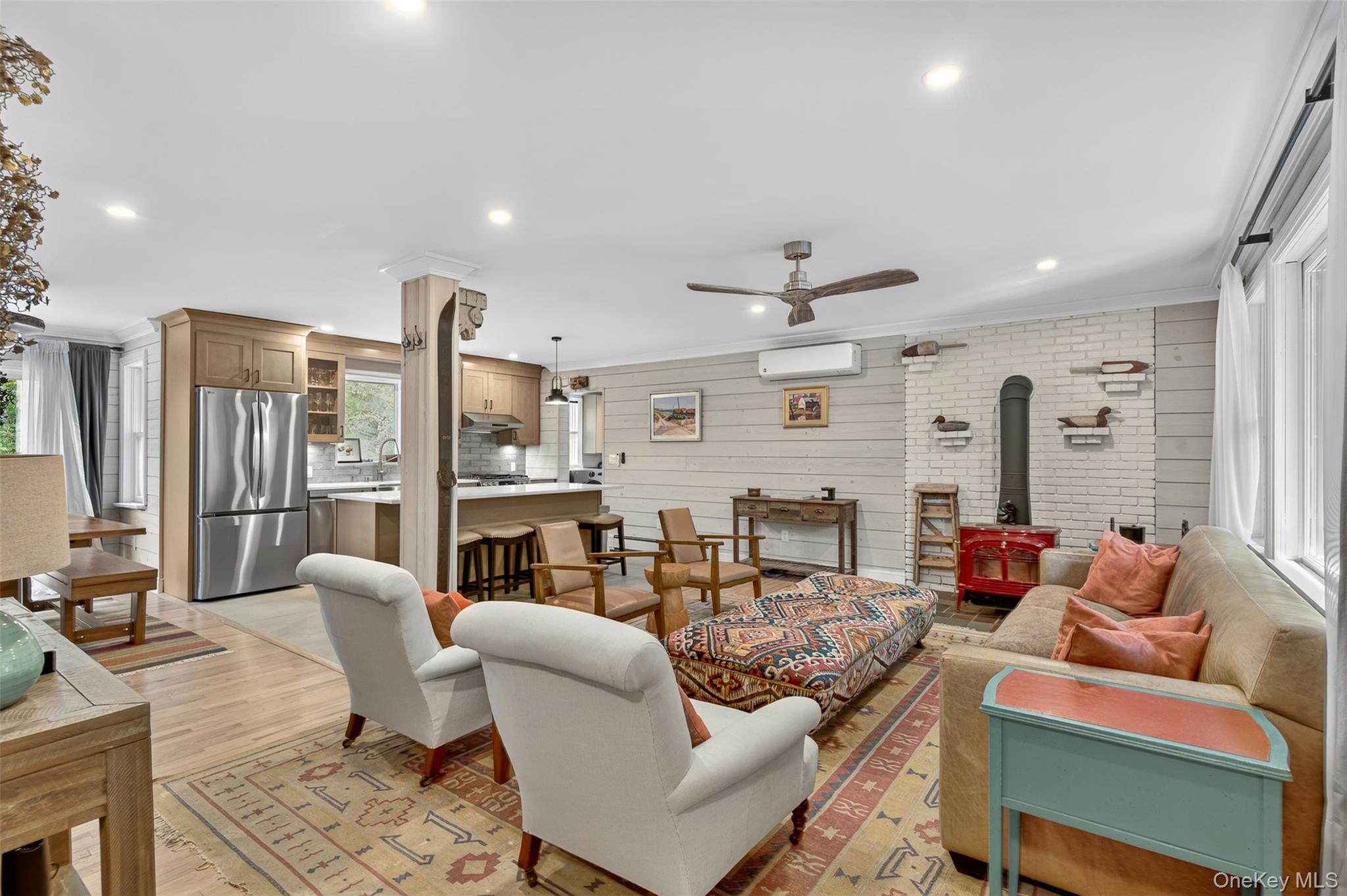 Welcome to your private Hudson Valley sanctuary—an exquisite fully gut-renovated 4-bedroom, 4-bath elevated Cape Cod escape on 24 secluded acres directly bordering the Mohonk Preserve. Set at the end of a quiet country lane, this fully renovated 2, 500+ sq ft home combines modern comfort, rustic character, and total privacy. Enjoy woodland and water views from nearly every room, with over 150 feet of elevation gain offering direct access to miles of Preserve trails. The open-concept main level features sunlit living and dining areas, a wood-burning stove, and a chef’s kitchen with quartz countertops, solid wood cabinetry, and an expansive island. The lower level includes a second kitchenette and full bath—ideal for guests, extended family, or studio use. Recent upgrades include a new roof, HVAC systems, solid red oak flooring, solid wood doors, updated electrical and plumbing, and over 850 sq ft of finished basement space. A detached accessory structure with high ceilings and electric offers excellent potential for a studio, office, or guest suite. Designed schematic plans are available for further expansion, including converting the main house garage into a great room. With potential for at least two accessory dwelling units (subject to approvals), this property offers both investment value and an exceptional lifestyle—just minutes from High Falls, Rosendale, and New Paltz, and under two hours from NYC.