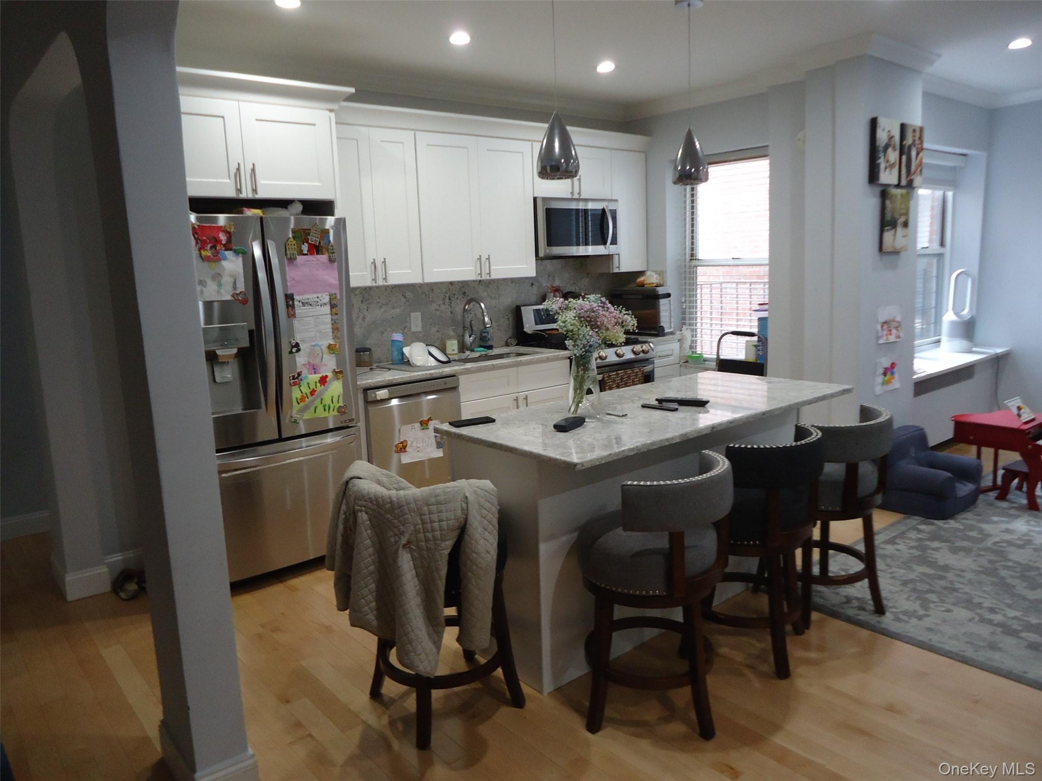 Nicely renovated 2-bedroom. Quiet yet bright. Highend Appliances, Best Quality Renovations, Faces multiple exposures from the front and side. PS 101 School. Dogs allowed. Around the corner, 1 block to the express subway.