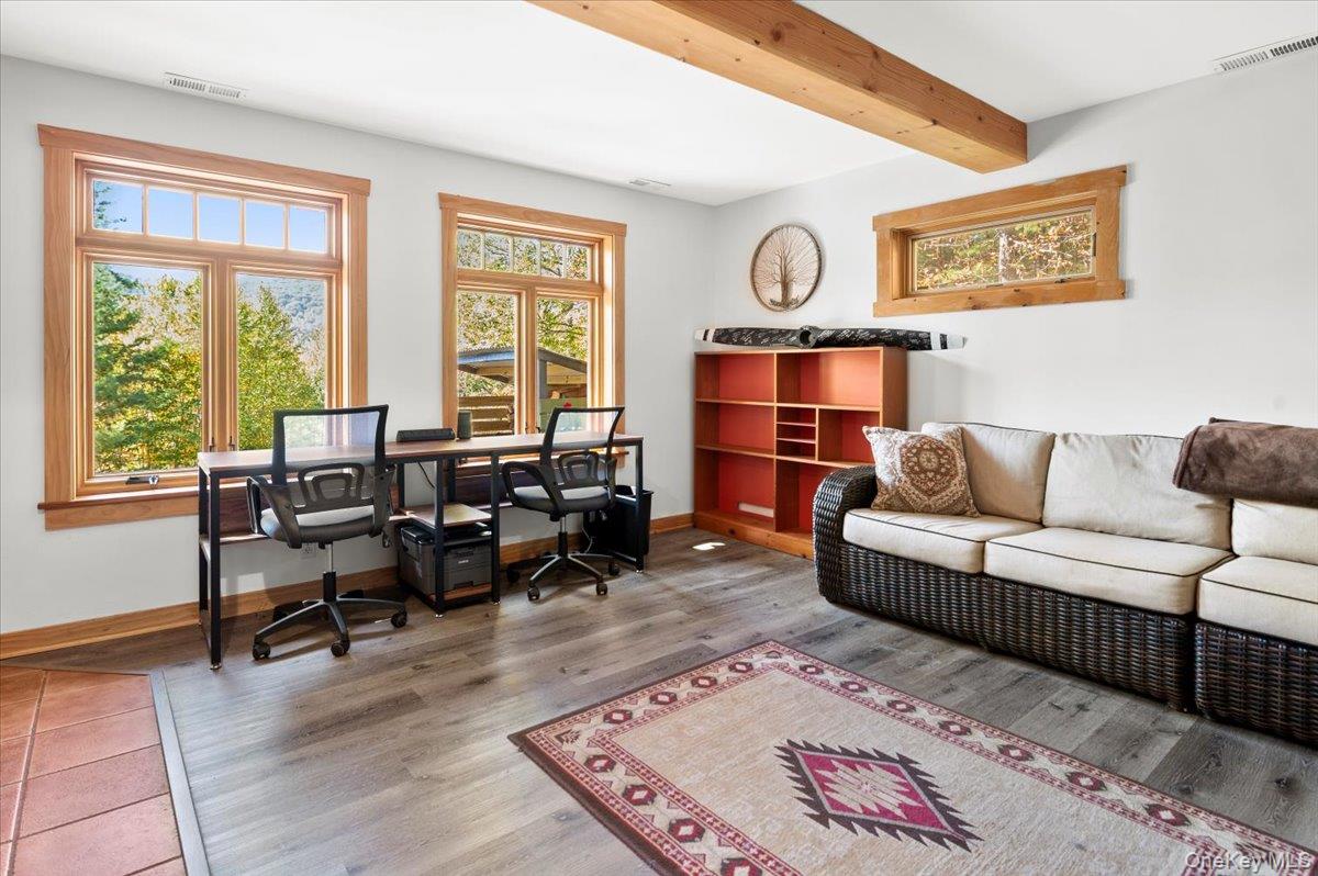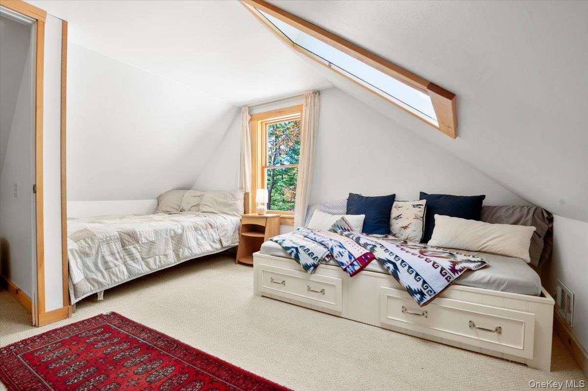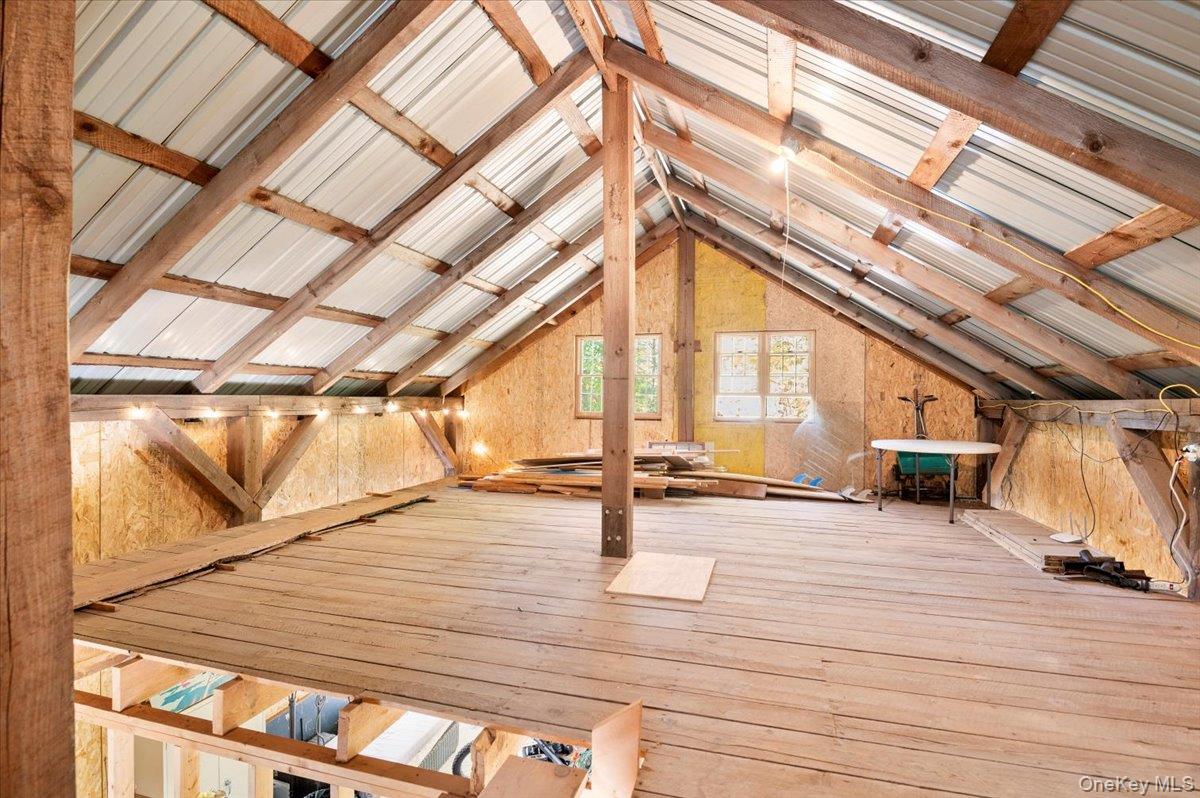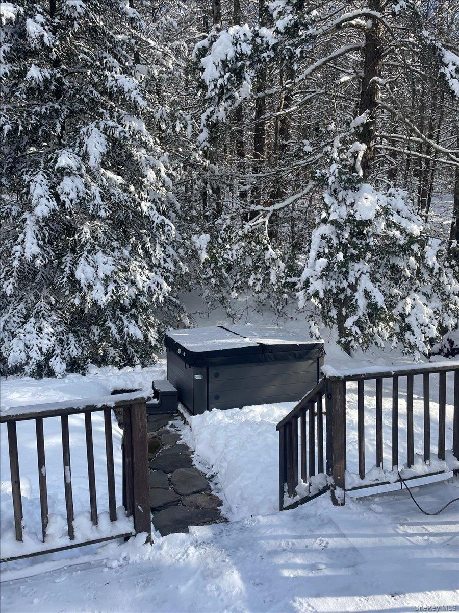 Breathtaking mountain views set the stage at 26 Carle Rd in Mount Tremper, a custom 3-story Contemporary that truly reflects the spirit of the Catskills. With 3 bedrooms, 2 baths, and an open floor plan, the home offers both comfort and serenity. The centerpiece is a dramatic stone fireplace with a wood-burning insert, its chimney running through all three levels and filling the home with warmth and character. Details like a third-floor sleeping nook and exposed wood beams add charm and bring the outdoors inside. Outside, more than 4 private acres on 2 deeds invite you to slow down. Two large decks frame the views, a heated stone walkway leads to the hot tub for evenings under the stars, and a seasonal stream runs quietly nearby. An older barn adds rustic appeal and function, while a two-story Amish barn with heat and electricity offers endless options—an artist's studio, woodworking shop, or creative retreat. A whole-house generator and updated heating system add peace of mind. Here, every detail brings you closer to nature, peace, and quiet. And when you're ready to explore, Woodstock, Kingston, and Phoenicia are just minutes away, with hiking, skiing, fly fishing, live music, and the Catskills culture that has kept generations coming back.