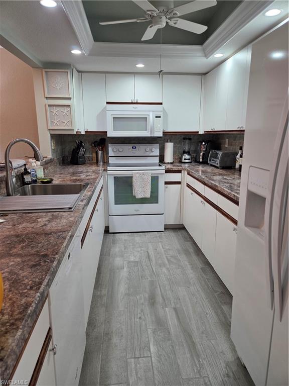 This villa features brand-new flooring, soaring volume ceilings, a remodeled master and guest bath, and an attached garage.