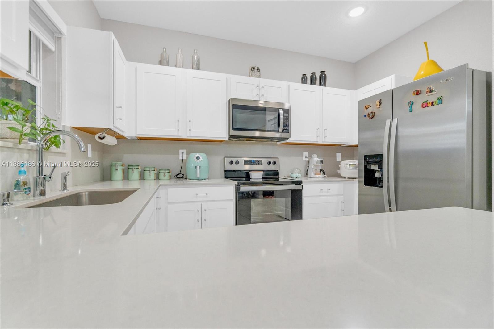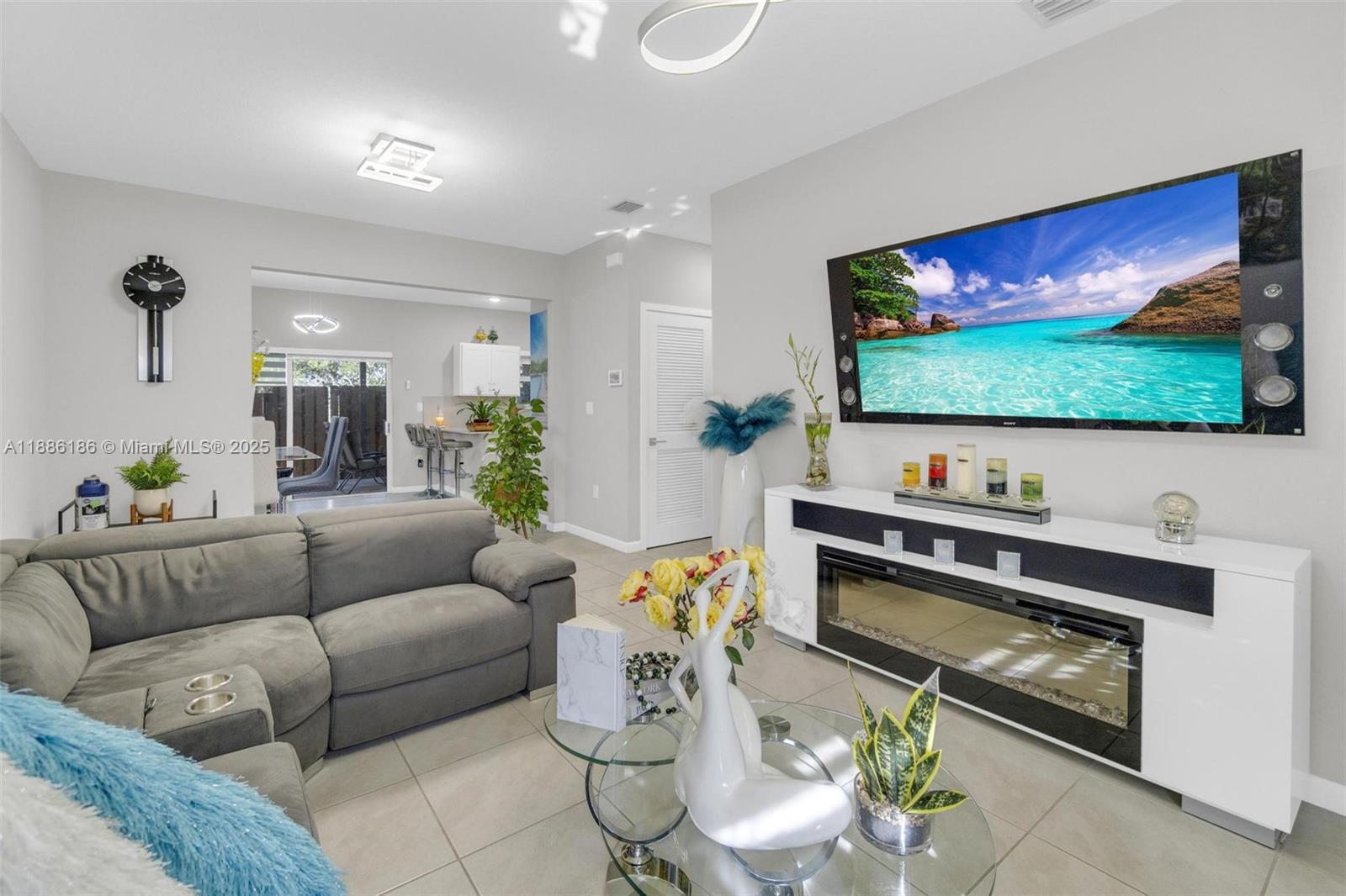 SECTION 8 IS WELCOMED! Discover your ideal home in this stunning, spacious one-story villa featuring 3 bedrooms and 2 bathrooms. Step into your private retreat with a vast fenced backyard, an outdoor oasis complete with a TV—perfect for unforgettable gatherings and entertaining guests. The generous kitchen boasts elegant quartz countertops, and the entire home is beautifully tiled for a modern touch. Enjoy the convenience of an in-home laundry room equipped with a washer and dryer. With 2 assigned parking spaces and ample guest parking, you'll never have to worry about finding a spot. This incredible community offers a refreshing pool and a clubhouse that can be reserved for special occasions, such as birthday parties and events, along with a gym, security, and onsite management.