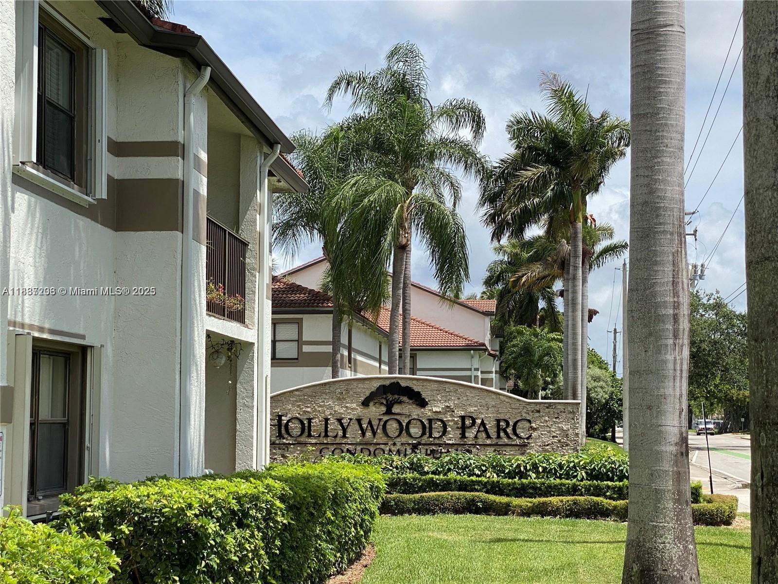 RENTED FOR $1, 749 TILL 07/31/26. Ideal for investors, no rental restrictions, low HOA. Lovely 1/1 in a pristine, Washer and dryer in property, kitchen with breakfast bar, patio with storage closet at HOLLYWOOD PARC IN HOLLYWOOD! Community with beautiful gardens. 2 community pools along with Tennis courts and a Gym.