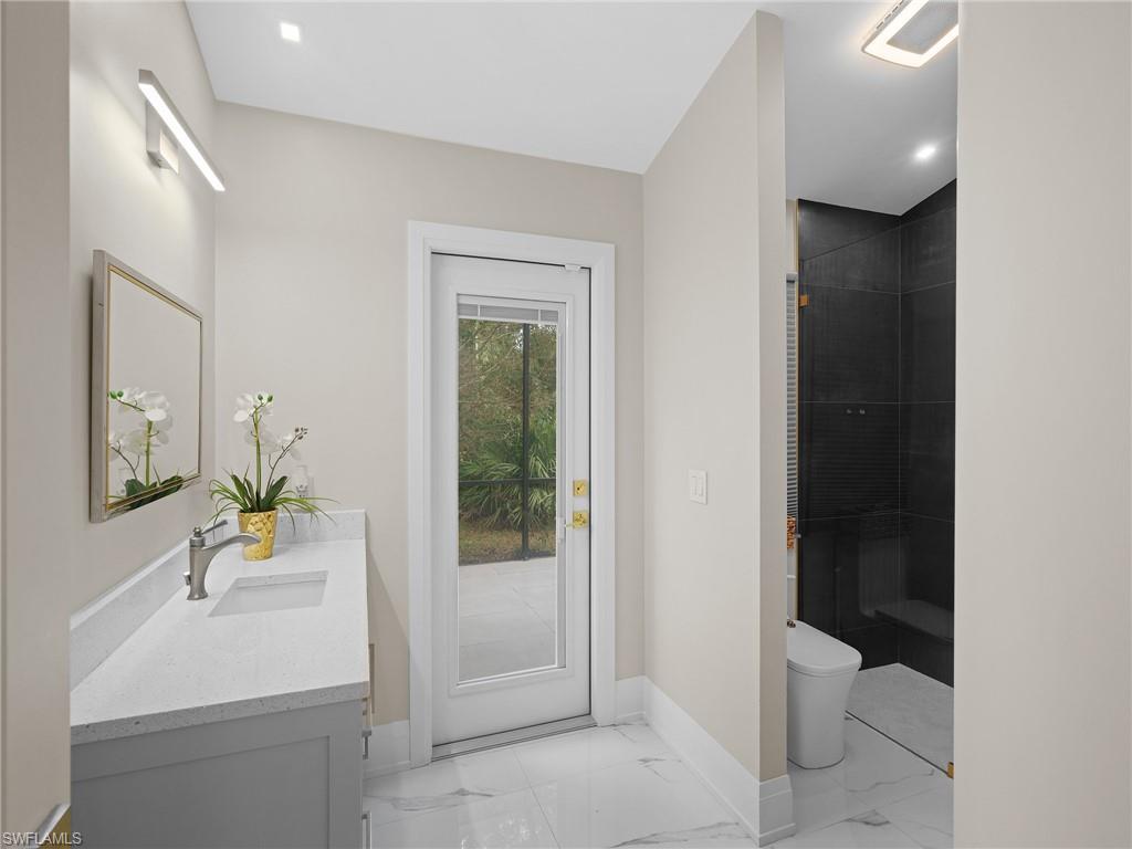 Exquisite Fully Remodeled Hawksridge Pool Home! Beautifully updated 3-bedroom plus den, 2-bath residence offering 2, 229 square feet of living space in highly sought-after Hawksridge. French door entry opens to an airy layout with vaulted ceilings and modern porcelain tile flooring throughout. Spacious living and dining areas flow seamlessly to the screened lanai and pool, creating an easy transition between indoor and outdoor living. A gourmet kitchen features quartz countertops, stainless steel appliances, wine cellar, subway tile backsplash, abundant cabinetry, and a large peninsula with seating. The primary suite offers private access to the lanai, a generous walk-in closet, and a remodeled bathroom with dual sinks, a walk-in shower and a soaking tub. Outdoor living space includes an expansive screened lanai, sparkling pool, outdoor shower, and multiple seating areas for dining or relaxation. Situated on an oversized . 59-acre lot with mature landscaping, the property offers exceptional privacy and curb appeal. Hawksridge is an established gated community known for low quarterly HOA fees, a clubhouse, fitness center, and tennis courts. Located just minutes from Naples beaches, shopping, fine dining, and entertainment, this home delivers both convenience and comfort. Move-in ready and fully remodeled, this property combines quality finishes, an open layout, and a premium central Naples location within a well-maintained community, perfect for buyers seeking a modern home with space, style, and privacy in a prime setting.