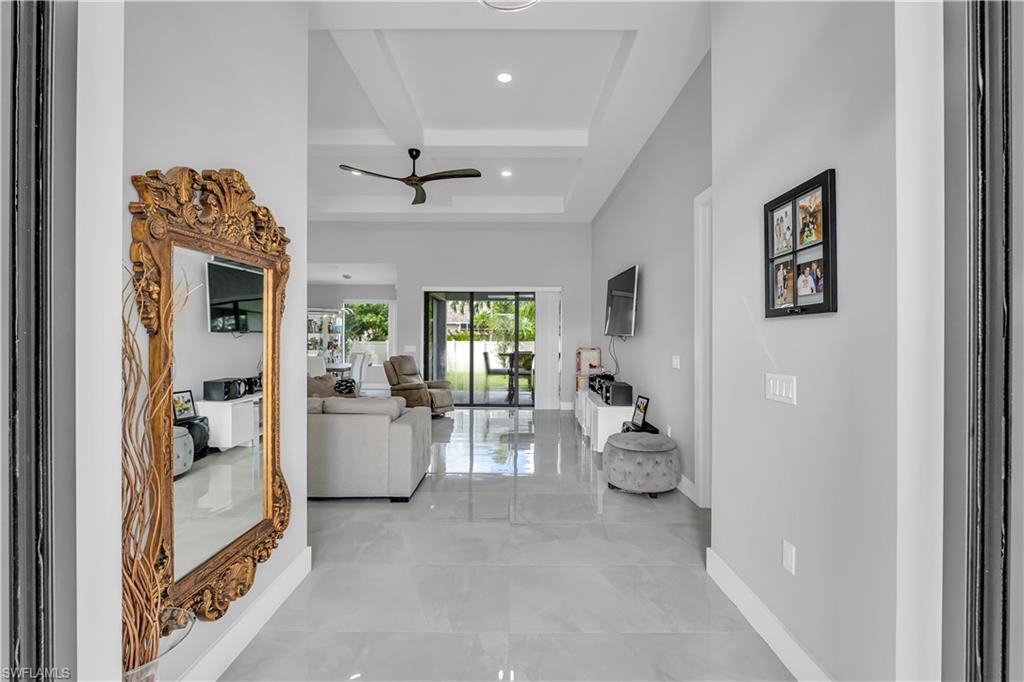 Modern Elegance Meets Investment Opportunity in Cape Coral Step into refined Florida living with this newly built masterpiece, designed to impress both homeowners and investors alike. Featuring 3 bedrooms plus a den, 2 luxurious bathrooms, and a 2-car garage, this 2, 131 sq. ft. home is a statement of comfort and modern design. Natural light floods through expansive glass sliders, gliding across the polished porcelain tile that unites every room in seamless sophistication. The chef-inspired kitchen quartz countertops, a waterfall island, and stainless steel appliances, setting the stage for gatherings both elegant and effortless. The primary suite offers a private escape with lanai access, dual walk-in closets, and a spa-like bathroom complete with dual vanity. Available to show at anytime!