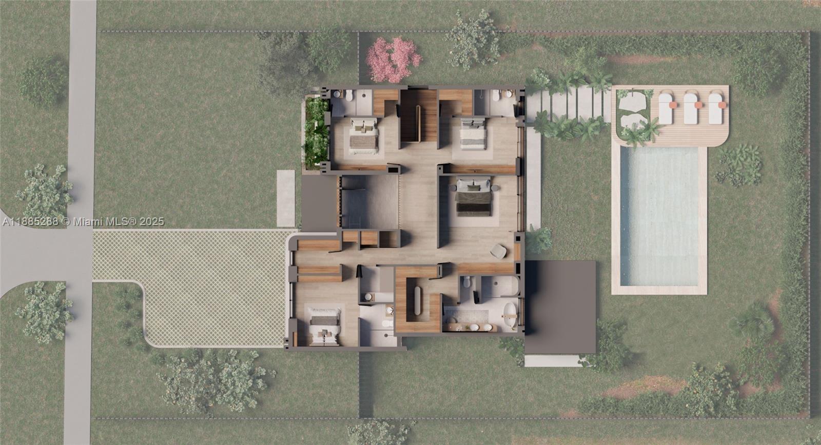 New construction two-story single-family home featuring 5 bedrooms and 6 bathrooms, offering 3, 904 SF of living space and a two-car garage. Built with concrete block construction, 9' ceilings on both floors, and high-impact windows. The home features a gourmet Italian kitchen with Pompei Quartz countertops and backsplash, Sub-Zero/Wolf appliances, 24" x 48" porcelain tile flooring, and refined finishes throughout. All bedrooms include en-suite baths, highlighted by a luxurious primary suite. Enjoy a covered terrace, 44” Bull summer kitchen, outdoor shower, and a sleek 8. 5’ x 31’ pool ideal for entertaining. Conveniently located minutes from Coral Gables, Coconut Grove, Brickell, and major highways.