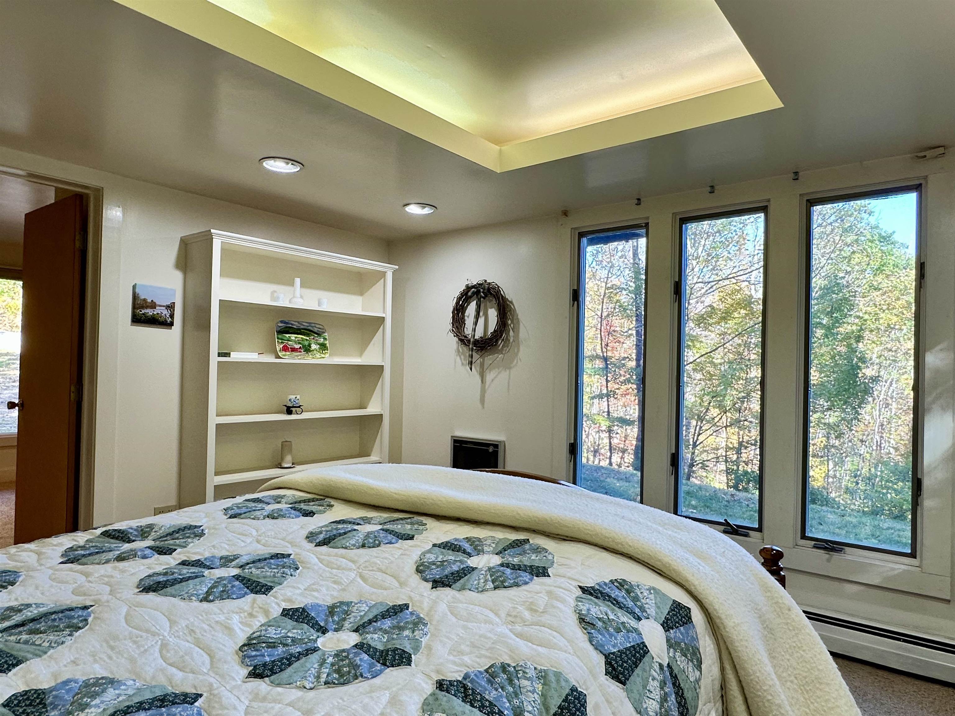 Welcome to your peaceful mountain retreat in the heart of Vermont's premiere ski country. Only minutes from Killington and Pico Mountains, this spacious 2. 5-story, 4 bedroom, 3 bathroom home offers the perfect blend of rustic charm and modern comforts. All surrounded by Vermont’s natural beauty and stunning views of Killington Mountain. Step inside to a bright and open living space where the vaulted ceiling, exposed beams, and the large multi-floor windows frame the tranquil forest setting. The inviting great room features a grand stone hearth and wood stove, creating a cozy atmosphere after a day on the slopes. The adjoining dining area and kitchen make entertaining easy, with warm wood cabinetry, ample counter space, and a breakfast bar that’s perfect for gatherings. Off of this space is a wonderful wrap-around deck that offers unobstructed mountain views. Completing this level are two guest bedrooms with each offering its own sense of privacy and relaxation, highlighted by natural light and peaceful woodland or mountain views. The primary suite is located just above this space and has a private entrance overlooking the great room below. Downstairs, a finished walkout lower level provides flexible space for a media room, home office, or guest suite complete with a recessed ceiling, built-in shelving and an additional full bathroom. So if you are into skiing, snowmobiling, hiking, swimming or anything outdoors then this home is a must see. Welcome Home!