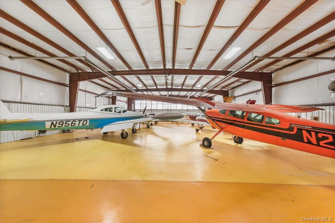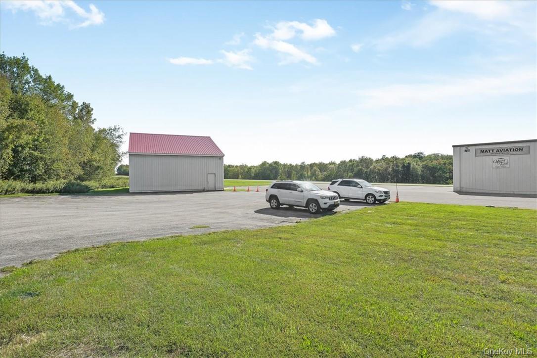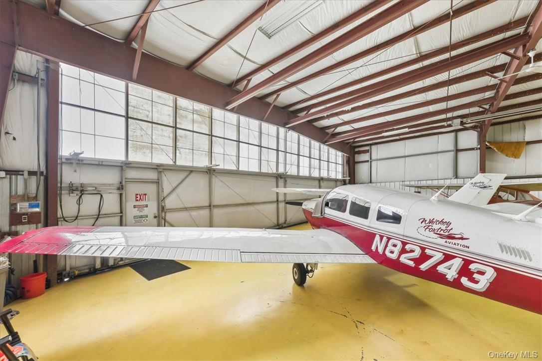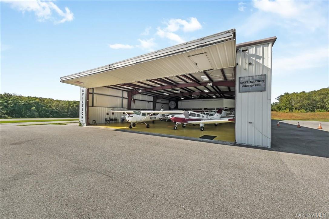 In the booming Hudson Valley at Sky Acres Airport (44N) is this rare aviation related opportunity in a fantastic setting. 14, 046 SF commercial space with two clear span hangars with space for 8 airplanes and other equipment. The second building, built in 2014, is a steel skinned advanced framing technique hangar with 1, 632 SF on one level. The paved parking lot has 25 spots. This all sits on 24+ acres of level and partially cleared land abutting the north end of the runway, with direct access to the taxiway from the hangars. Plenty of room to grow, with most of the land yet to be developed. Development potential of office, trade shop, light manufacturing, aviation schools and flight instruction, warehouse and a host of additional airport related uses. Access from a gated private road on the property, adjacent to Sky Acres airport, a full service airport with fueling station, terminal and restaurant, and approximately 40 miles to Stewart International Airport.