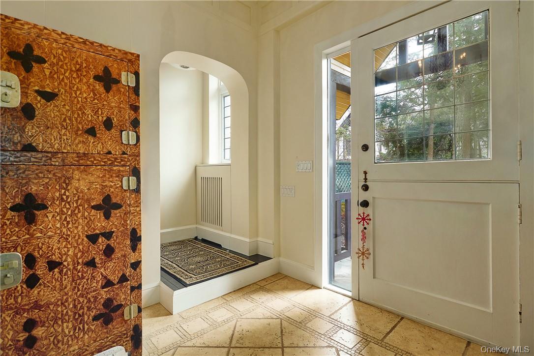 A modern renovated, historic 4-bedroom Tudor cottage within the gated Village of Tuxedo Park NY. The home is set on an oversized level yard with mature trees, picturesque boulders, bushes, plantings and 2023 refreshed classic French garden with plantings and a tiered fountain at the entrance of the home. The home offers over 2, 600 sq. ft. in a bucolic park-like setting, set back from the road. Inside the home, you find 11ft ceilings on the first floor, countless original architectural details, including hardware, doors and windows. The open floor plan includes a spacious living room with very large windows that allow so much light, and a wood burning fireplace, a casual dining area, and a chef's kitchen. Side doors leading to two beautiful entertaining patios and a side lawn. The primary bedroom has an en suite bathroom and four closets. Two additional bedrooms share a hall bath. There are ample closets and storage and laundry room on second floor. A fourth bedroom on third floor has its foyer and full bathroom. Central Air Conditioning throughout second floor. Full unfinished basement and a walk-in attic allows for ample storage. Driveway able to hold 4+ cars. ***Available for sale or rent. Please inquire. ***