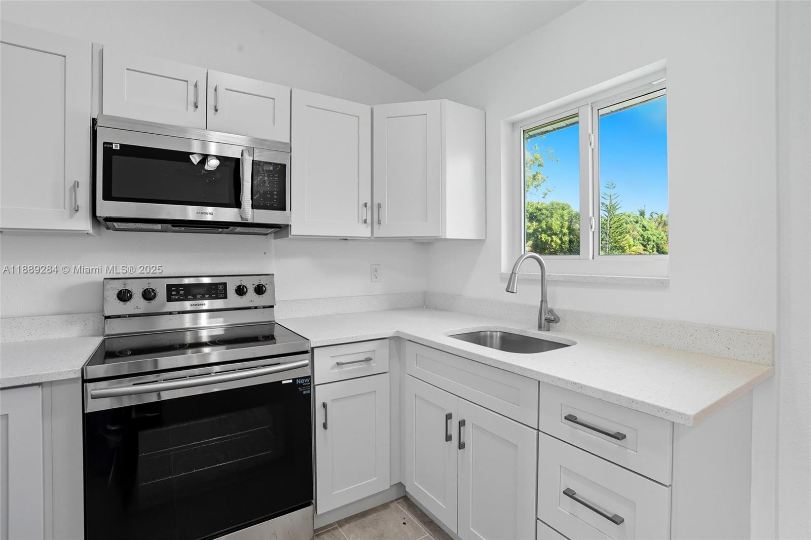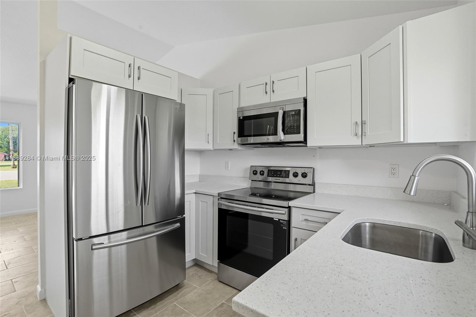 Inside, you’ll find a bright and open layout with modern updates throughout. The kitchen is complete with sleek stainless steel appliances, crisp white cabinetry, and ample counter space, making it both functional and stylish. Neutral tile flooring flows seamlessly through the living areas, creating a clean and inviting feel. Enjoy the quiet surroundings while being just minutes from shopping, dining, and schools. With its fresh updates and convenient location, this home is move-in ready, offering the perfect blend of comfort and practicality.