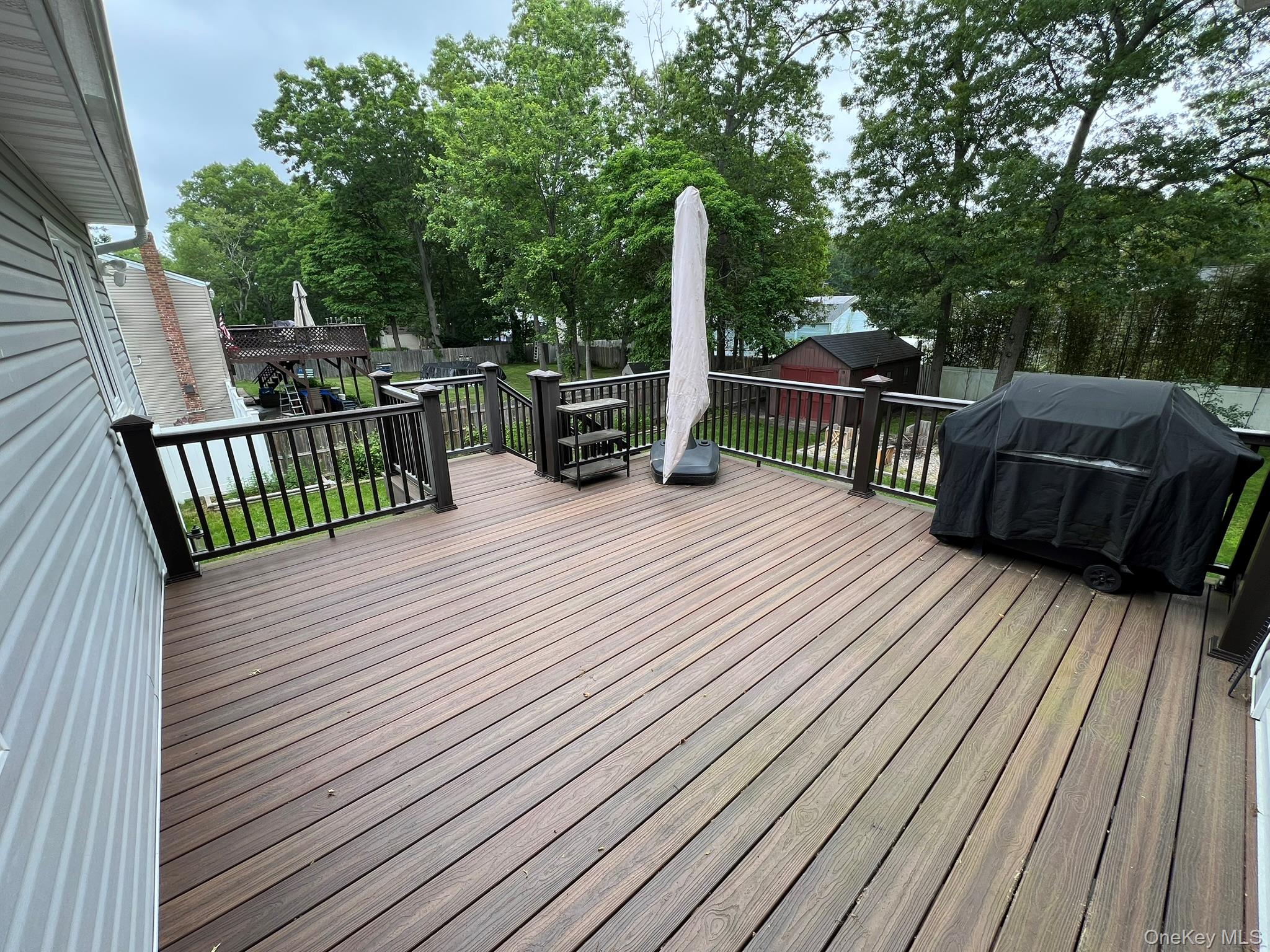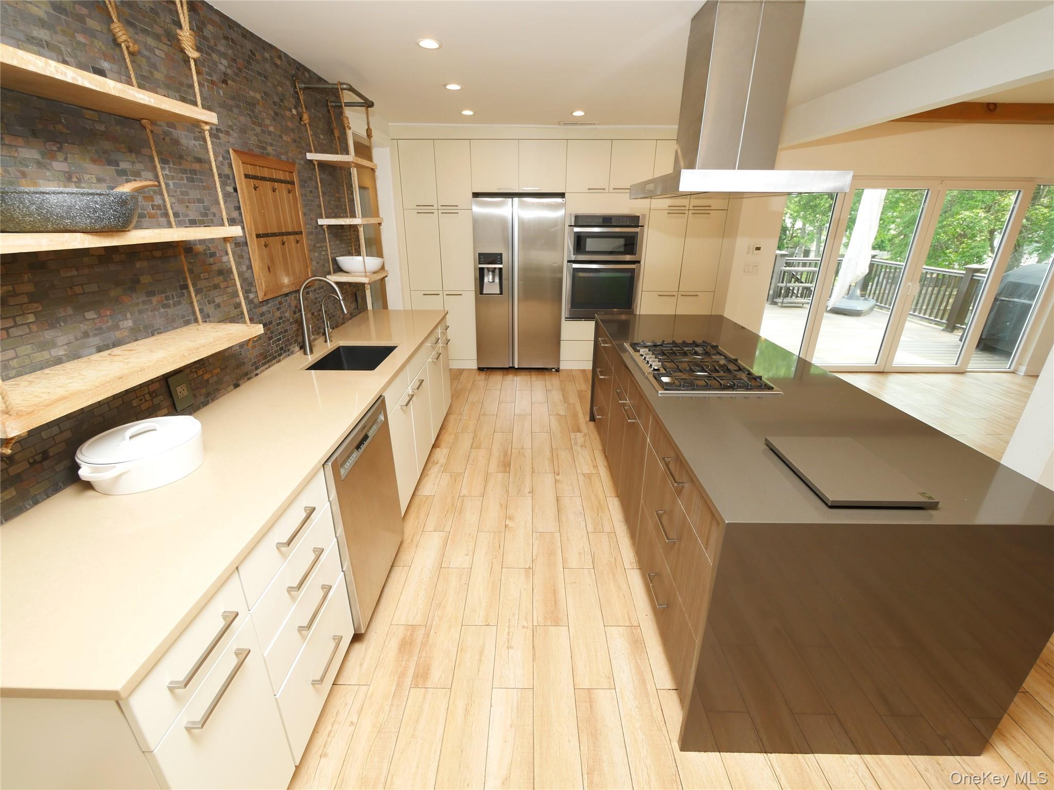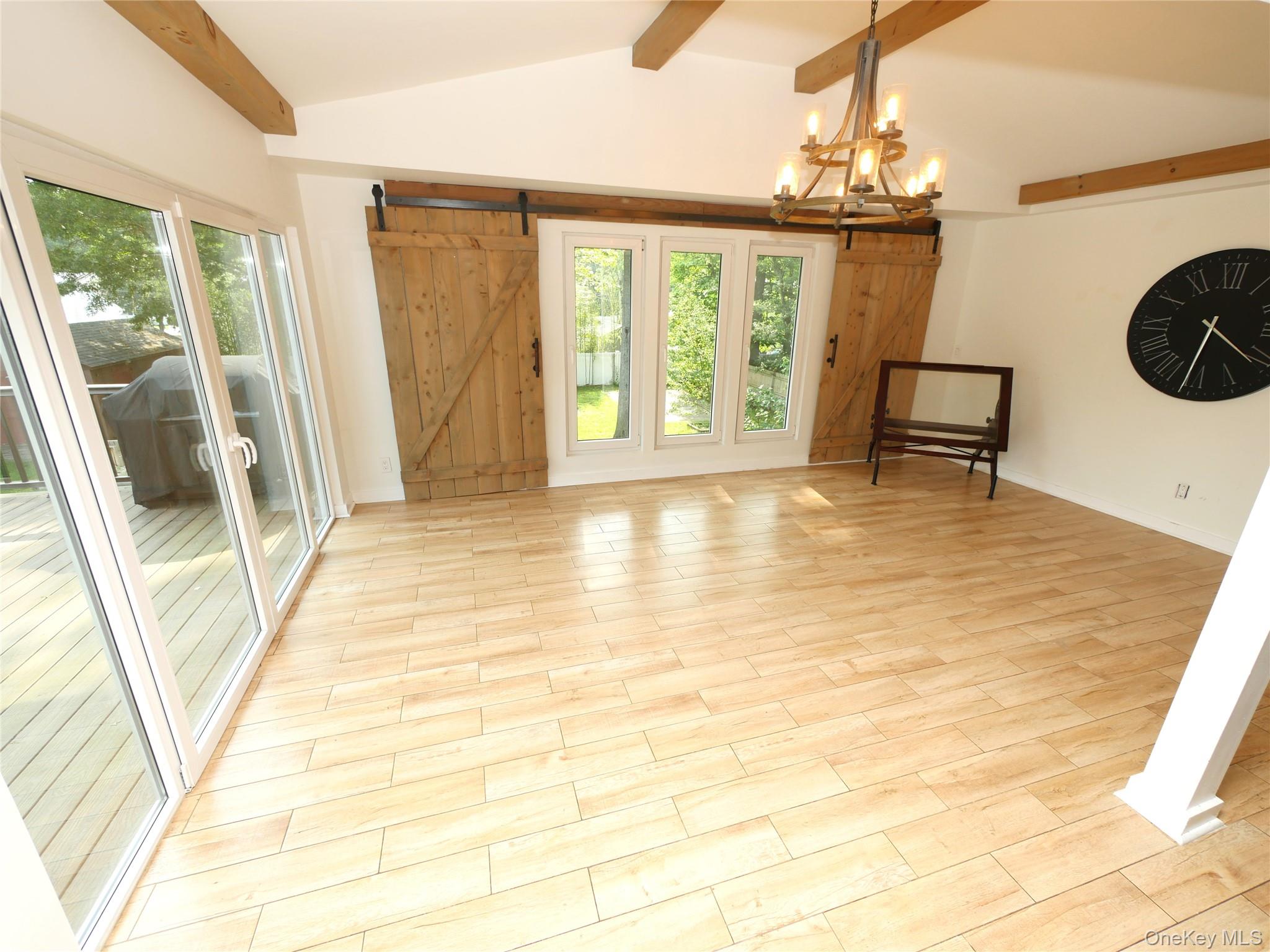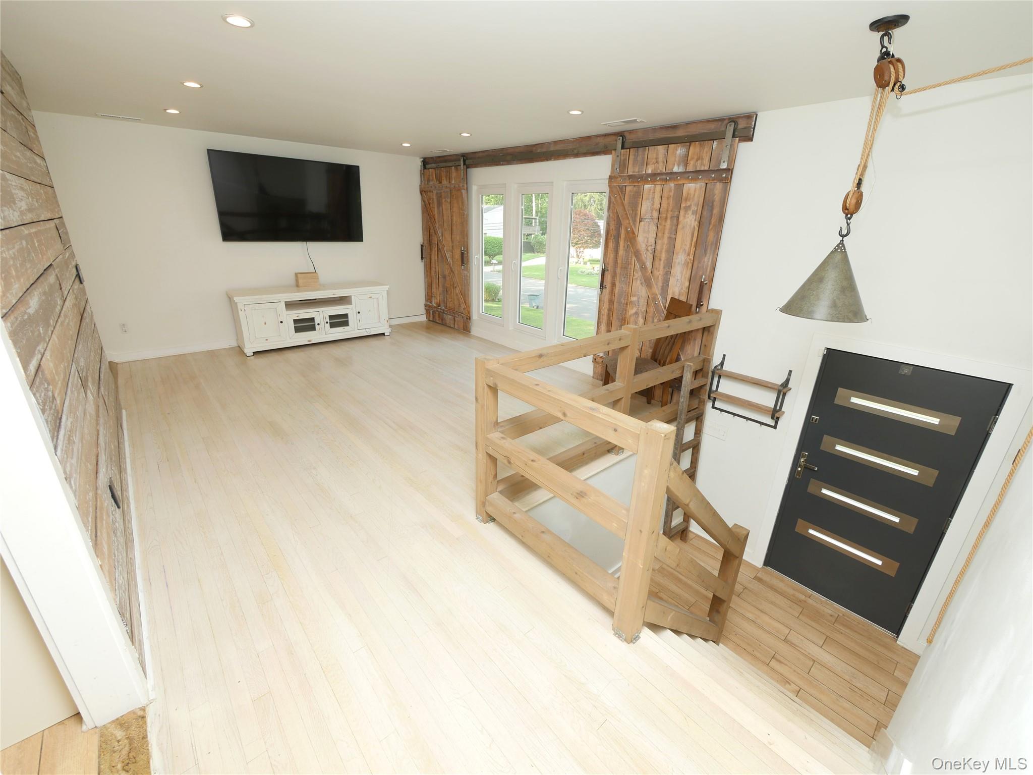 Welcome to this extraordinary Expanded Hi-Ranch, offering over 2, 700 square feet of thoughtfully designed living space. This home features 10 generously sized Rooms, offers 5 Bedrooms and 3 Full Bathrooms. The home's layout is ideal for multi-generational living or accommodating guests, with a design that maintains privacy and comfort. Whether you're seeking additional income potential with proper permits, or a private space for your loved ones, this setup caters to a variety of needs. At the heart of the home is the expanded Eat-in Kitchen, a true chef's and entertainer's dream. Soaring ceilings and oversized windows flood the kitchen space with natural light, highlighting the custom barn door and center island with additional seating. The Kitchen is adorned with gorgeous quartz countertops, abundant cabinetry, a gas cooktop, and sleek stainless-steel appliances, combining functionality with modern elegance. The ground level of this expansive home offers exceptional flexibility, featuring two distinct living areas designed to accommodate various lifestyle needs. On one side, discover a comfortable bedroom, a spacious Den, a fully equipped Summer Kitchen, and a Full Bathroom complete with a stackable washer and dryer, an independent exterior entrance ensures privacy. Continuing downstairs, you'll find a second laundry area and a versatile room that can serve as a 5th Bedroom, Media Room, or Home Office. This space boasts an oversized closet and an impressive Full Bathroom featuring a dual vanity and a luxurious walk-in shower adorned with cultured stone. Other features include gas heating with an updated Bosch heating system offering on demand hot water, Trane central air system, energy efficient solar panels (NOT LEASED), updated premium windows, 200 amp electric, recessed lighting, radiant heat in select rooms. Exterior features include an attached deck adjacent to the Kitchen with composite decking, sprinklers, a bluestone patio, firepit, shed, outdoor lighting, fully fenced yard. This home exudes timeless charm, seamlessly blending rustic farmhouse elements with contemporary finishes to create a warm and inviting atmosphere.