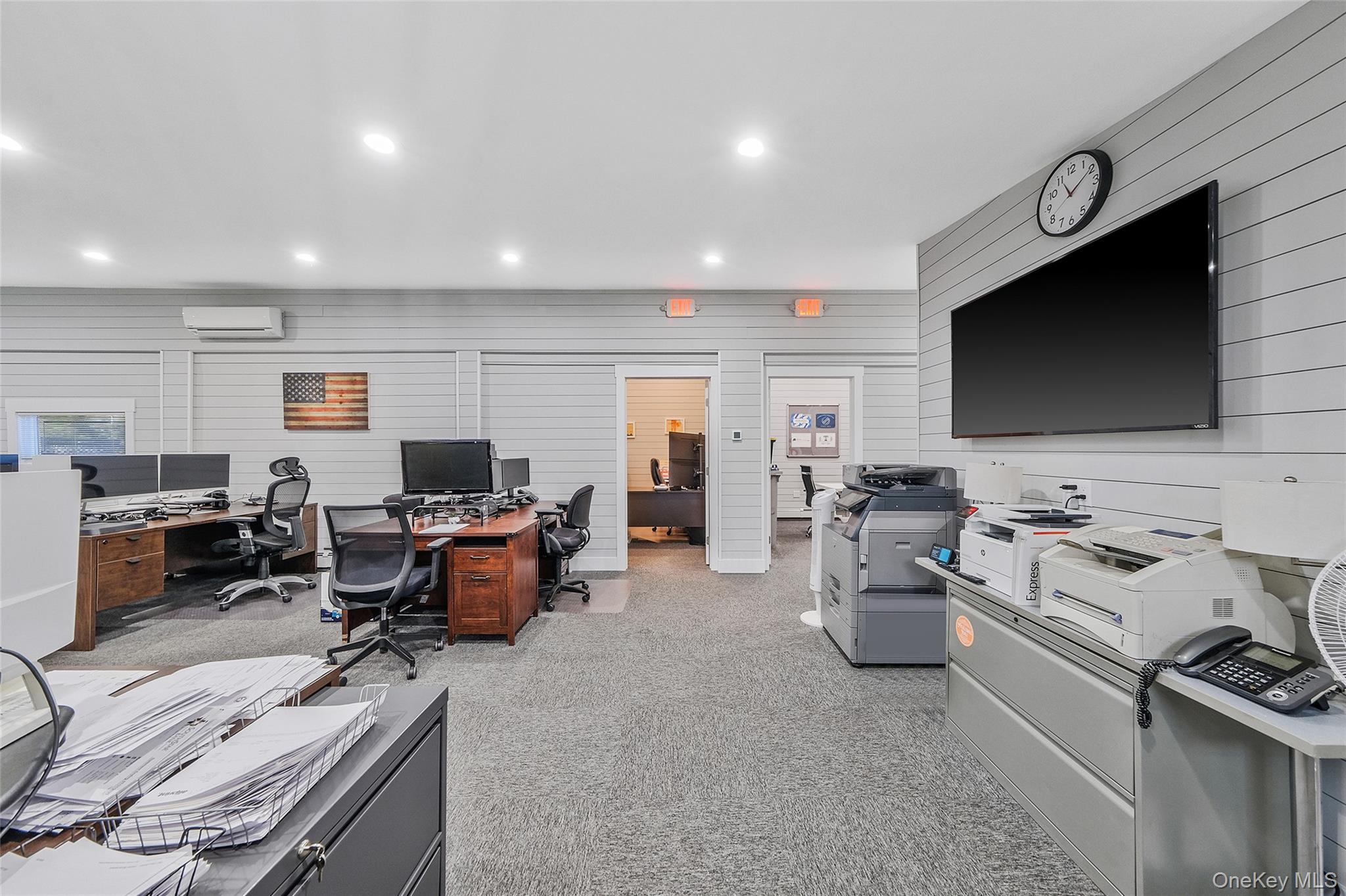 Perfect opportunity for a business that needs a warehouse/storage. 3-12 Ft. Garage doors for warehouse, 2 half bths, Kitchen, Lg work area for employees/desk, Office for the Boss, conference rooms, Utilities, The property was totally renovated in 2024. Updates include 5 Attic fans, 3 Ductless Ac Unites, Propane Heat w/ Navin System, 3 Zone Sprinkler system, roof, gutters, windows, bths, Kitchen, floors, walls, doors. Two driveways one for the office and one Shared driveway for for the warehouse.