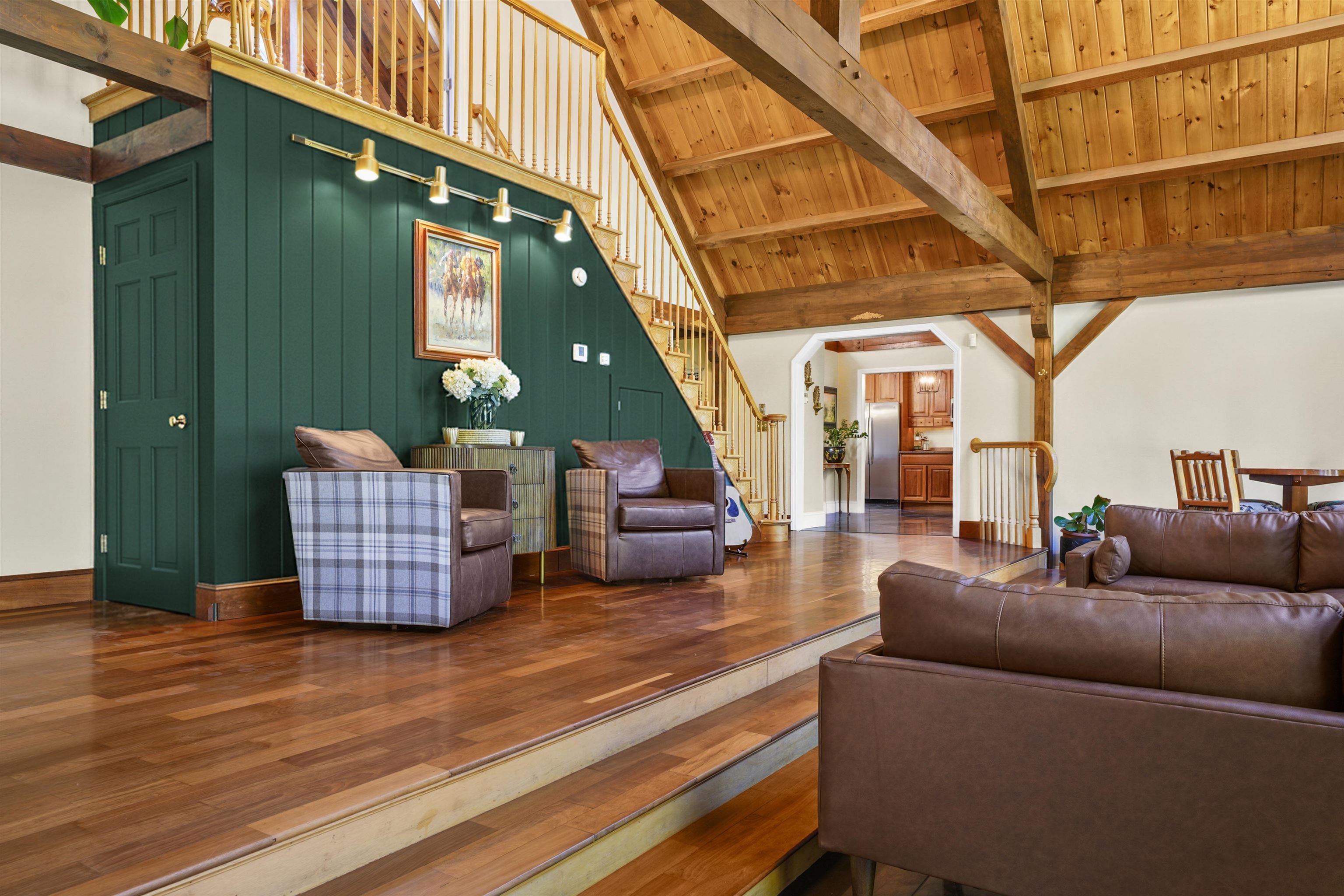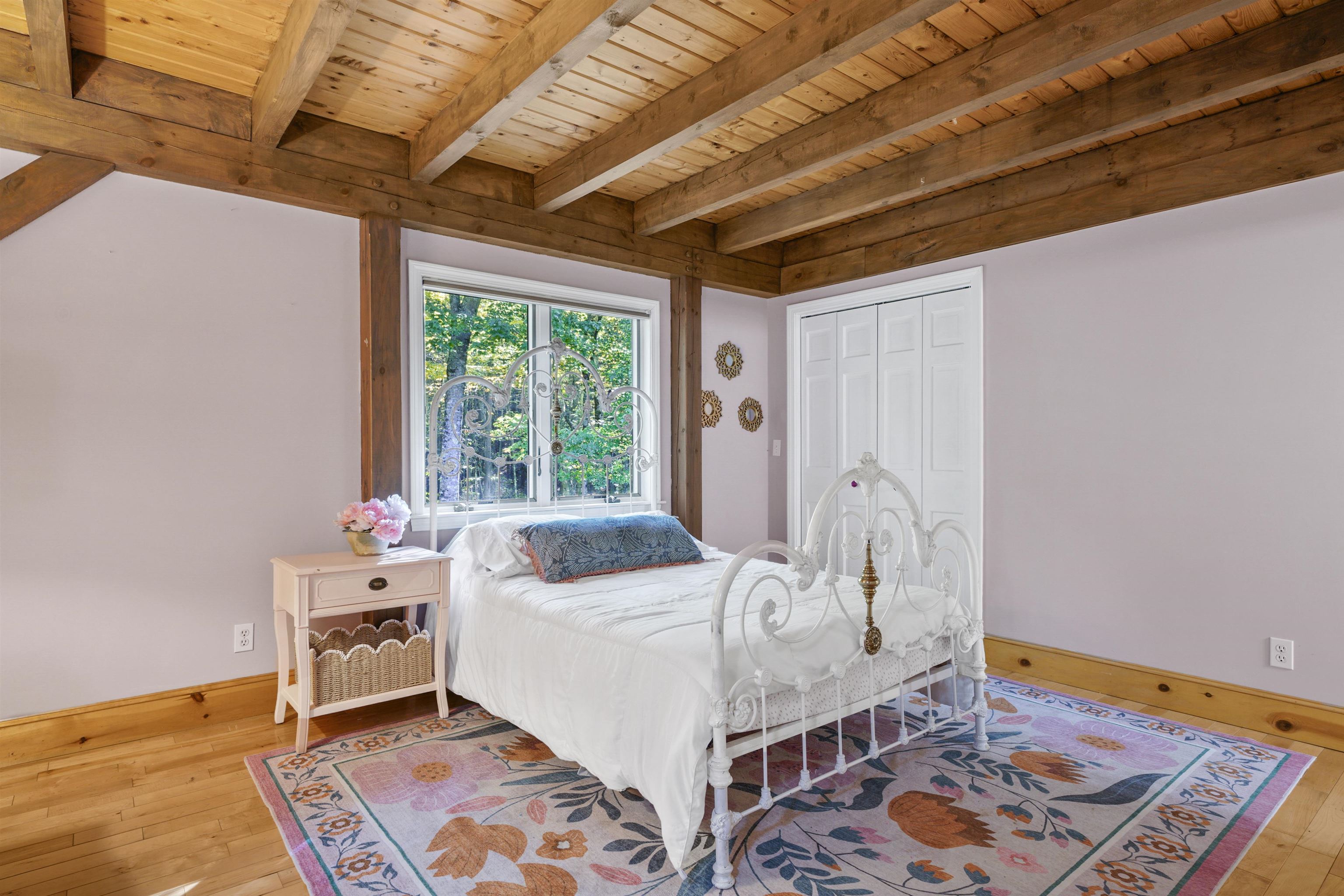 Nestled in the picturesque & historic town of Newfields- this exceptional custom post-and-beam contemporary offers the perfect blend of modern comfort, timeless craftsmanship, & serene natural surroundings. Set privately above the road on 8 wooded acres, w/a winding driveway ensuring complete seclusion, property abuts 43 acres of Nature Conservancy land -a sanctuary of abundant wildlife & unspoiled beauty. Step inside & experience unmatched quality of this thoughtfully designed 3/4 bedroom home. Geothermal heating & cooling systems, complemented by FHA & striking black granite wood-burning fireplace. 3 bedrooms, 3. 5 bathrooms, a sun-filled Great Room w/cathedral ceilings & stone fireplace. Kitchen offers custom cherry cabinetry, granite counters, cathedral ceiling, eat-in area open to formal dining room. Primary Suite features deep soaking tub, bidet, large walk-in cedar closet. 2 more Bedrooms-each w/access full bathroom. 2nd floor offers a room perfect for office, den, or studio. Floors of black granite, Carrera marble, Brazilian cherry, & maple hardwoods. Walk-out basement w/ wine room, secure vault storage room w/poured concrete ceiling. 2-car garage. New oversized back deck. Exterior showcases all Red Cedar siding & trim, dramatic 6” full-bed granite stone façade accenting central great room. Inside, soaring cathedral ceilings, expansive windows, &carefully curated finishes create a bright & welcoming atmosphere. See List