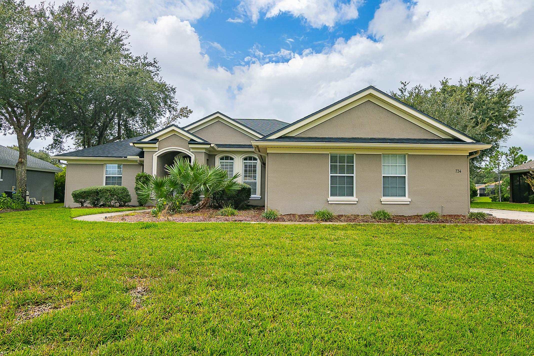 New Roof! New Laminate flooring throughout! Freshly painted interior! This home also features a new stove, Refrigerator, Dishwasher, Kitchen sink and new Granite countertops in the kitchen. This is a must see! Beautiful well maintained 3 Bedroom 3 bathroom home with an office/den providing serene views of the lake from most rooms and the spacious new screened in back porch. This concrete block stucco home is located within the quiet sought after gated community of Sea Pines offering a community pool, park, picnic area, and within a 5 minute drive to the white sand beaches of St. Augustine. Exterior painted in 2021. Inside, you have an open floor plan, tall ceilings, spotless 3 car side load Garage with a freshly finished floor. AC and Hot water tank replaced in 2022. New well pump. This house is move in ready with no deferred maintenance. You will want to put it on top of your list to see.