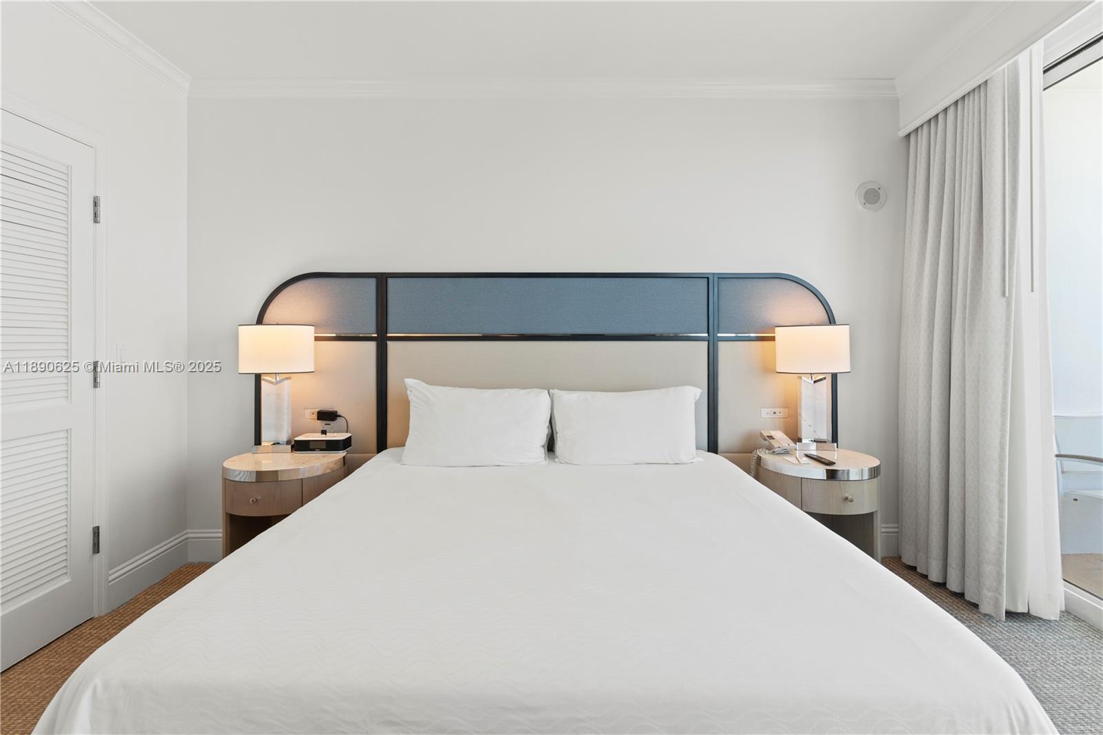 Live the resort lifestyle at the iconic Fontainebleau II (Tresor). This high-floor 1BD/2BA turnkey residence frames direct views of the turquoise ocean, intracoastal, & hotel pool grounds from every room & 2 private balconies. Coastal design features an open living area, full kitchen, king bedroom, sleeper sofa, & 2 private owners closets to secure your belongings if you choose to use the hotel rental program while away. Enjoy world-class amenities—pools, cabanas, beach service, Lapis Spa, fitness center, LIV nightclub, award-winning dining, shops, concierge. Maintenance includes everything: AC, electricity, cable/internet, valet & free daily owner-lounge breakfast. Place in hotel rental program for effortless income. Why pay to stay at Fontainebleau when you can get paid to own there!?