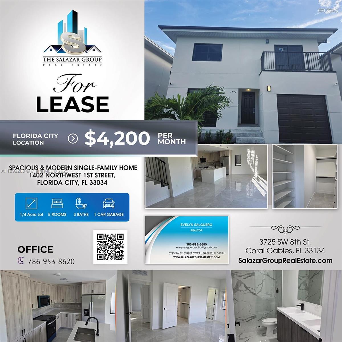 Luxurious Brand new full concrete home perfect for a family to enjoy and live safely with brand new stainless steel appliances, impact windows and impact doors, California style closets, quartz bathroom and kitchen counter tops, double sink bathrooms, Island style kitchen, Tesla charger, cameras and security system already installed, large garage, 5bedroom and 3 full bathroom (independent door in 1st floor bedroom). Beautiful balcony to sip your morning coffee from, fenced patio, washer/dryer (laundry room) and paved driveway. Lot's of parking space, near the Turnpike. Be the first to live in this beautiful GEM (price negotiable) won't last! Also Section 8 APPROVED! CALL LISTING AGENT NOW!