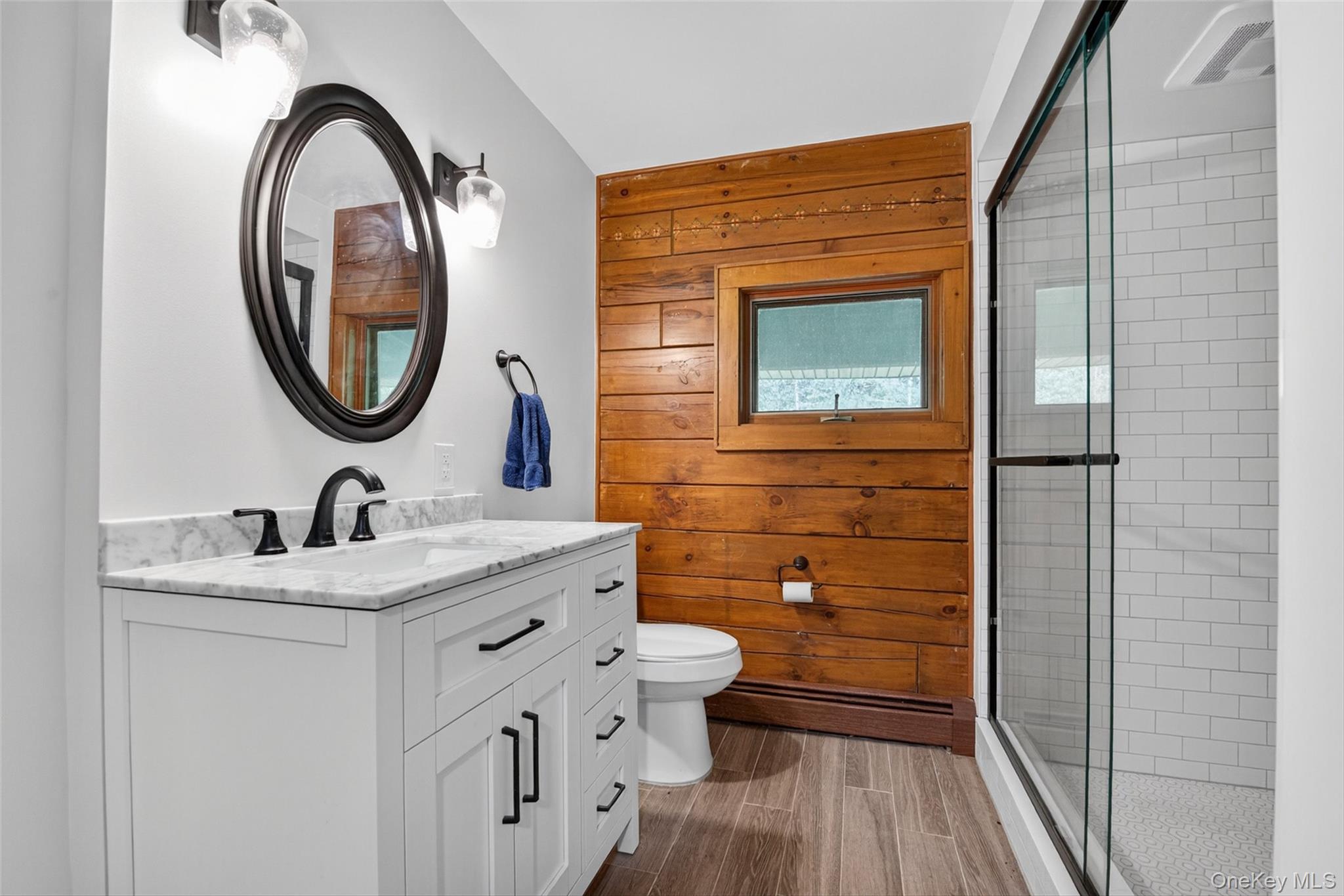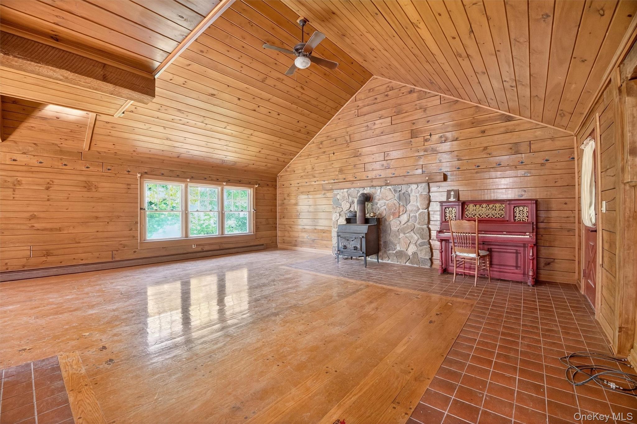 Welcome to your peaceful getaway at the foot of the beautiful Shawangunk Mountains! This charming log home sits on 2. 2 acres and features a stocked pond where you will find largemouth bass, sunny's, bluegill fish and carp fed by a cool, natural spring. Pack your fishing rod! Tucked away on a private road, the home offers 1, 968 sq ft of cozy, rustic living space with soaring ceilings in the living and dining areas that make everything open and airy. The living room has a large woodstove, warm wood floors, and fun stenciled details that give it plenty of personality. You'll also find some unique vintage touches—like a hidden pull-out ironing board and stained glass window in the hallway. Both main level bedrooms have brand-new flooring, both bathrooms have been updated with new vanities and flooring, and the downstairs bath is equipped with a walk-in shower. Enjoy quiet mornings or relaxing evenings on one of the two covered porches. The front walkway and steps were recently redone, and there's a two-car garage under the house with direct access to the basement. If you're dreaming of a log home retreat, this could be the one! Additionally there exists the opportunity to turn this property into an oasis! This is country living located within the Pine Bush School District.