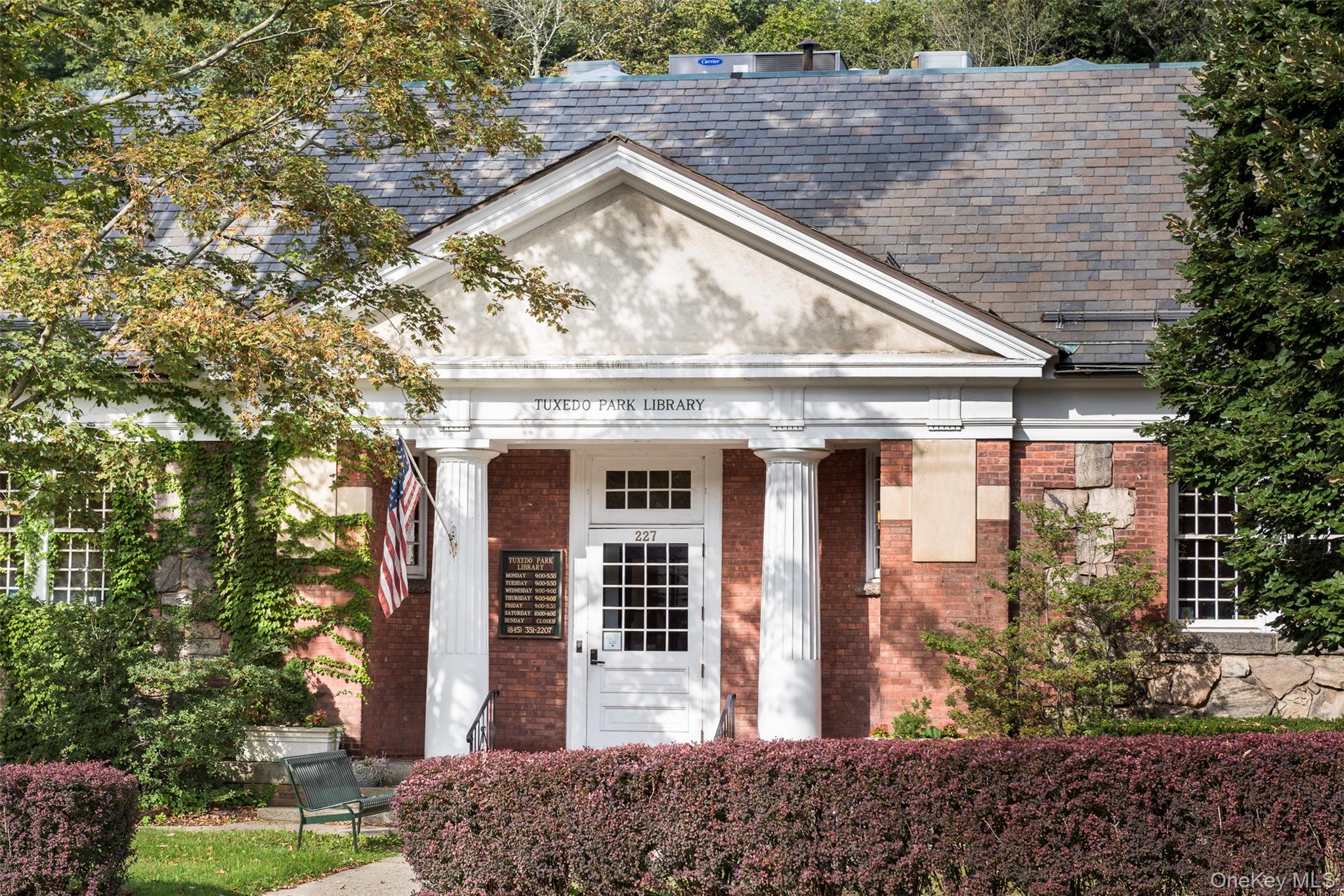 An architectural tour-de-force with commanding siting, the former Herbert C. Pell residence stands among the most distinguished homes in Tuxedo Park - one of few positioned at high elevation with panoramic lake and mountain views to the South, East, and West. Designed in the late 1890s by architect William A. Bates, this masterpiece rises from a monolithic, native stone foundation, its structure appearing to emerge naturally from the hillside as a testament to engineering and artistry. Finely laid brick and hand-crafted millwork form an exterior of remarkable beauty and enduring craftsmanship. The facade’s Neoclassical, Georgian, Queene Anne and Greek Revival details along with the Dutch-gambrel rooflines, create a residence of timeless appeal in the classic Tuxedo Park vernacular. Inside, the home is balanced between grandeur and comfort, making it as ideal for entertaining on a grand scale as it is for refined daily living. A formal entry and sweeping staircase introduce high-ceilinged rooms filled with natural light and long views over Tuxedo Lake. A columned octagonal living room with intricate millwork and large windows anchor the formal spaces, while the restored oak-paneled dining room features a wood-burning fireplace and generous scale for gatherings both intimate and large. Both rooms open to an elevated, covered porch that extends the living area outside to embrace breathtaking vistas with Tuxedo Lake shimmering below, under sunrise and sunset. Throughout the home, six distinctive fireplaces punctuate the interiors with warmth and architectural interest. Rounding out the main level are the kitchen and the richly appointed library with bar shelving, built-in book shelving, and oversized windows. The second floor offers five spacious bedrooms, some with striking lake or mountain views, fireplaces and en-suite baths. The primary suite offers exceptional views, fireplace, dressing room, walk-in-closet and ensuite bath. The partially renovated top floor invites customization as studios, playroom, exercise rooms, or guest suite, here also with outstanding scenic views. A walk-out lower level enhances versatility with a private office, summer kitchen, recreation room, full bath, three-season porch, and a climate-controlled wine room. Set on approximately 1. 5 acres, the property features terraced lawns, and stone garden pathways. Mature trees, native plantings, and the elevated topography ensure privacy and scenic beauty in every season. Perfectly situated in the heart of historic, 24-hour-guarded Tuxedo Park - just about one hour from New York City - this landmark residence embodies the community’s architectural legacy and lakeside lifestyle, offering a rare combination of premium location, architectural provenance and comfortable, inspired living.