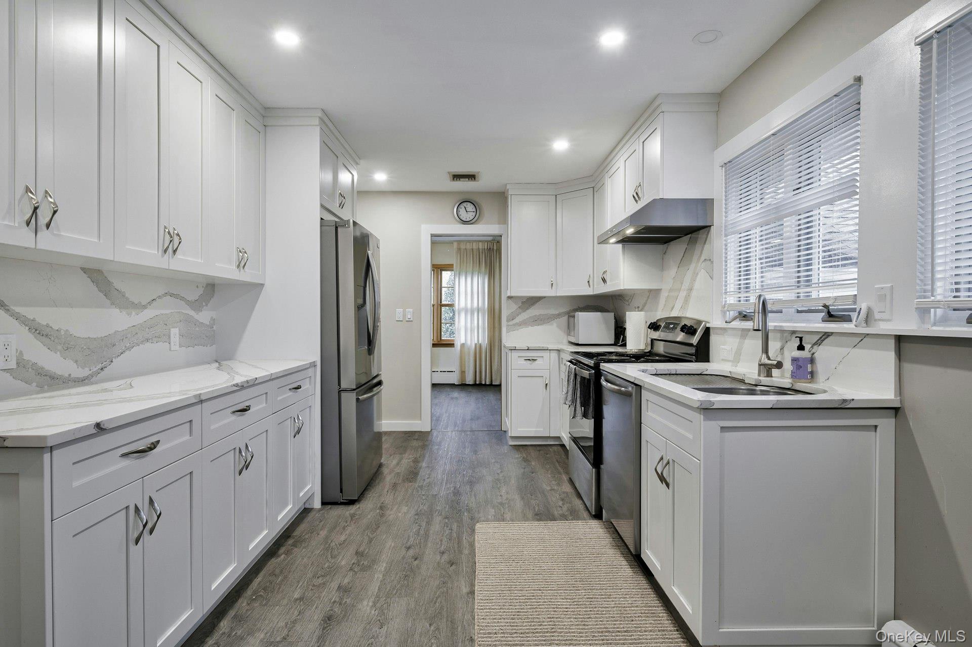Welcome to this exceptional home perfectly situated on 160 x 120 property in the heart of picturesque Nassau Shores! Just moments from a scenic public golf course and a bay front park. This property offers the perfect blend of comfort, space and location. Inside you'll find a bright layout ideal for both relaxation and entertaining. The first floor provides an inviting living room with a wood burning fireplace and dining room ready for its next guests. The updated eat-in kitchen (2022) includes access to full partially finished spacious basement and has plenty of storage. Adjoining the kitchen, is a convenient mudroom with backyard access that has a washer, dryer and full bath. Three bedrooms, a second full bath with double hallway closets for storage. Second floor provides three additional bedrooms and one full bath which has dual access from the hallway and the center bedroom. Attic access and cedar closet accessible from an upstairs bedroom. Double car garage with pull down attic storage. The backyard is stunning with mature trees perfect for a restful retreat or gathering. This home includes Central A/C, IGS, updated 200-amp electric (2025) and an automatic transfer of power 10kw Generac generator. This is a must see and is a rare find.