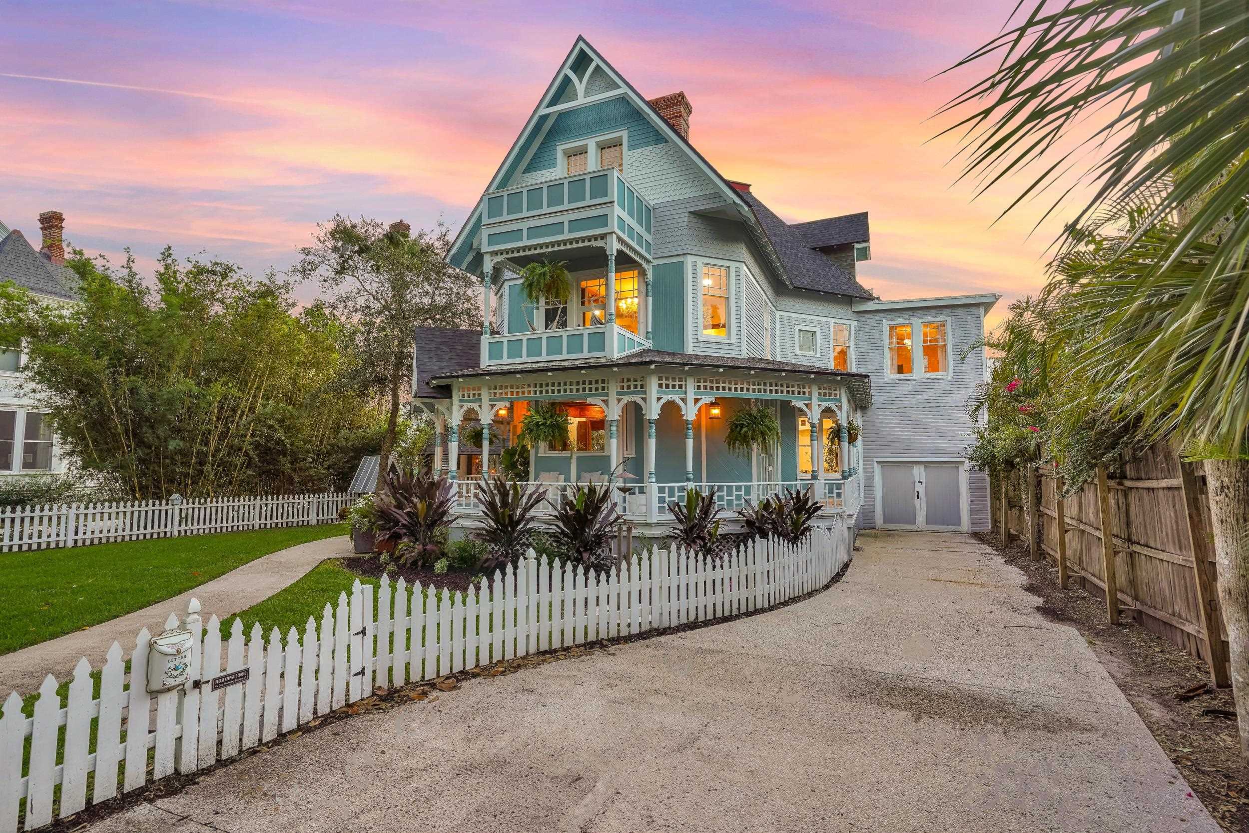 Step into the enchanting embrace of the notable Upham Winter Cottage, a captivating Queen Anne Victorian nestled on a quarter-acre lot within the heart of St. Augustine's cherished historic preservation district and listed on the National Register of Historic Places. This world-class historic mansion has recently been renovated from top to bottom to perfection with soft coastal hues in mind ~ enjoy the well-designed balance of rich historic beauty and modern luxury. With 5800 sq ft of living space, 5 bedrooms and 3. 5 bathrooms in the main house and a 2 bedroom, 1 bath apartment with private entrance, a full kitchen, living and dining rooms - this home is ideal for multigenerational living or additional income. Located on historic St. George Street, the shops, restaurants, landmarks and culture of the Nation's Oldest City are only steps away. The highly active community association provides additional opportunities to socialize and enjoy the buzz of downtown living. Built in 1893 as a winter retreat for John J. Upham, a veteran of the Civil War and Plains Indian War, this remarkable home showcases the graceful blend of Queen Anne Victorian architecture with examples of Moorish Revival in the courtyard arches. With stunning original millwork, wood floors and unique octagonal shape, this home will take you back to the splendor of the Gilded Age. From joyous Flagler Era galas to legendary Mardi Gras celebrations, The Upham Winter Cottage has been a witness to countless extraordinary events throughout the ages. Today, as you step foot within these storied walls, you become a part of the Upham Winter Cottage's narrative and assume the role of its guardian, preserving the heritage of the past while crafting a new chapter in its history. Nothing compares.