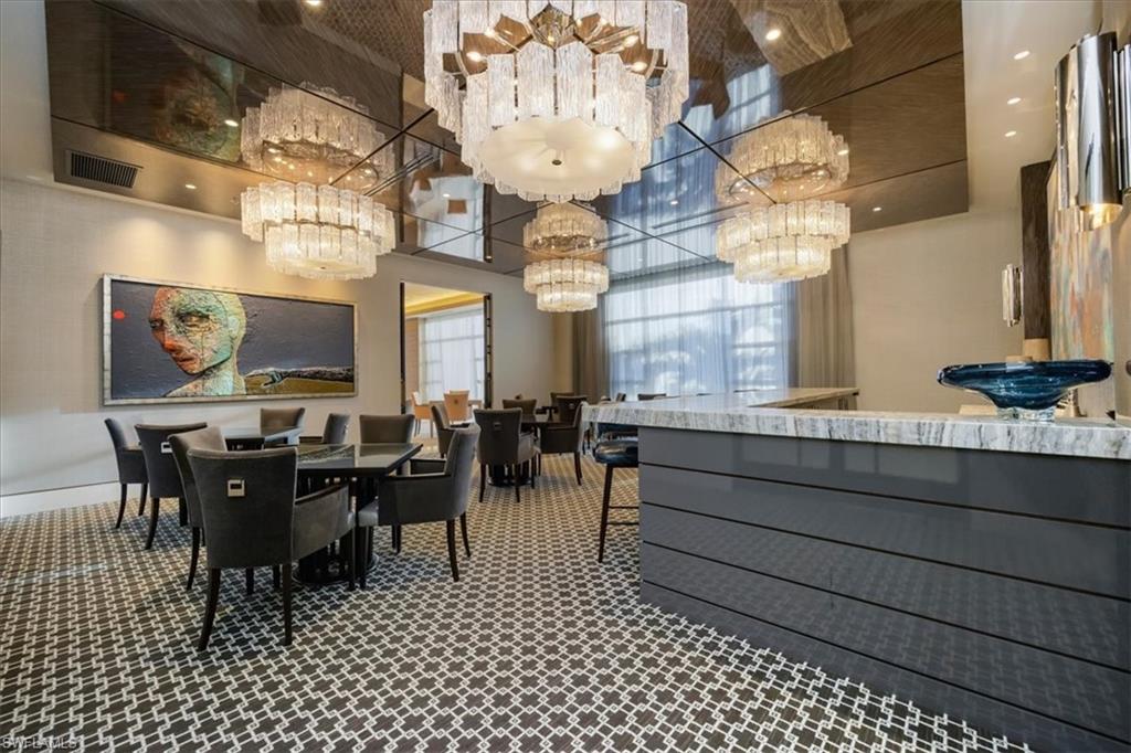 Welcome to 1701 Mystique, the crown jewel of Naples’ most prestigious high-rise, where custom craftsmanship and coastal sophistication meet on a grand scale. More than 5, 500 square feet of reimagined living space capture sweeping views of the Gulf through floor-to-ceiling windows that flood the home with natural light. One of Naples’ rare condos offering a private three-car garage plus an additional deeded space — four coveted parking spots in total. Every element has been thoughtfully curated—from Legno Bastone flooring and Venetian plaster ceilings to bespoke millwork and hidden cabinetry that add architectural refinement throughout. The great room is anchored by a dramatic stone and hammered-metal fireplace wall and complemented by a dedicated wet-bar, lounge, and 392-bottle temperature-controlled wine room—an ideal setting for both entertaining and everyday living. The gourmet kitchen features Wolf and Sub-Zero appliances, gas cooking, quartz countertops, and a striking Black Panther Leather stone buffet that blends artistry and performance. A spacious lanai with hurricane shutters includes a lounge area, dining space, and built-in grill, seamlessly extending the kitchen and great room for effortless indoor-outdoor living. The primary suite is a serene retreat with breathtaking beach vistas, a spa-inspired bath, and custom-designed closets for both beauty and function. One of the four additional bedrooms serves as a private office with 180-degree golf course views, and a hidden closet concealed behind a wall of built-in cabinetry. Smart-home comforts include remote-controlled drapes and blackout blinds in all bedrooms, dual dryers, and private elevator access. Mystique offers a lifestyle beyond compare with 24-hour concierge and staff, a resort-style pool, private spa suites, theater, fitness and wellness center, billiards and social rooms, guest suites, and tennis courts—all within Pelican Bay’s exclusive beachfront community, featuring two private beachfront restaurants and proximity to Naples’ finest shopping, dining, and cultural destinations. This is more than a home—it is a statement of design, exclusivity, and modern coastal living at its highest level.