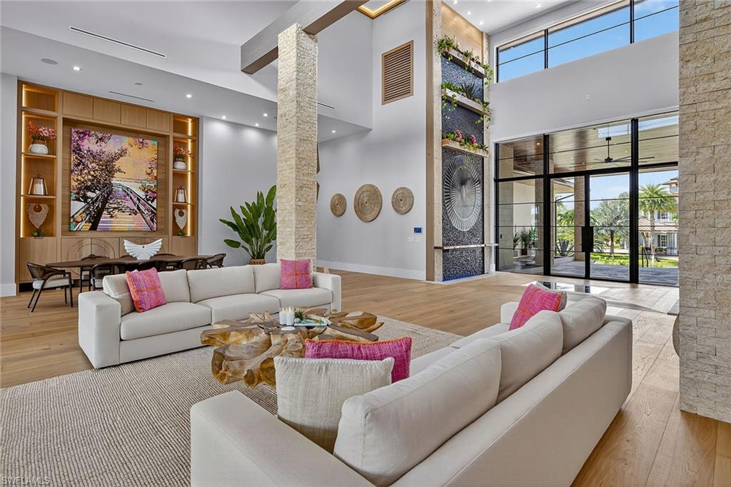 Welcome home to Keola, your luxury resort home. Discover this unparalleled residential masterpiece in the prestigious Estates of Marco Island! A newly unveiled gem in the sought-after Luxury Resort Home Collection by Paradise Design Build. This rare fusion of architectural brilliance and resort-style indulgence is conceived by the finest visionaries in high-end home design. Every detail of this six-bedroom, 7. 5-bath sanctuary exudes sophistication, including the state-of-the-art dedicated spa and fitness suite. Like all high-end resorts, Keola has a dedicated luxury spa wing complete with a yoga studio, cold plunge, steam shower and infrared sauna, a refuge for rejuvenation. Past the grand entrance, you are greeted by soaring 27-foot ceilings and dramatic floor-to-ceiling glass walls that frame breathtaking scenery and an indoor and outdoor water feature. This fully furnished home has been designed with your comfort in mind. Within Keola form meets function, each elegant retreat possesses its own en suite, providing a private haven for escape after a long day. Fashioned for lavish entertaining, the terrace features an expansive covered lanai and outdoor dining area, complete with a fully equipped summer kitchen and opulent bath. Whether hosting a soiree or unwinding in solitude, you're protected by cutting-edge electric screens and storm shutters, ensuring year-round comfort and serenity. Set on an expansive . 59-acre lot with deep water direct boating access, this dwelling vaunts an impressive 167 feet of pristine waterfront, ideally suited to accommodate a yacht. The open-concept layout seamlessly blends indoor and outdoor activities, inviting natural light to dance across exquisite architectural elements. For the automotive enthusiast, dual garages offer an extraordinary capacity for up to eight vehicles, furnishing the ideal space to showcase your prized collection. Built with meticulous attention to detail, this stunning abode showcases extraordinary quality and elevation and incorporates the latest in LEED-certified and ADA-compliant techniques. Advanced insulation reinforced structural design, premium materials, and innovative windows with soaring 12-foot glass door walls enhance aesthetics and energy efficiency. A full-home generator ensures uninterrupted living. Beyond the luxurious confines of your estate, Marco Island offers an array of preeminent amenities. Enjoy award-winning crescent-shaped beaches, explore charming boutiques, waterfront bistros and beachfront restaurants, or dive into the island's rich heritage at the local history museum. For those with an active lifestyle, Marco Island has premier facilities for tennis, pickleball, paddleboarding, kayaking, beach yoga and a prestigious yacht club. Golf fans will appreciate the nearby championship courses, while convenient access to the executive airport makes travel seamless. Experience your own private resort on Marco Island, where every day feels like paradise!