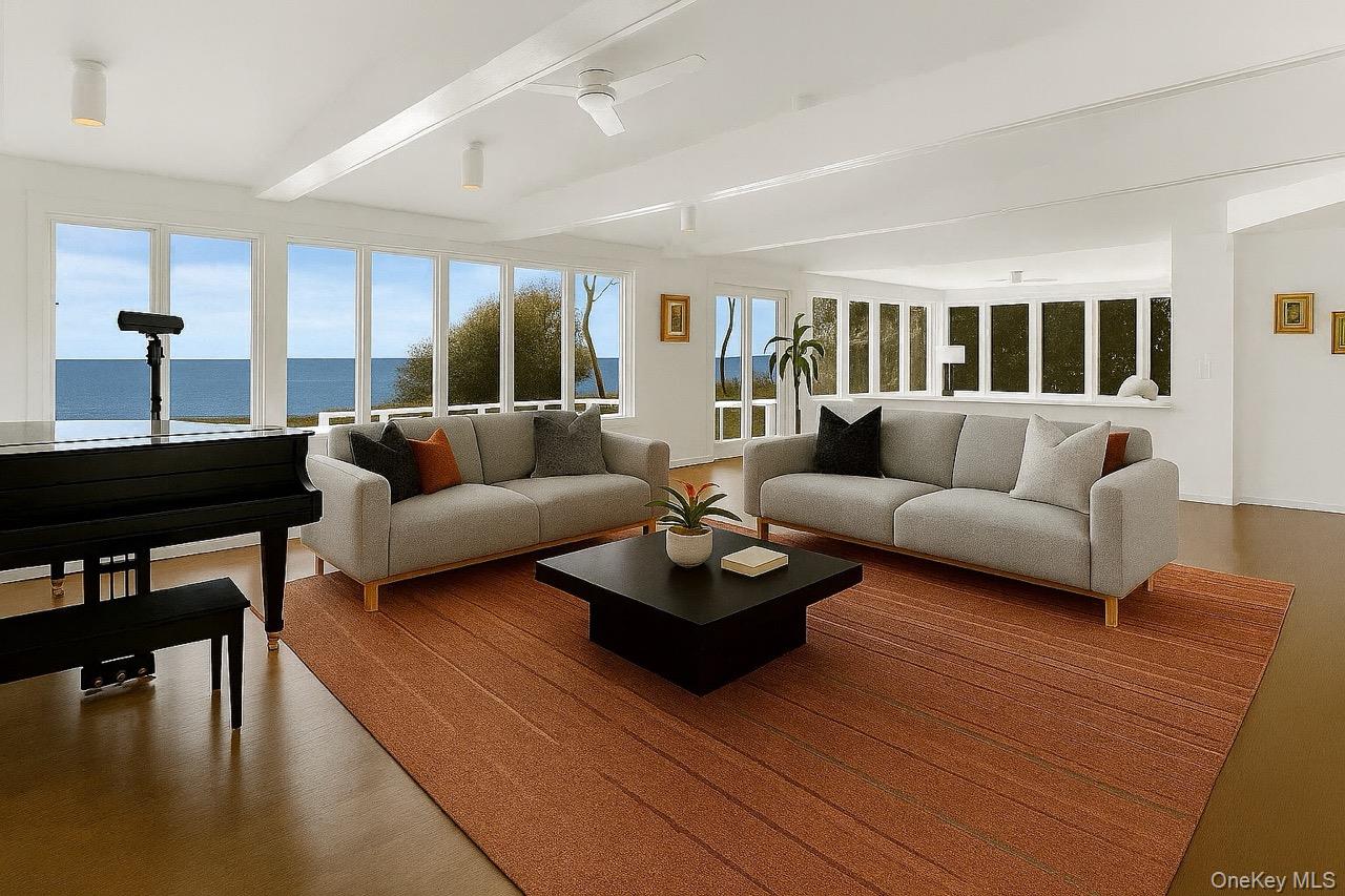 Exceptional Waterfront Retreat – Smart Luxury Meets Modern Comfort. Welcome to this meticulously renovated waterfront home that blends timeless elegance with cutting-edge technology and high-end finishes throughout. Perfectly positioned to capture uninterrupted water views and mesmerizing sunsets, this home offers a front-row seat to nature’s beauty—day after day. Perched high above the water, this stunning residence offers both serenity and sophistication, with every detail thoughtfully curated for modern living. Experience luxury living in this exquisitely renovated waterfront home featuring a gourmet custom kitchen with Thermador & KitchenAid appliances, fully renovated bathrooms with radiant floors, and refinished hardwood floors throughout. Located on over 110 feet of premium waterfront, the property offers panoramic vistas from multiple rooms and outdoor spaces, with expansive TimberTech decks. The outdoor experience is elevated by a hot oil and stone driveway, a motorized awning for BBQ dining, and an Amish-built 12’ x 8’ shed for stylish and practical storage. New cement board siding with Azek trim, a new roof with custom linear soffit vents, and premium Marvin and Andersen windows/sliders ensure long-lasting style and durability. Inside, the home is flooded with natural light and scenic water views. Bonus features include a conditioned 800+ bottle wine cellar, custom closets, whole-house central vacuum, remote- controlled gas fireplace, and solid-core doors with luxury hardware throughout. Enjoy top-tier systems: Bosch high-efficiency boiler, tankless hot water, full PEX plumbing with manifold, Daikin systems, and Generac transfer switch ready for a whole-house generator. Smart features include custom Lutron lighting & shades, Crestron automation and whole-house audio. Everything has been upgraded—new roof, siding, insulation, and more. Included in the sale is the adjoining . 51 acre vacant lot, offering an exceptional opportunity to expand, build, or simply enjoy enhanced privacy and added value. This additional parcel not only increases the overall footprint and investment potential of the property, but also ensures a rare sense of space and seclusion—preserving your personal waterfront retreat from future development and maximizing your enjoyment of the tranquil surroundings. This is more than a home—it’s a fully automated luxury waterfront sanctuary, where every sunset becomes your private masterpiece. Just move in and enjoy the best of smart living, elevated design, and peaceful waterfront beauty.