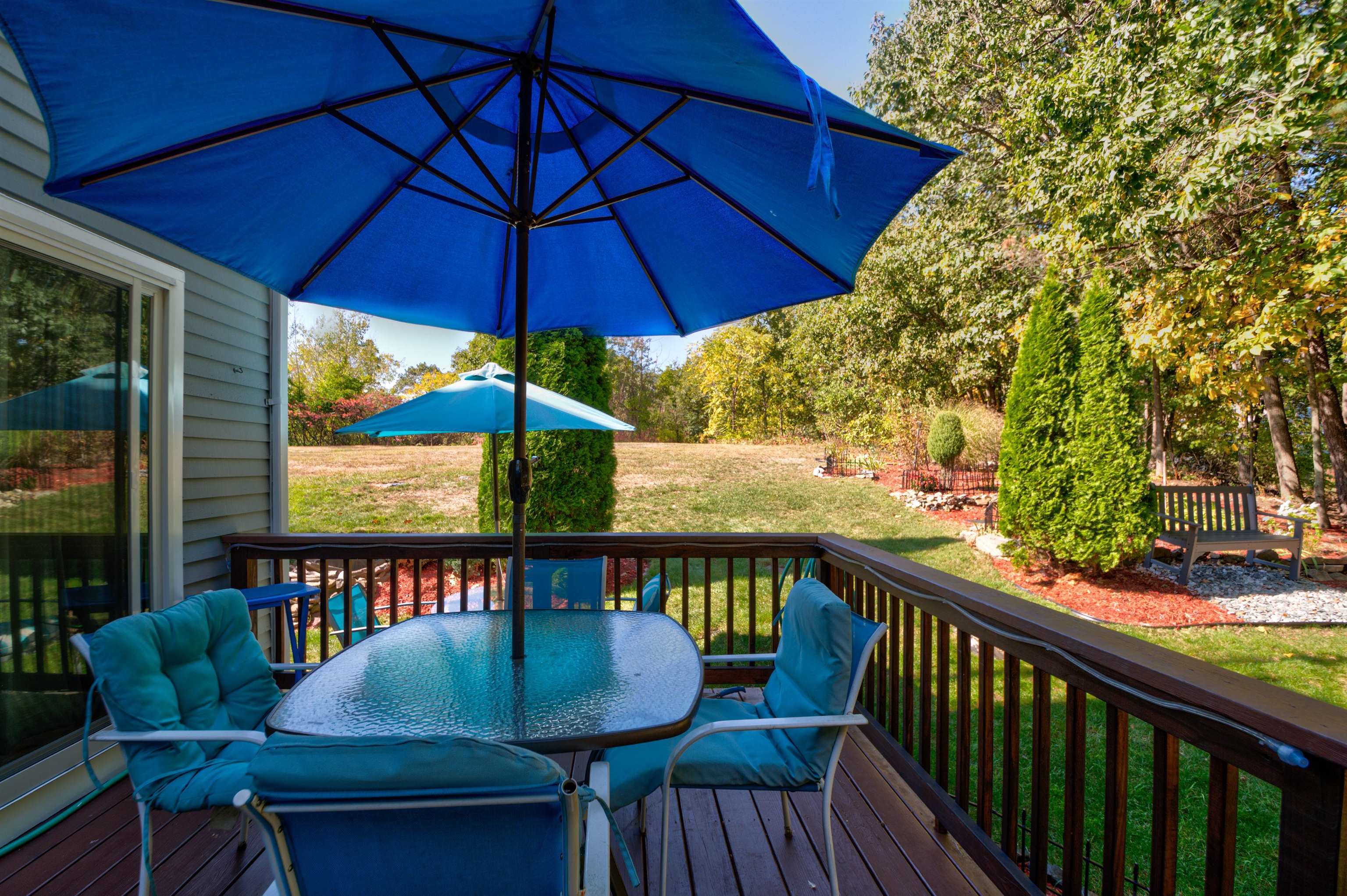 Perfectly positioned just minutes from Route 93 and Tuscan Village, this charming end-unit condo combines comfort, convenience, and contemporary style. Step inside to discover a bright and inviting living room that opens seamlessly to the kitchen and dining area—ideal for everyday living or entertaining guests. The first floor also features an updated half bath with laundry for added functionality. Upstairs, you’ll find two spacious bedrooms filled with natural light and generous closet space. The updated three-quarter bath offers dual access from both the hallway and primary bedroom for added privacy and ease. A walk-up third-floor bonus room provides endless possibilities—home office, guest space, or cozy retreat—while the unfinished basement adds even more storage potential. Outside, a private deck overlooks beautifully landscaped gardens, creating a peaceful setting to relax or enjoy outdoor dining. The single-car garage provides convenient parking and extra storage. Offering an ideal blend of location, livability, and charm, this move-in ready condo truly has it all.
