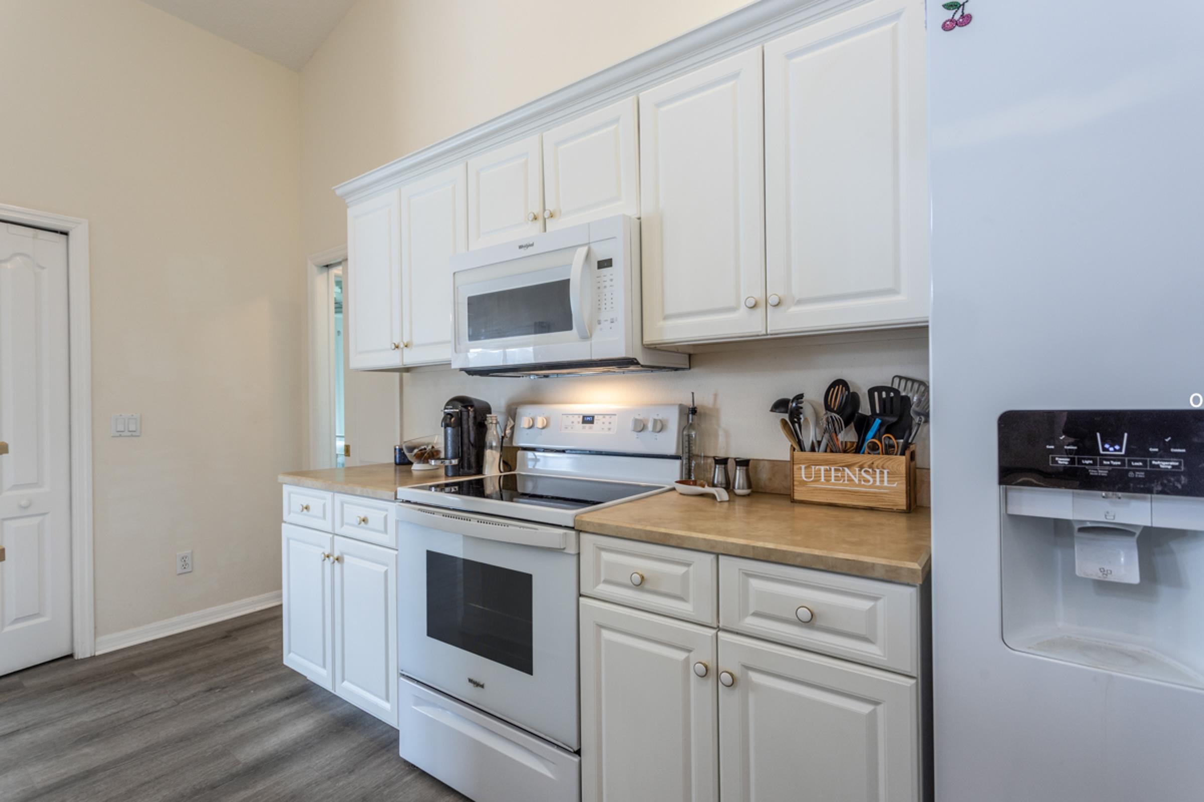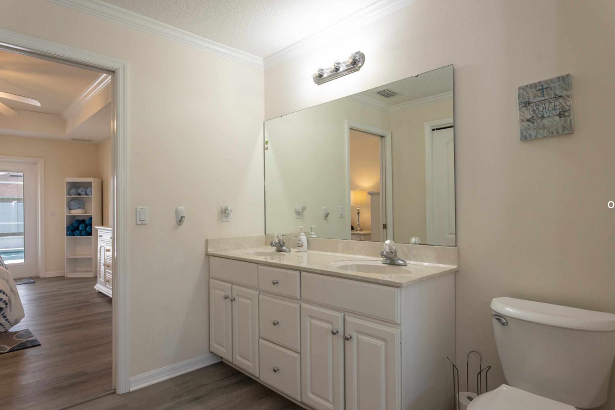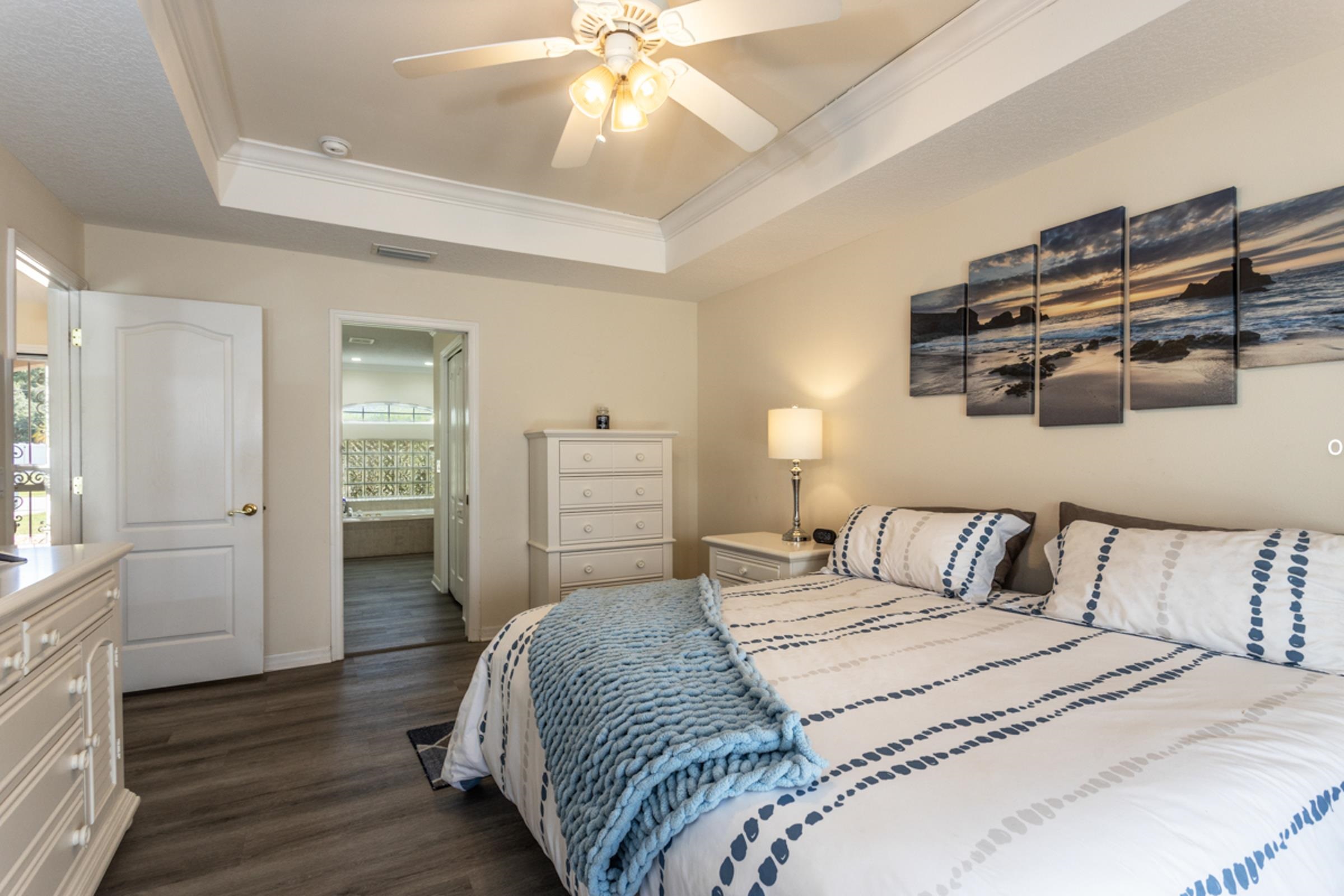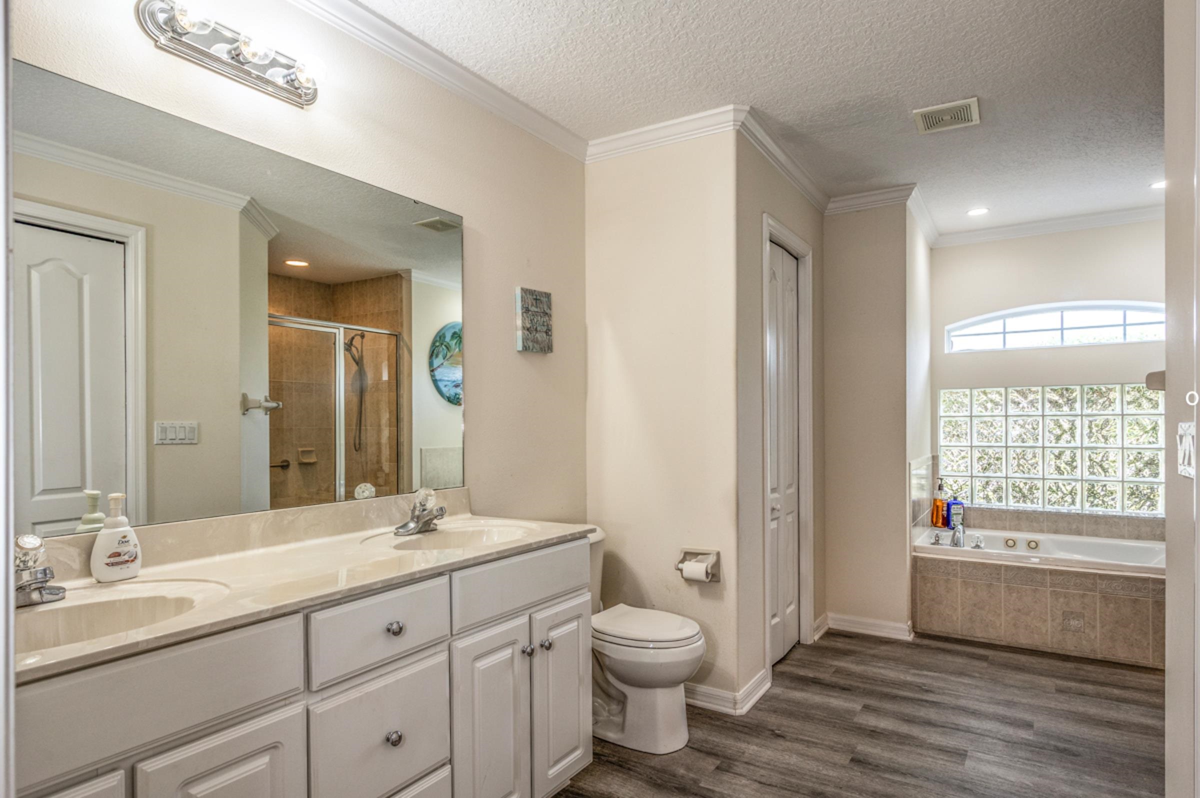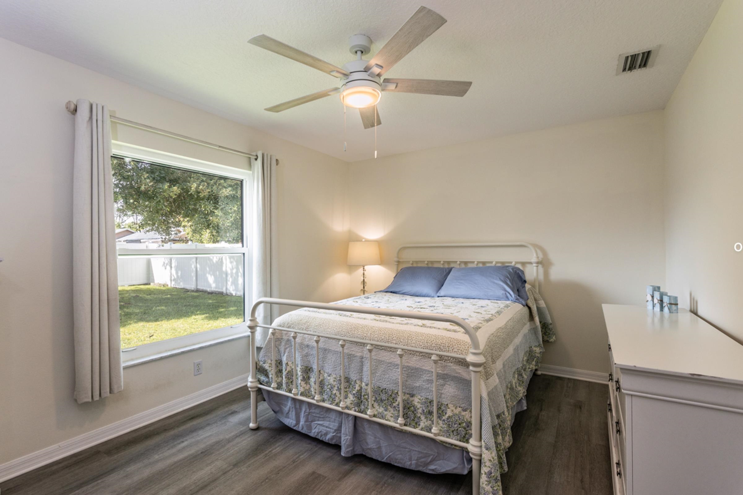 This special Indian Trails pool home is where your homeownership dreams come true! Ideally located at the very first exist south of St. Augustine from I-95, you’ll enjoy easy access to shopping, schools, and all the area has to offer. Step inside and you’ll find a thoughtful, clean and polished split floor plan with elegant details throughout. The spacious master suite features tray ceilings, crown molding, a luxurious garden bath, and blinds between the glass French doors that open directly to the pool. On the opposite side of the house, two guest bedrooms share a full bath, offering comfort and privacy for family or visitors. Enjoy seamless indoor-outdoor living with multiple access points to the fully screened pool and patio area, complete with a large deck and fully private, vinyl-fenced backyard. A perfectly sized oak tree adds just the right amount of shade, while two raised vegetable beds make it easy to garden at home. The living room features French doors, while the formal dining room (easily converted into a home office) also has direct pool access with its own set of sliding doors. The kitchen is well-appointed with crown molding, a breakfast bar, and a fully built-out pantry. Additional conveniences include 3 pocket doors to create flexible living spaces, indoor laundry with washer/dryer, and a 2-car garage with an upgraded door and utility sink. Updates: Roof (2022), Luxury Vinyl Plank Flooring throughout (2024), Low-Impact Windows (2023), Gutters (2022), Refrigerator & Disposal (2022), A/C (2017/2018). Pool: Solar panels (2023), new filter & chlorine dispenser (2023), inspection (2022), pump gate (2024) pool pump (2025), childproofing included. The pool is just the right size to manage without a service! Features in this house never end -- Smart camera front door entry, remote garage door control, garage door screen doors, new outdoor patio lighted fans, more! Move-in ready with comfort, privacy & the best Florida outdoor living offers!