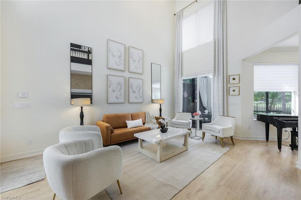 Today is your day! Come in see for yourself before it's gone! Private pool, pristine lake views, soaring 21’ and 10’ ceilings on the first floor and 9’ ceilings on the 2nd with 8’ doors and high-end finishes throughout. This home is furnished and move-in ready. Step inside and be greeted by an impressive kitchen upgrade, bathroom upgrades, upgraded flooring, along with updated fans, lighting and new paint throughout, adds a fresh and contemporary touch. This beautifully appointed 5-bedroom, 3-bath pool home is nestled in a highly desirable community, offering an ideal blend of luxury and comfort. Experience the magic of breathtaking western exposure lake views, where you can indulge in endless sunset views from the comfort of enclosed lanai or lounging by your private swimming pool. The home's large rear-facing windows and sliding doors flood the living spaces with natural light, creating a warm and inviting atmosphere. The expansive kitchen is a chef's delight, featuring multiple lazy Susans and elevated cabinetry, providing ample storage while maintaining style. Enjoy effortless entertaining with an open floor concept that seamlessly connects living areas. The convenience of a first-floor bedroom and full bathroom is perfect for guests or family. Retreat to the second floor, where a thoughtfully designed split bedroom layout ensures privacy and comfort for everyone. The community enhances your lifestyle with a resort-style pool and spa, a children's splash pad, a clubhouse, a fitness center, and tennis and basketball courts. Your low monthly HOA fee covers lawn and land maintenance including mulching, high-speed internet, basic cable, alarm monitoring, a 24-hour manned gate, and access to all recreational facilities. Centrally located, this stunning home offers easy access to shopping, hospitals, I-75, theaters, airports, universities, and spring training facilities for the Boston Red Sox and Minnesota Twins. Don't miss out on this true gem where you can find comfort, efficiency and beauty all in one home—schedule your viewing today and experience the best of Florida living! Come see this home in person or ask for a virtual tour exclusive for you.
