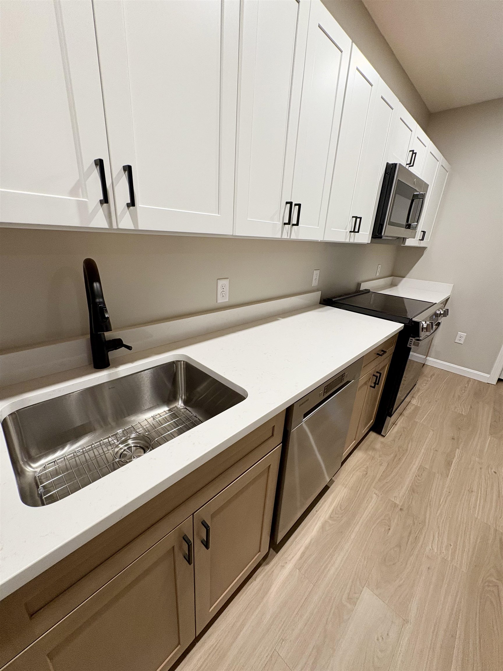 NEW 2-Bedroom rental with a private entrance coming to Goffstown! This convenient 2-Bedroom rental is in walking distance to Goffstown Village with its many shops, restaurants and yearly events. Available January 1st, this unit features brand new stainless steel appliances, modern two-tone shaker cabinets, quartz countertops, luxury vinyl plank flooring, modern finishes throughout, ample closet space, large bright windows and a centrally located mini split for heating and cooling. Two off-street parking spaces are provided. Included in the rent is water, sewer, trash removal, lawn care & maintenance, snow removal and common area cleaning. Washer & Dryer on-site. Pets OK- Dogs & cats are allowed with a restriction of 30lbs and one pet per unit. One year lease with security deposit and 1st month rent due at signing. Background & Credit check required with application through RentSpree.