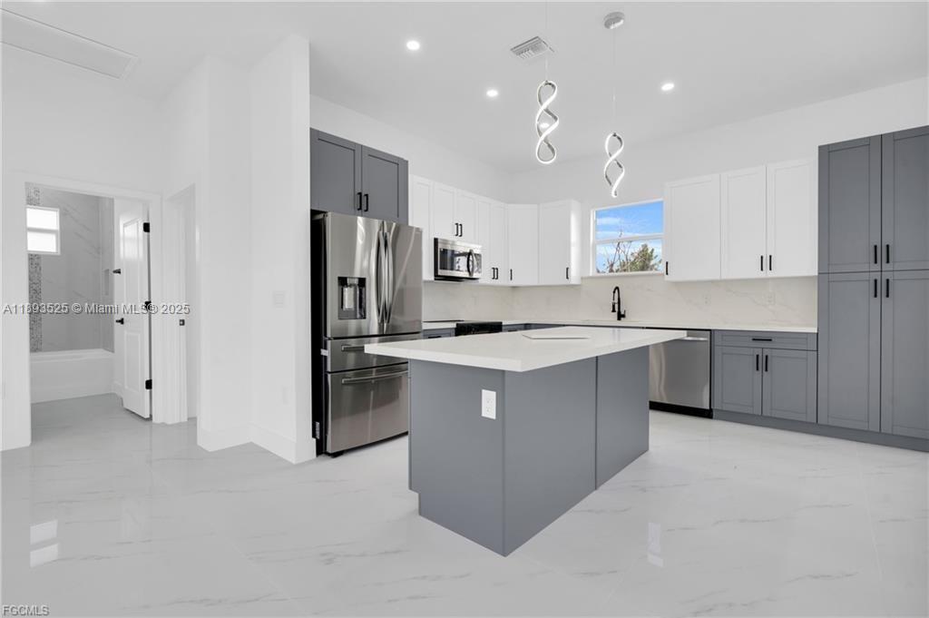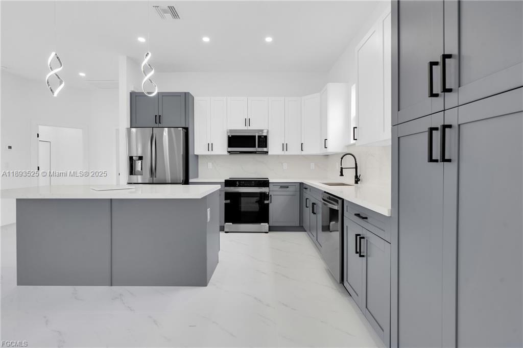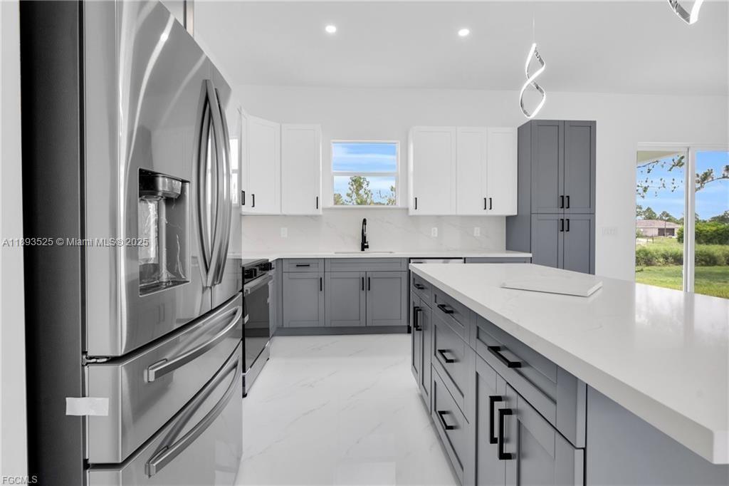 Seller's contribution of $10, 000 toward buyer's closing costs. Welcome to your new home in Lehigh Acres! This beautifully New Construction Home offers 3 spacious bedrooms plus an Office, 2 full bathrooms, and a 2-car garage. Step inside to an open-concept layout featuring elegant porcelain tile flooring throughout. The modern kitchen is complete with a large island, wood cabinetry, quartz countertops, and a full package of Samsung stainless steel appliances. Built with impact-resistant windows and doors, this home offers added peace of mind and energy efficiency. Enjoy outdoor living with both an open front porch and lanai, plus a generously sized backyard. Conveniently located near major roads, shopping, and schools. Schedule your showing today!