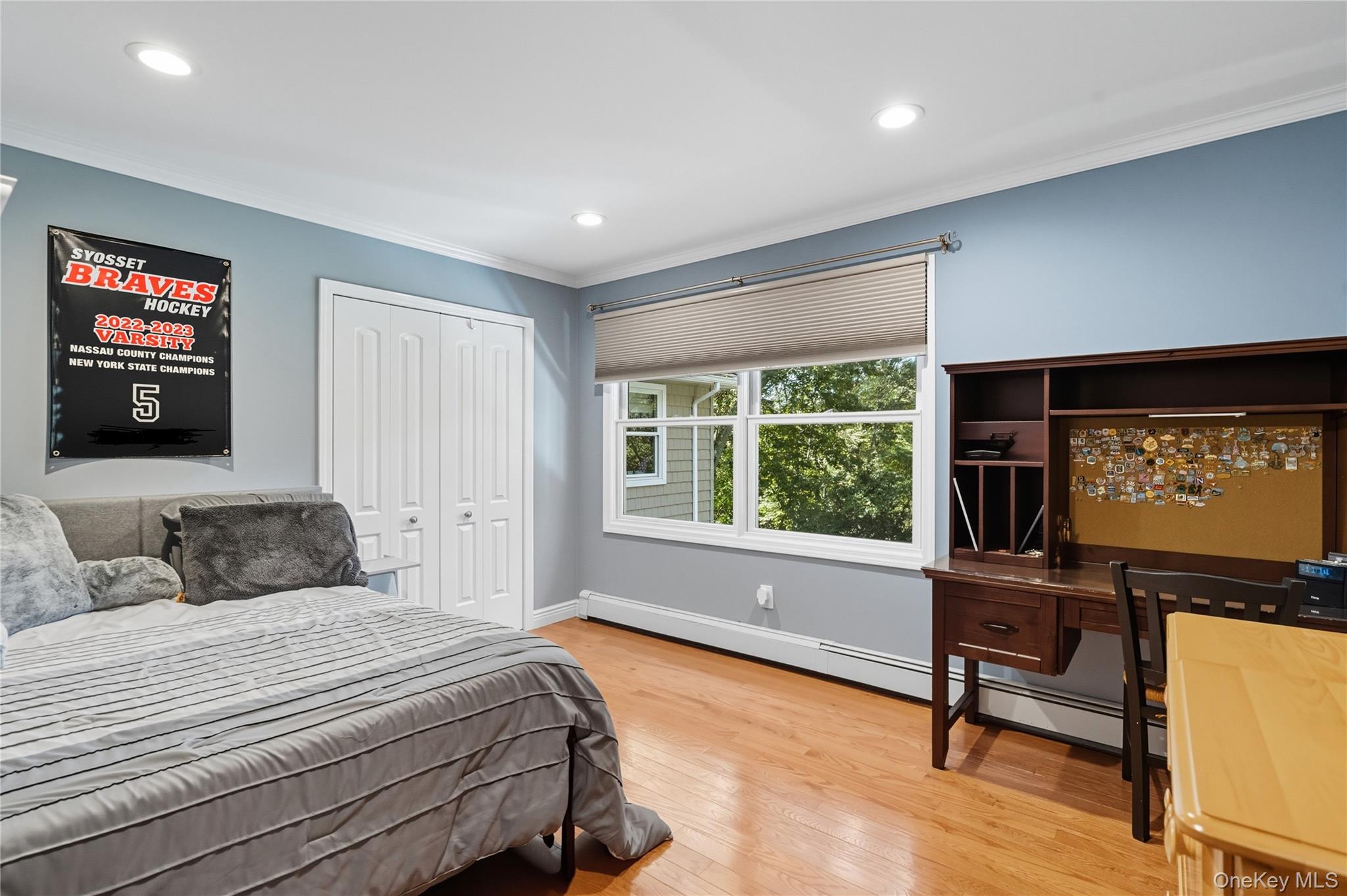 Welcome! This 5 bedroom 4. 5 bath beautifully crafted Colonial is tucked away on a peaceful 1. 09 acre setting in one of Syosset’s most sought after neighborhoods. This home blends warmth, comfort, and quality craftsmanship throughout nearly 3, 800 square feet of living space. The layout is designed for everyday living and effortless entertaining. The living room boasts a tray ceiling, antique knotty pine floor that adds to the character and charm, as well as French doors which open to the bluestone rear deck, inviting natural light and easy indoor-outdoor flow. The heart of the home is the spacious kitchen showcasing dovetailed custom cabinetry, a large center island, professional high end appliances, and thoughtful design that makes cooking and gathering a pleasure. The oversized den with wood burning fireplace and custom built bookshelves offers a cozy retreat, while the formal dining area accommodates large gatherings with ease. There is also a 1st floor bedroom and1 full bath and a powder room on the main floor. Upstairs the primary en-suite is complete with a Juliet balcony overlooking the tranquil backyard. 3 large additional bedrooms and a convenient laundry room complete the second floor. Outside mature trees, lush lawn and a quiet yard create a sense of privacy and calm. Enjoy evenings on the deck or unwind in the hot tub. 16 Pine offers a perfect blend of warmth, quality, and tranquility- a place where every detail has been considered!