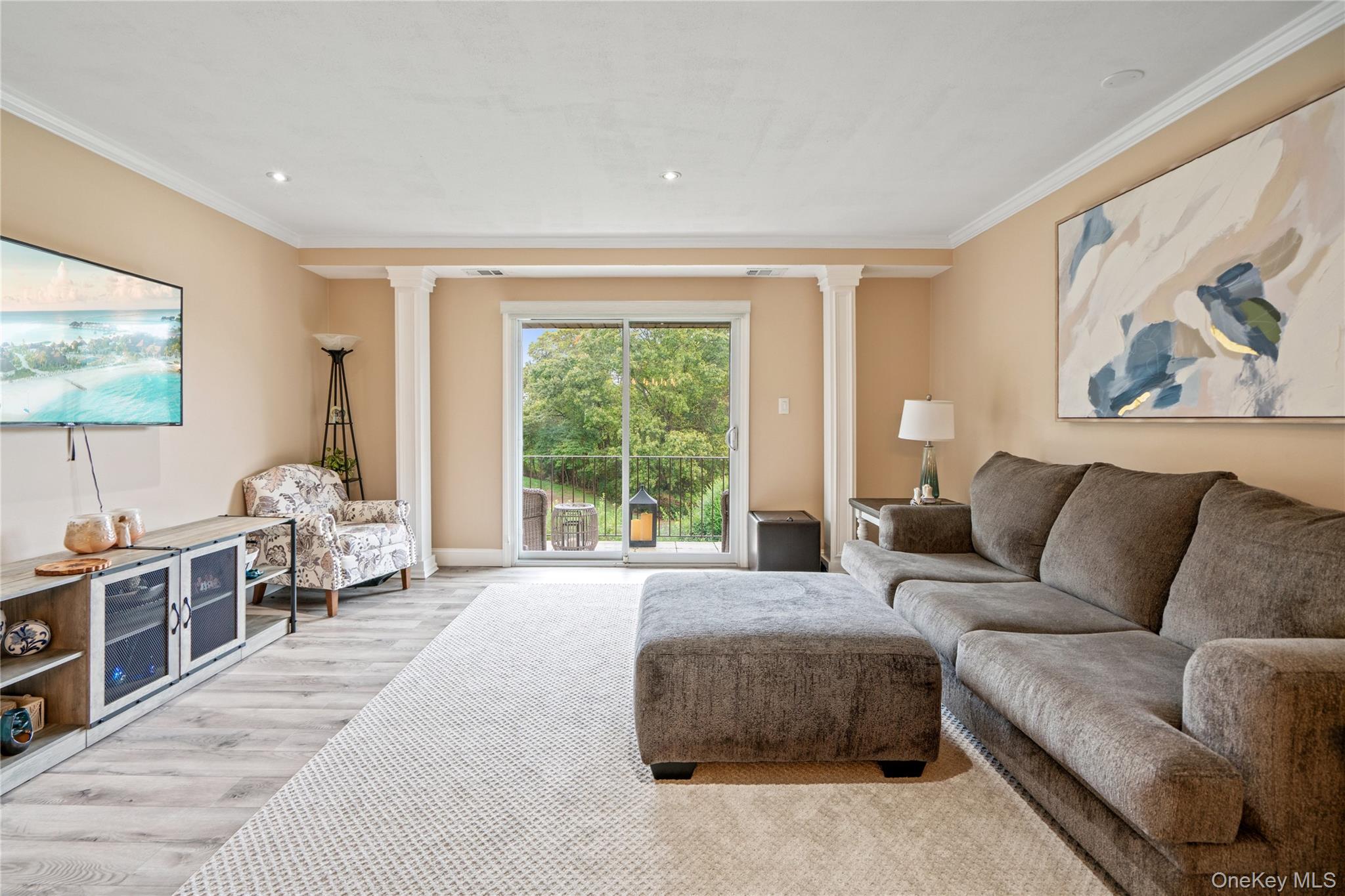 Beautifully Updated Upper-Level Co-op in Village in the Woods Welcome to this beautifully updated upper-level co-op located in the desirable Village in the Woods community. This spacious 2-bedroom, 1-bath home offers an abundance of closet space and thoughtful upgrades throughout. Step into a generous living room that flows seamlessly into a formal dining area—perfect for entertaining. The eat-in kitchen features elegant granite countertops, newer black stainless steel appliances, and ample cabinetry. Enjoy brand-new vinyl and carpeted flooring, a stunning private balcony, and tasteful finishes including crown molding, custom stonework, and charming architectural columns that add character and warmth. This well-maintained complex offers fantastic amenities just a short stroll away—including a pool, clubhouse, tennis courts, and basketball courts. Monthly maintenance includes property taxes, heat, landscaping, snow and garbage removal, and all common area costs, making for a truly hassle-free lifestyle. Don’t miss your chance to own this one-of-a-kind co-op that blends style, convenience, and comfort effortless living in a welcoming community setting.