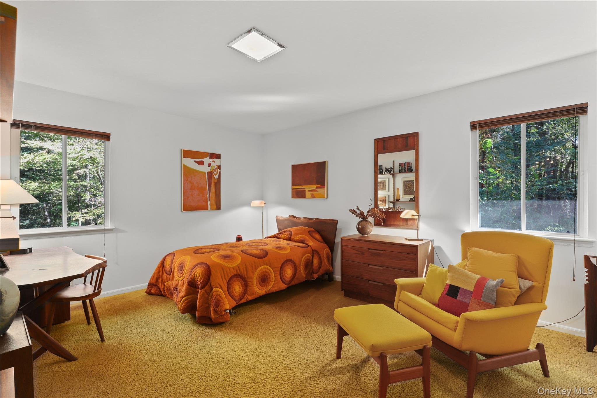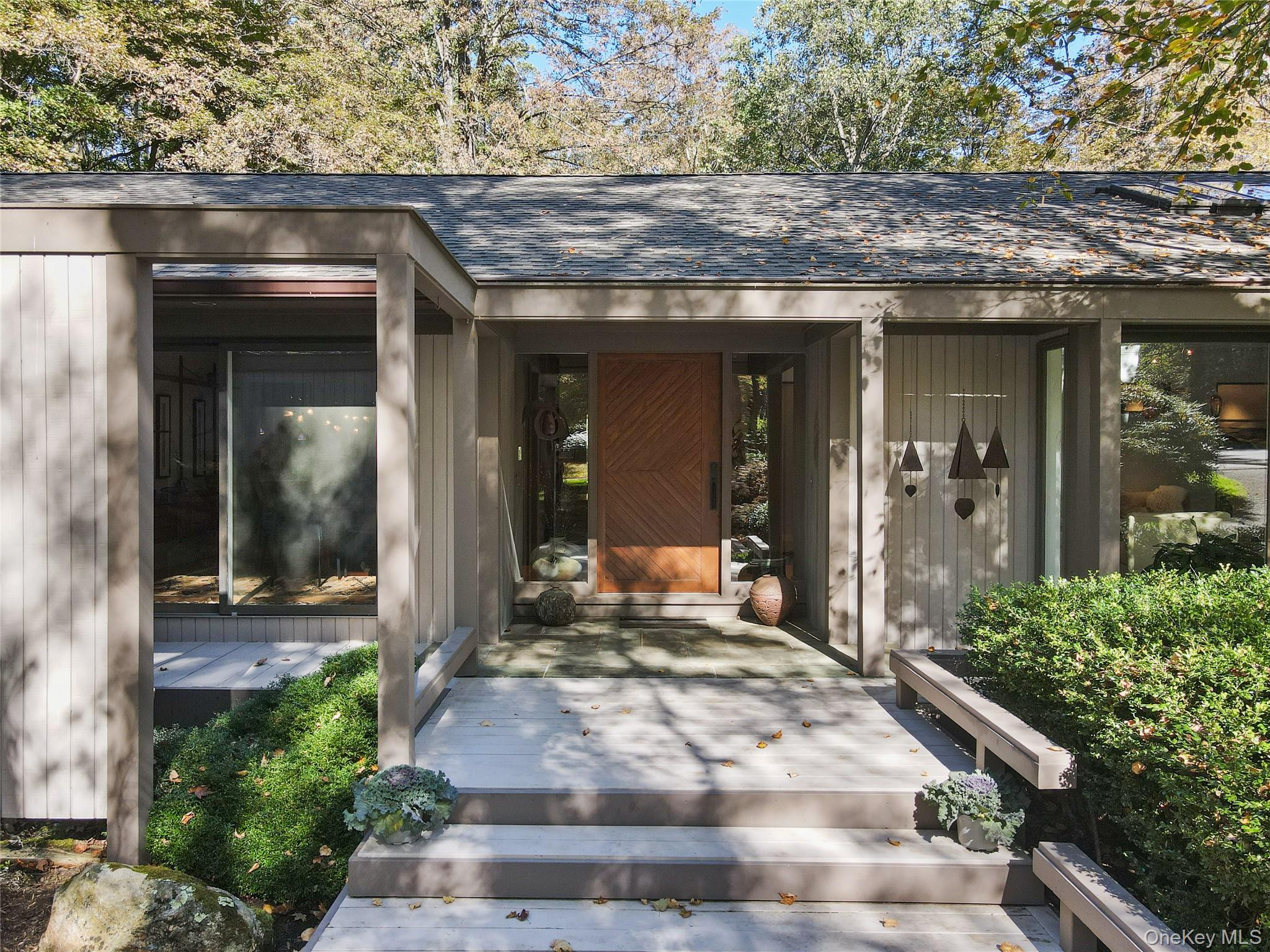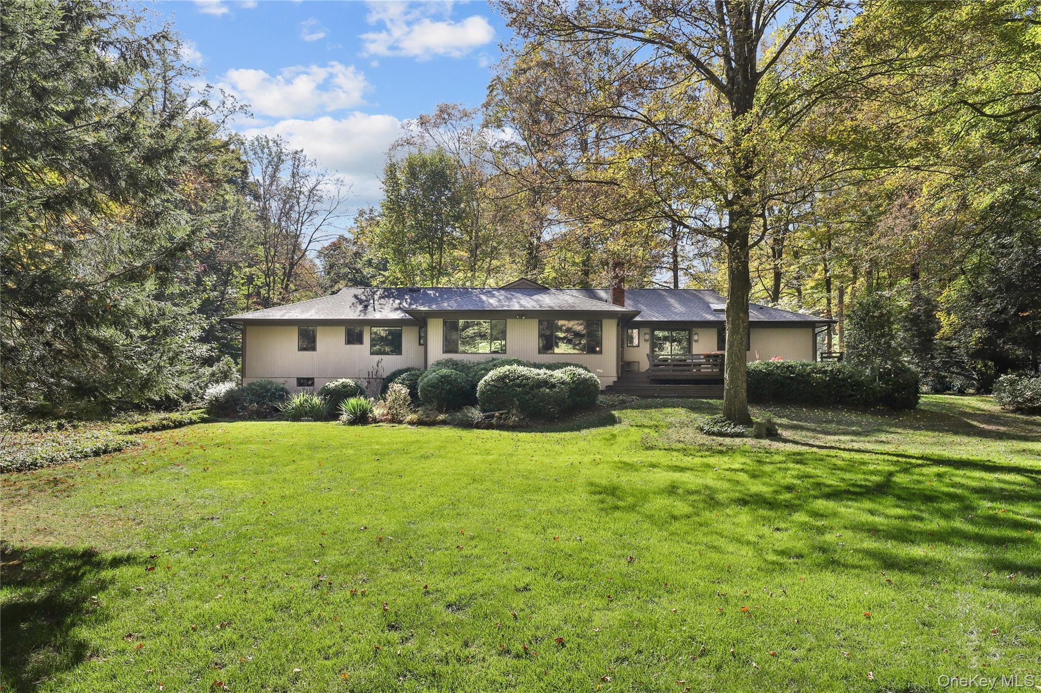 First time on market! This meticulously maintained 4-bedroom Mid-Century Modern Ranch sits at the end of a quiet cul-de-sac in a highly sought-after neighborhood within the award-winning Byram Hills School District. Exceptional design, abundant natural light and seamless indoor-outdoor flow define this special home. The functional open layout is ideal for both everyday living and effortless entertaining, with expansive windows and numerous skylights elegantly merging the home’s interior with nature’s beauty. A unique covered front entry and two-tier deck enhance the home’s architectural appeal and reinforce the home’s connection to nature. A flat and private backyard framed by mature trees is ideal for play, relaxation, and gatherings. An updated kitchen and primary bath; custom lighting, built-ins and shelving; plus an impressive courtyard-style driveway further add to this home’s modern appeal. The fully finished walk-out lower level offers versatile living space plus significant storage. New roof and gutters (2023). Low taxes. Conveniently located near Byram Hills schools, downtown Armonk's gourmet dining and boutique shops, North White Plains Metro-North station and less than 45 minutes to Manhattan via car—don’t miss this one-of-a-kind gem!
