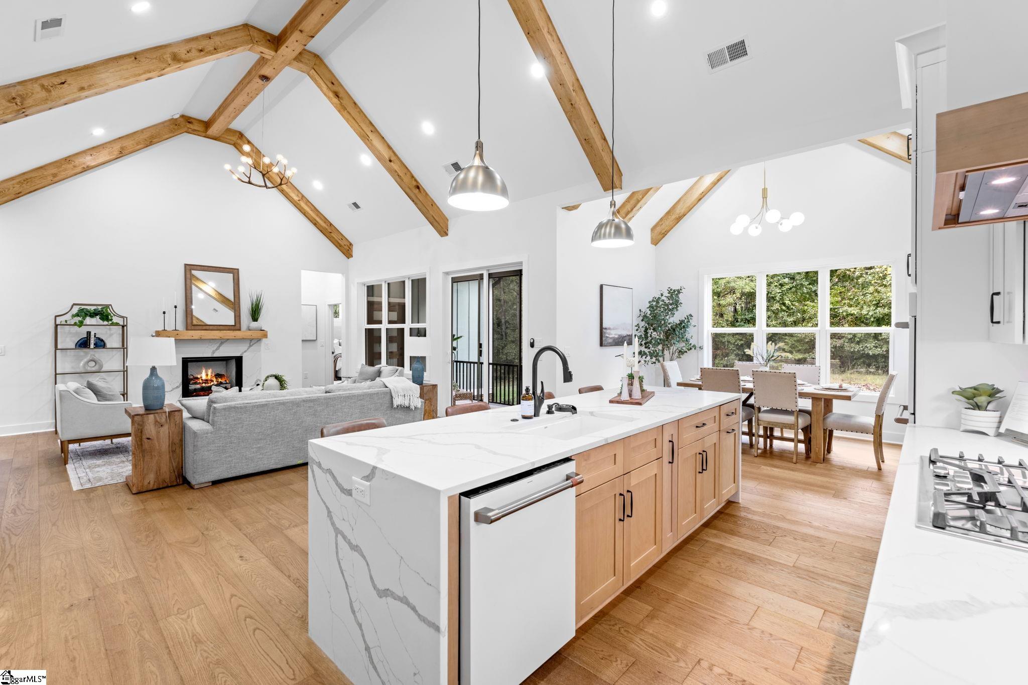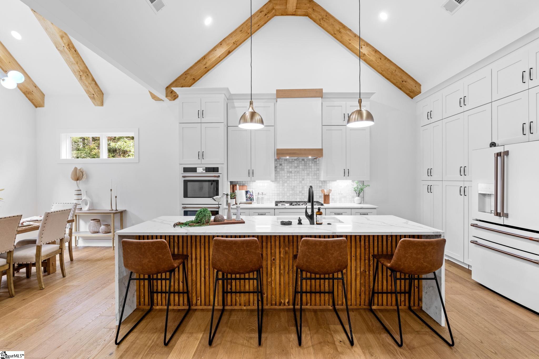 Welcome to 507 Lariat Loop, one of the most exquisite custom homes in the Upstate that features 4 bedrooms, one located upstairs and 3 full Bathrooms, and the refined architecture, luxurious finishes, and natural beauty come together in perfect harmony. Nestled on a 2-acre lot surrounded by mature trees in the exclusive Blue Mountain Estates, this brand-new home is a rare blend of craftsmanship, sophistication, and serenity. Every detail of this home was designed with purpose, from its elegant color palette and soaring ceilings to the seamless connection between indoor comfort and outdoor tranquility. The open-concept layout showcases stunning vaulted ceilings, exposed beams, and expansive windows that flood each space with natural light. Engineered hardwood floors flow throughout, creating a warm and cohesive aesthetic that feels both modern and timeless. At the heart of the home is a chef’s kitchen that features both beauty and function. Outfitted with Cafe appliances with a luxury gas cooktop, double oven, and a refrigerator, a hidden walk-in pantry with custom shelving, and a built-in wine display and wine cooler it’s a space designed for those who love to cook, entertain, and gather. The large central island offers generous workspace and seating, while an underground propane system efficiently powers the cooktop, fireplace, and on-demand water heater. The primary suite is a retreat of its own—highlighted by a vaulted wood ceiling, oversized windows, and a spa-worthy ensuite bath with dual quartz vanities, a freestanding soaking tub, a glass-enclosed walk-in shower, and artisan tilework. The custom walk-in closet offers ample built-ins designed for elegant organization. The main level also includes two additional bedrooms and a full bath, perfect for family or guests. Upstairs, the spacious guest suite features its own private full bath with a walk-in shower, creating an ideal space for visitors or extended stays—truly more than just a flex room. Every inch of this home balances style and practicality: A custom laundry room with a pet/toddler wash station adds everyday convenience. The oversized two-car garage features a 10-foot door and side-mounted opener, offering ample room for large vehicles with an insulated garage door. The tall crawl space provides generous extra storage. An automatic generator transfer switch ensures power continuity when needed (generator not included). Step outside to the screened-in back porch and enjoy peaceful views of your private wooded retreat. The septic system’s ideal placement allows complete flexibility to add a pool, outdoor kitchen, or additional entertainment space, so the possibilities are endless. This expansive property also offers plenty of room to build a detached garage, permitted by the community’s flexible guidelines. As part of the Blue Mountain Estates community, residents enjoy scenic walking trails, underground utilities, and boat storage, making it the perfect haven for Lake Keowee enthusiasts. Located just minutes from Lake Keowee Marina, downtown Seneca, and Clemson University, this home provides effortless access to shopping, dining, recreation, and healthcare—while still maintaining the peace and privacy of country living. With approximately 2, 700 square feet, four bedrooms, and three full baths, this home is built with high-quality materials and comes with the option for a builder’s warranty, offering peace of mind and long-term value. 507 Lariat Loop is not just a home, it’s a statement of elegance, comfort, and craftsmanship. From its designer finishes to its thoughtfully curated floor plan, it stands among the finest new homes in the Upstate, ready to welcome its first owner. Experience the art of living beautifully! Schedule your private showing of 507 Lariat Loop today.