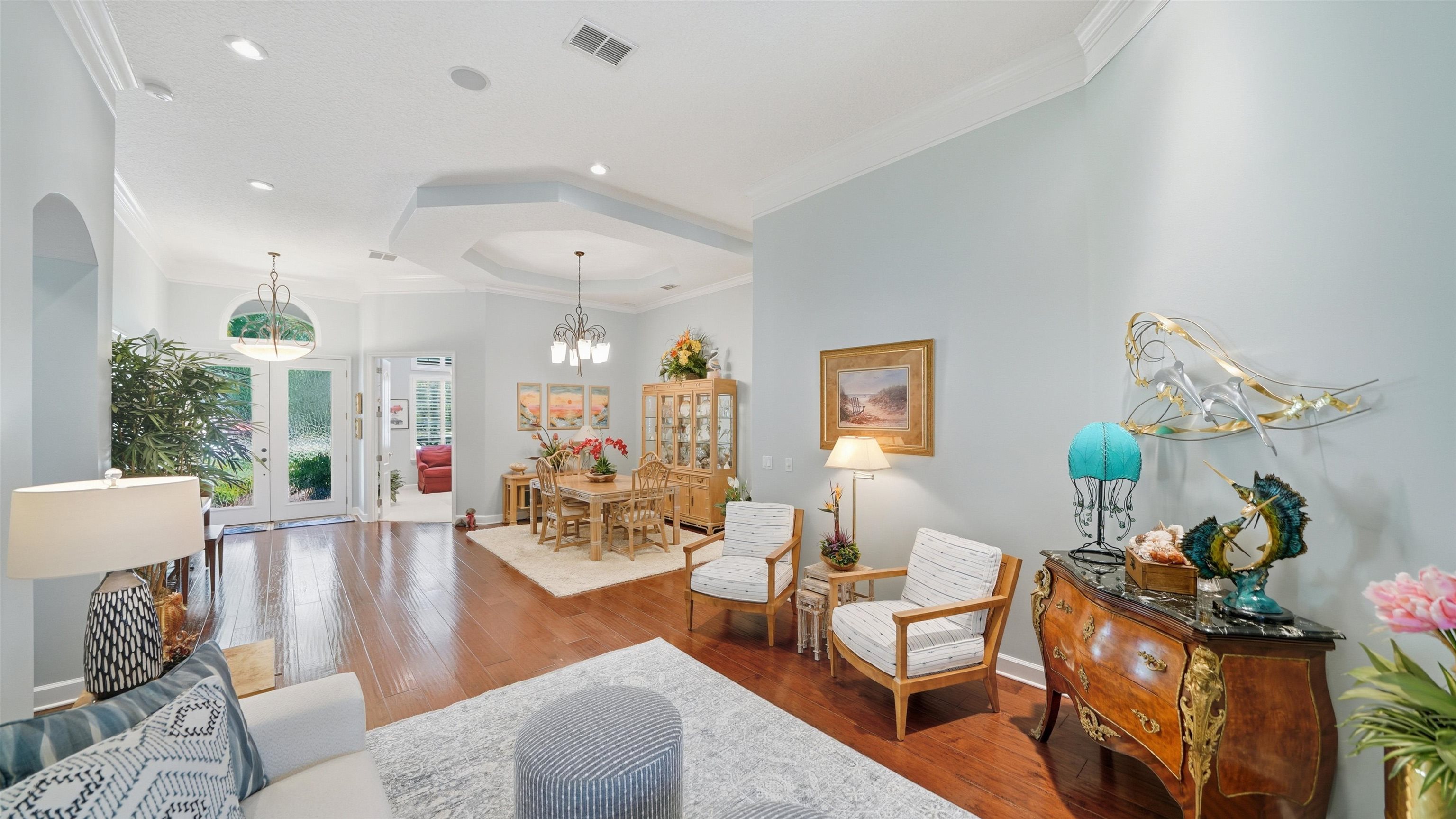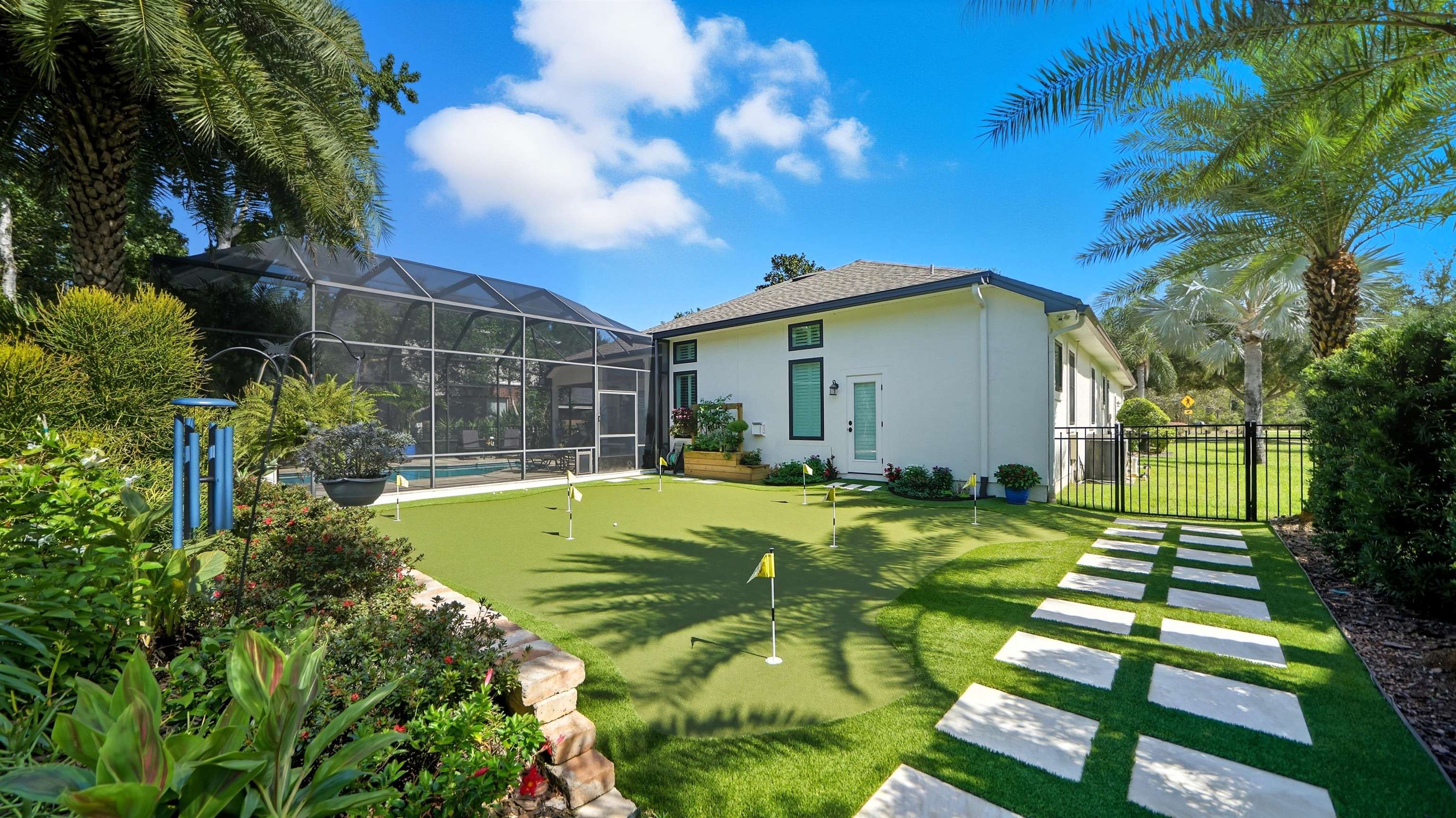 Welcome home to this meticulously maintained 5-bed, 3-bath pool home on one of Palencia’s most sought-after streets—Sophia Terrace. Curb appeal pops with lush, mature landscaping and a sealed paver driveway. Major updates include new windows (2022) with plantation shutter window treatments throughout, and a new roof with gutters (2018). Inside, hardwood floors, 12-ft ceilings, and crown molding set an elegant tone. The 2024 primary bath remodel is a showstopper with a large walk-in shower, freestanding tub, and spacious closet. The refreshed kitchen features quartz countertops, updated cabinetry, and a natural gas range. A true 3-car garage impresses with a pristine shark-coated floor and a mini-split to keep the space air-conditioned. Step into the fully fenced backyard to find pristine travertine decking leading to a custom heated pool, wrapped in lush landscaping for exceptional privacy. A brand-new turf putting green with marble-inlay steps elevates the outdoor fun, and there’s still ample lawn for pets to roam. Quiet evenings here are especially serene. From top to bottom, this home has been lovingly maintained and is move-in ready. Located in the gated community of Palencia, residents enjoy world-class amenities including an Arthur Hills–designed championship golf course, tennis courts, fitness center, resort-style pools, and scenic walking trails. Conveniently positioned between St. Augustine and Jacksonville, you’re just minutes from top-rated schools, the beach, and everyday conveniences—Costco and the new shopping corridor are nearby, and Publix is just a short golf cart ride away. This home offers both luxury and location—schedule your showing today! All information pertaining to the property is deemed reliable, but not guaranteed. Information to be verified by the Buyer. Be advised that cameras may exist recording audio and video inside/outside the property, such as ring doorbells. Photos are digitally enhanced and could be altered, please verify.