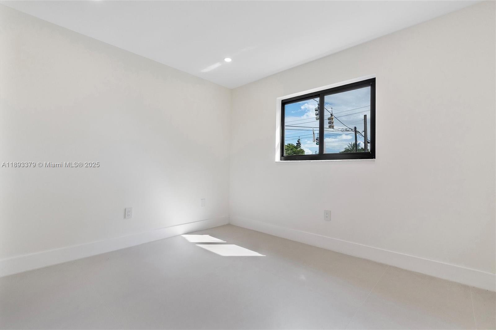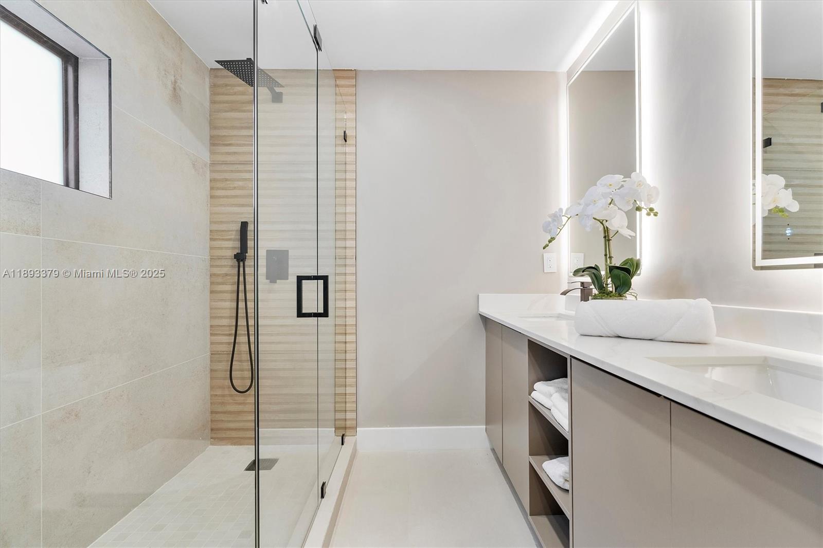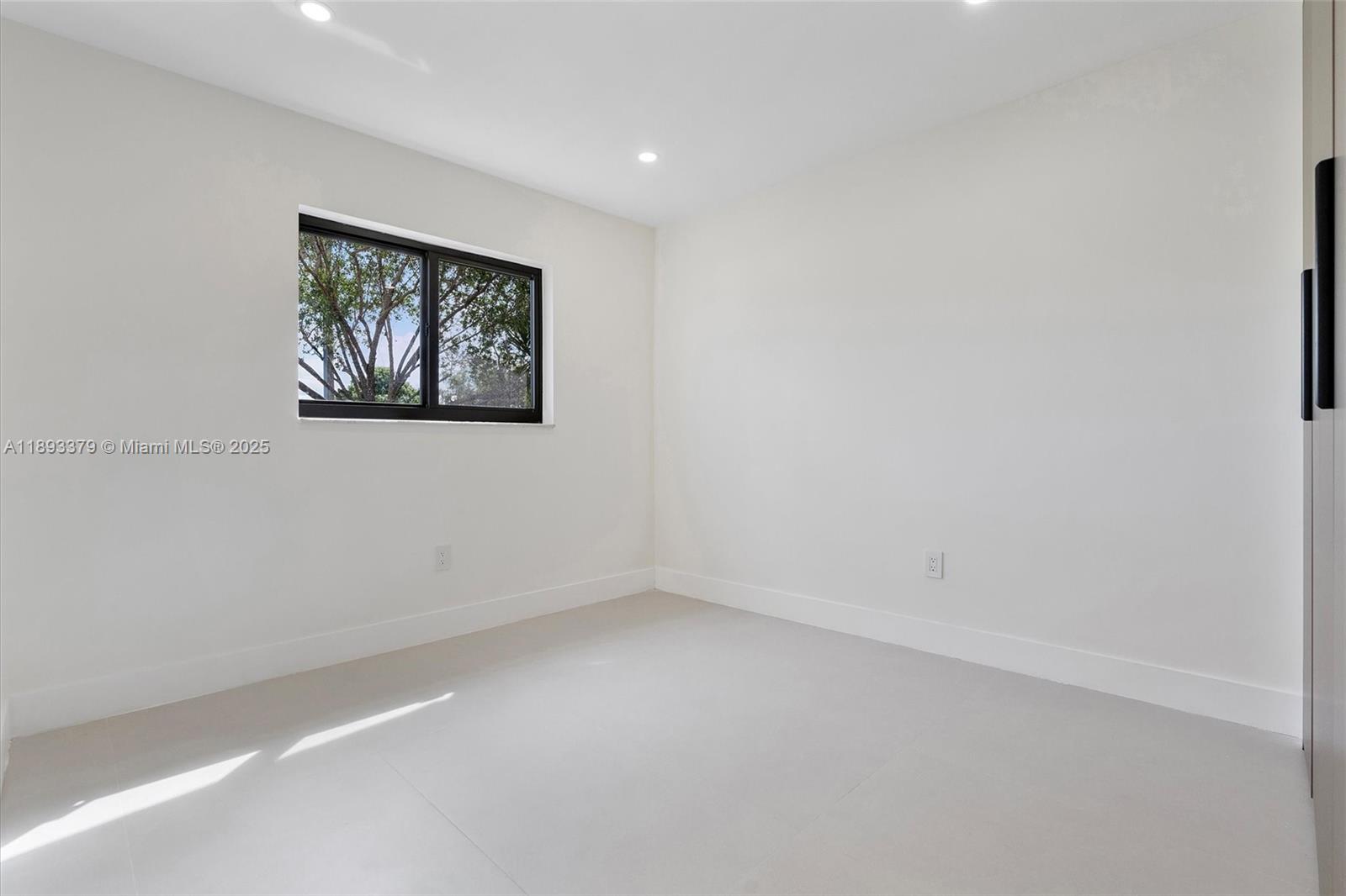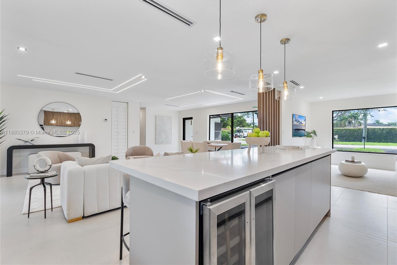 A vision of modern sophistication and effortless Miami living. This 2025 rebuilt turn-key designer home welcomes you with a bright, open-concept layout filled with natural light. New Features include porcelain floors, Calacatta quartz countertops, Italian-style kitchen cabinets with premium appliances and wine fridge, new pavement driveway, new impact doors and windows, and designer lighting. The primary suite offers double sinks and custom floor-to-ceiling closets. Paneled door for the half bath, den or family/TV room, and a spacious green yard with pergola with room for a pool complete the layout. The property sits on a dead-end street. Nearby linear Park/trail in projects. Excellent location, minutes from Coral Gables and major highways. A true modern sanctuary.